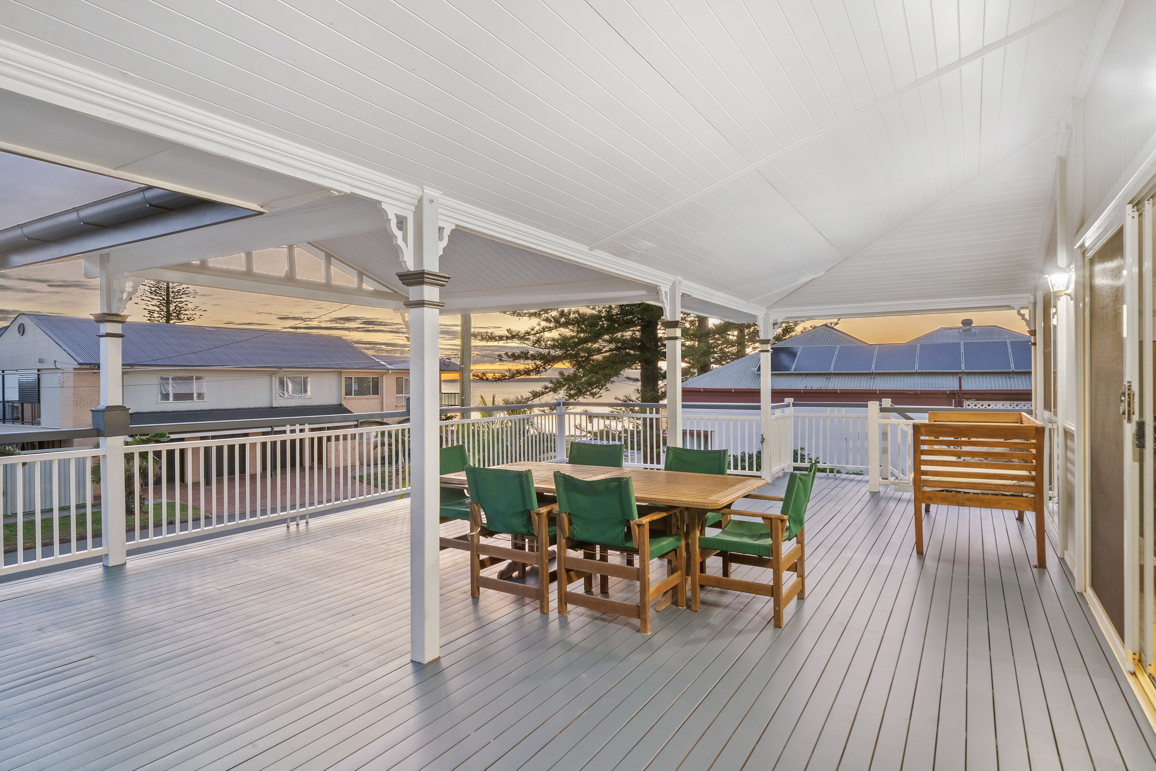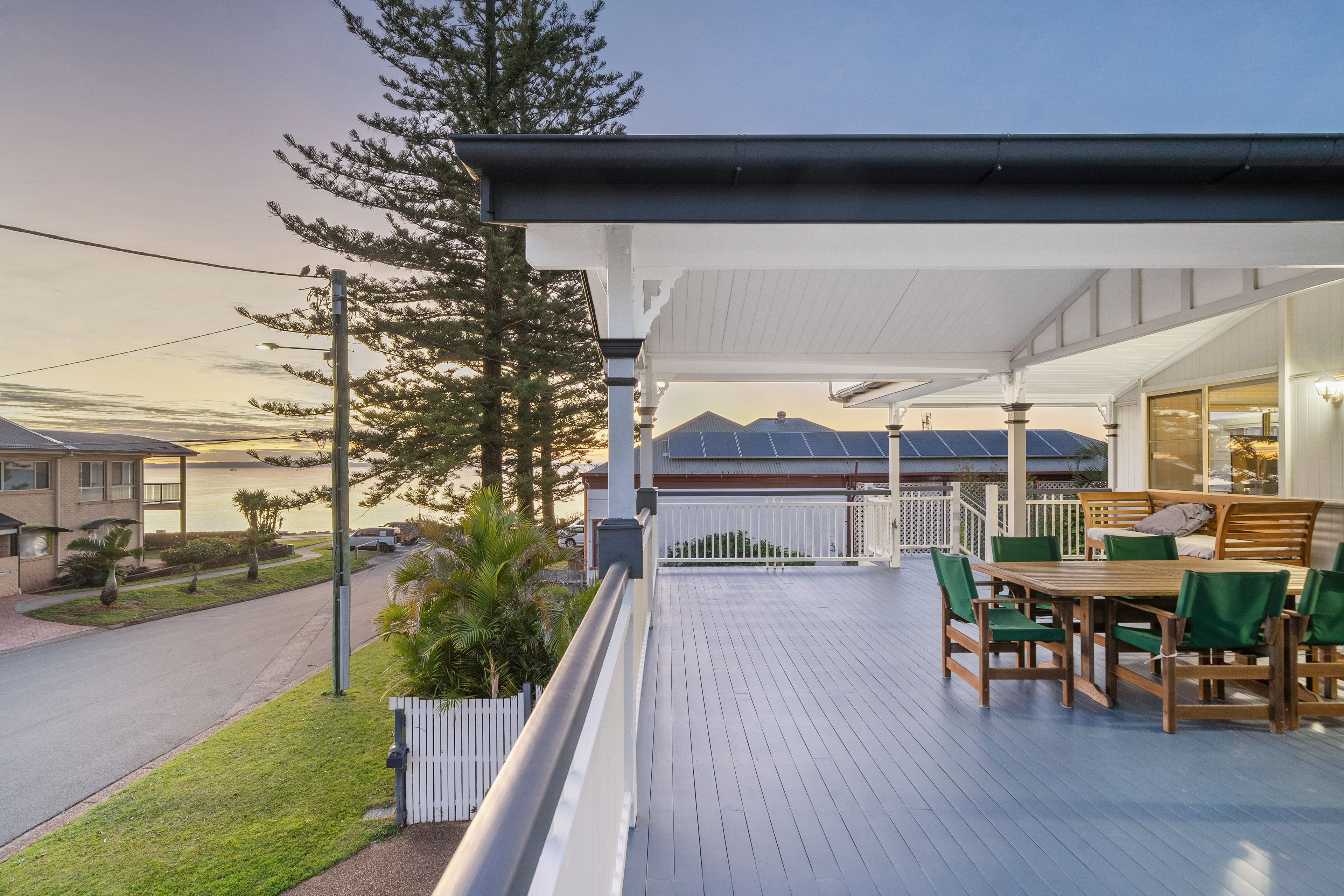 Property Features: - Stunning two-story Queenslander-style home, meters from Queens Beach - Generous north-facing deck with water views - Spacious main bedroom with ensuite and split-system air conditioning - Open-plan kitchen, living, and dining area with fireplace - Three full bathrooms - Four bedrooms downstairs, offering great comfort and privacy - Zoned for Next Generation Neighbourhood with a maximum building height of 12m - Double car garage and additional carport with room for a caravan, boat, or trailer - Fully fenced yard for children and pets