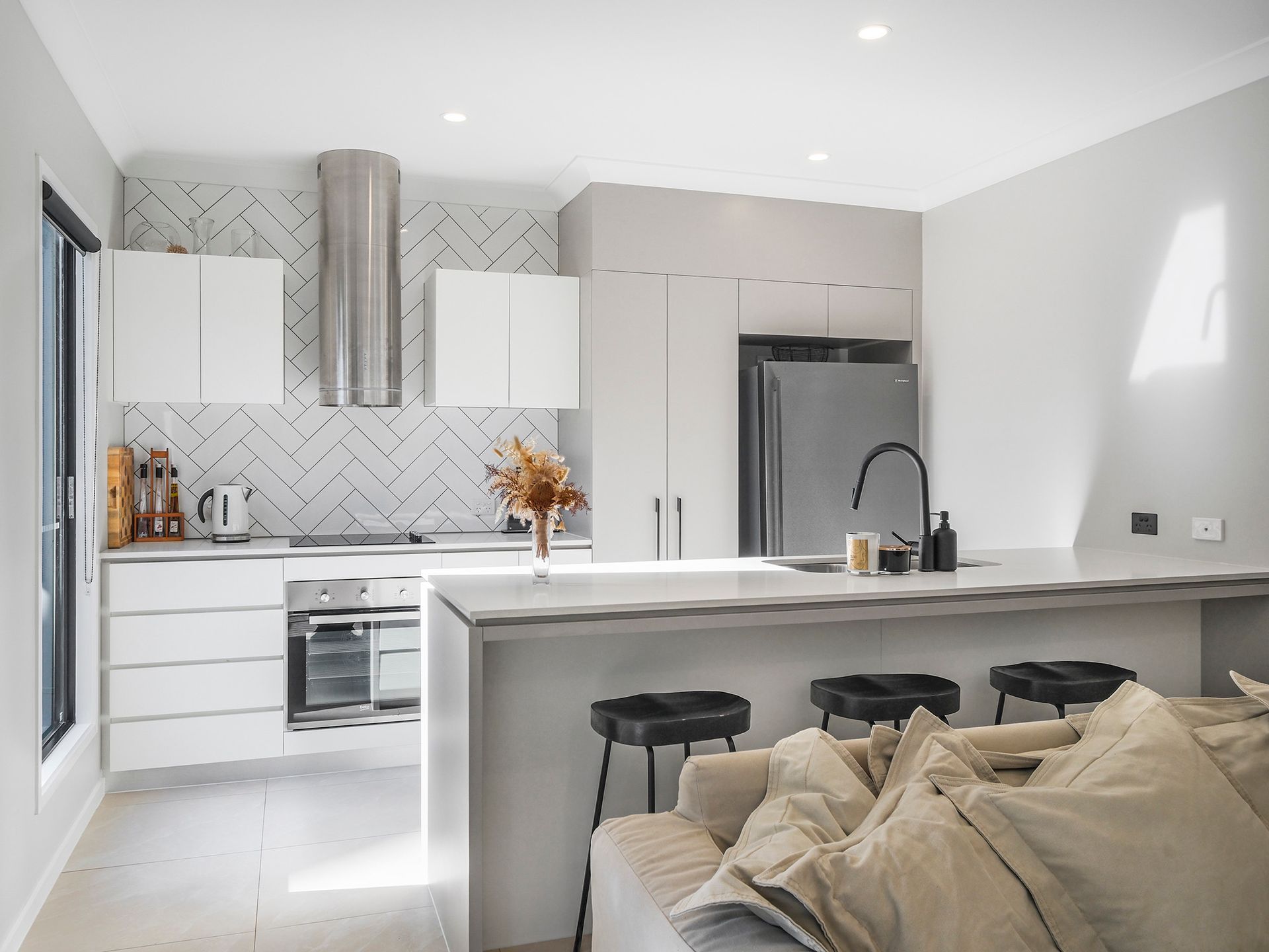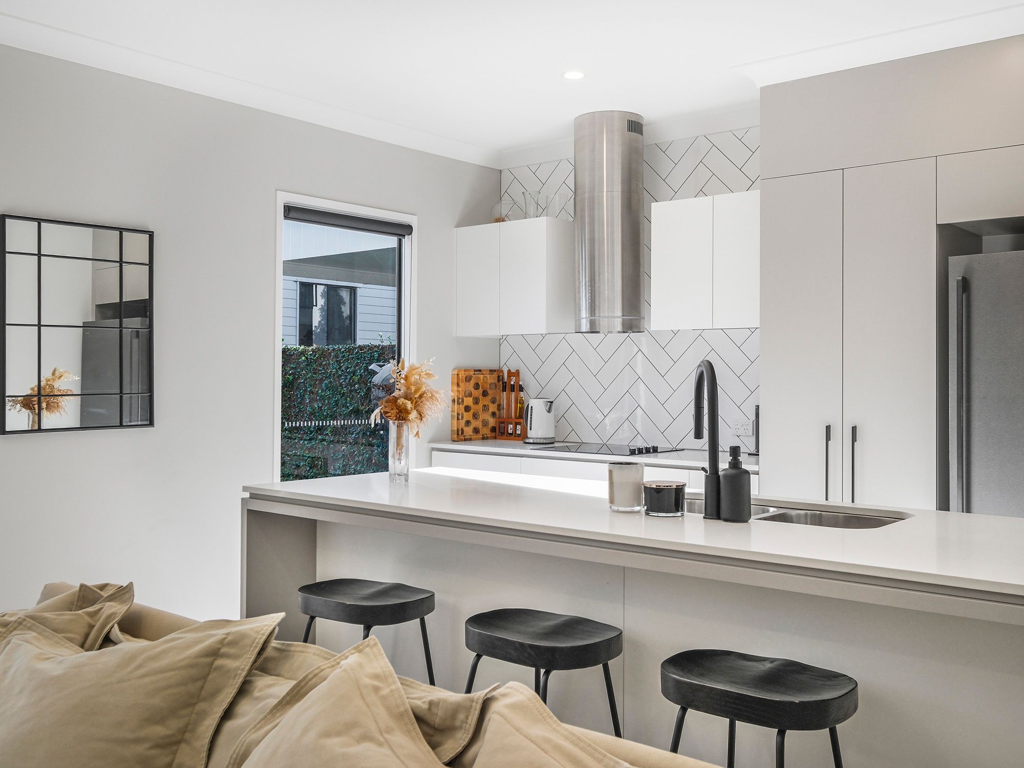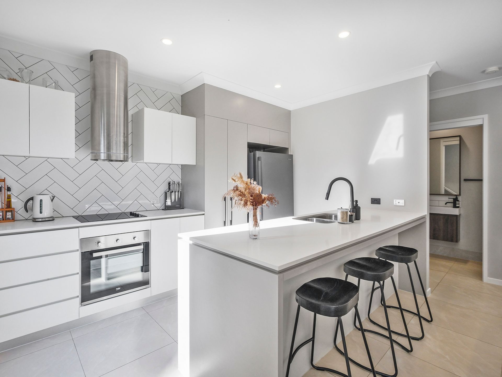 • Stone benchtops with breakfast bar • Stainless-steel appliances • Tiled splashback • Ample cabinetry and storage