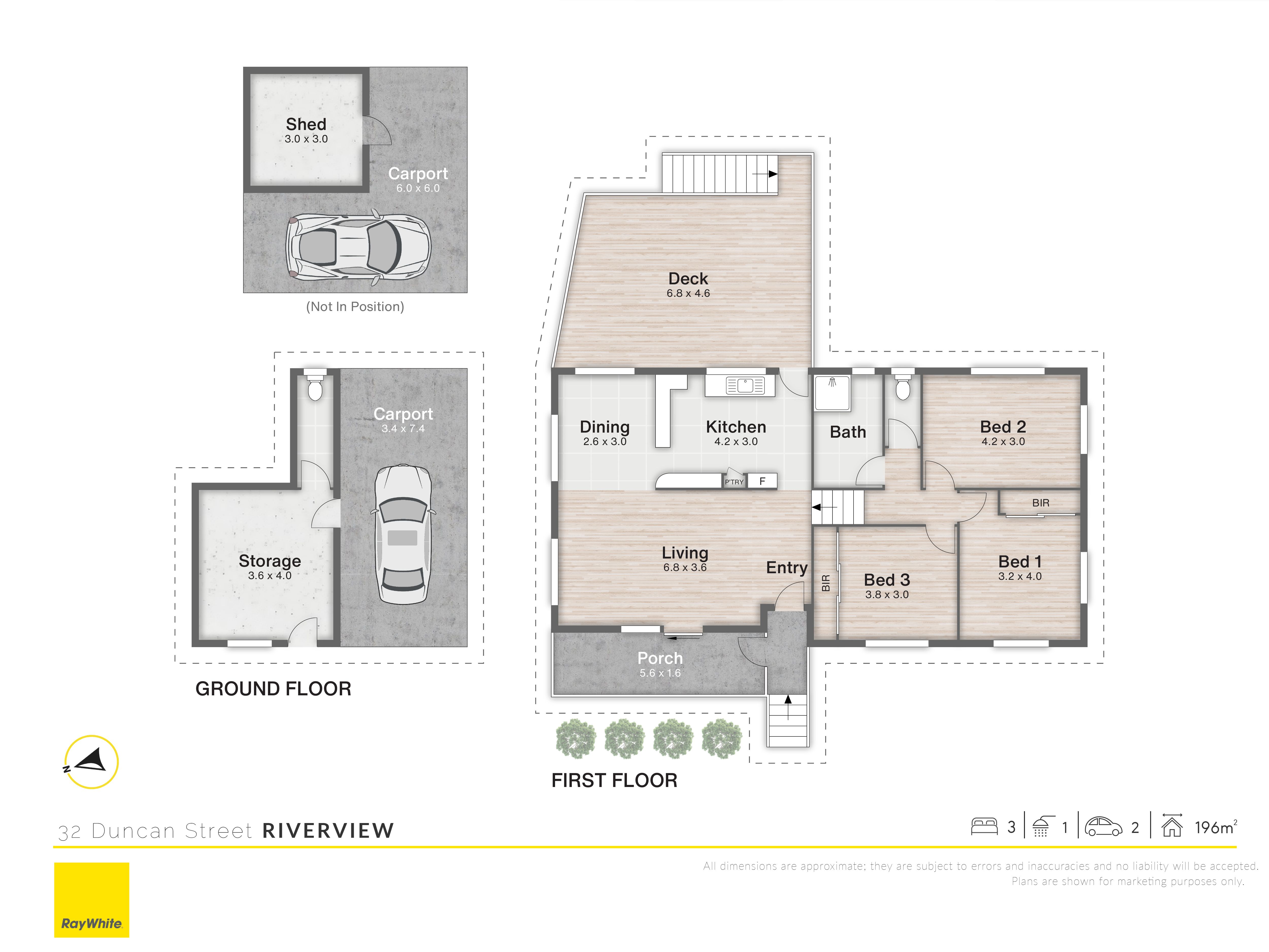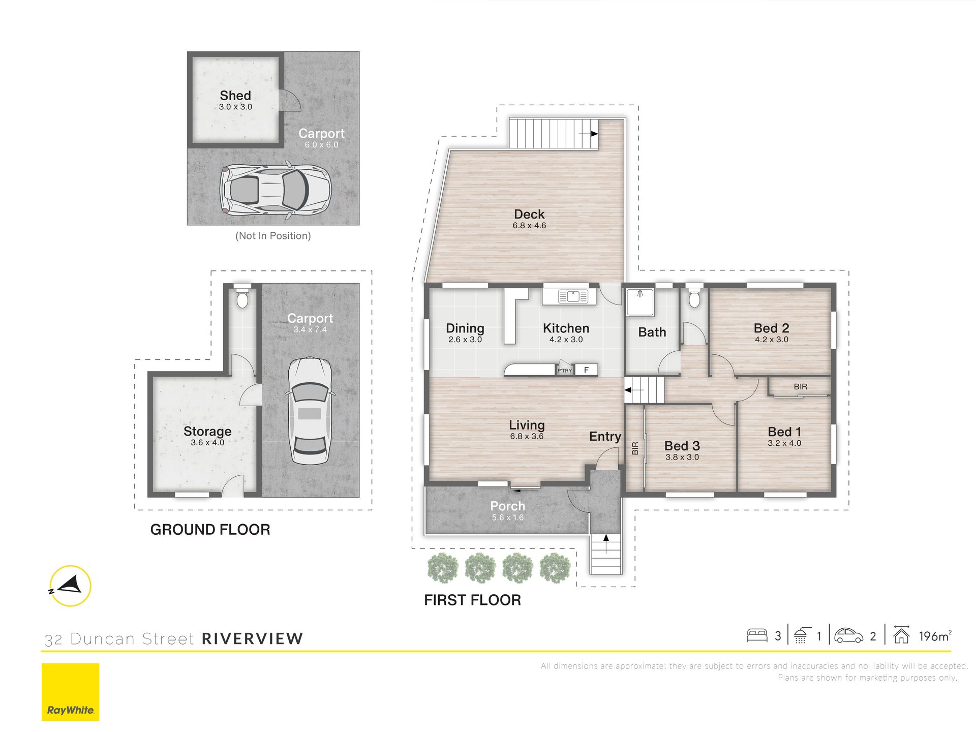 • 3 bedrooms, 1 bathroom, 2 car spaces.