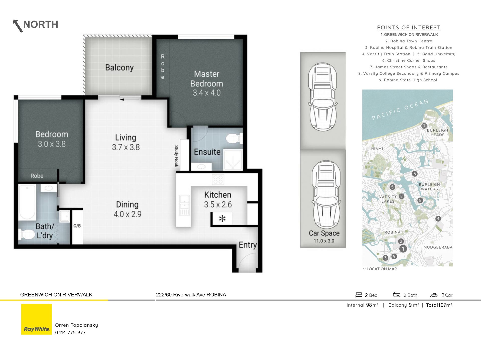Offering one of the best positions in Robina, this apartment provides easy walking access to the world class Robina Town Centre, complete with restaurants, cinemas, doctors, pharmacies, gym, world class stores, post office and banks. Other local facilities includes a Hospital, rail (direct to Brisbane airport), busses, private schools and universities.