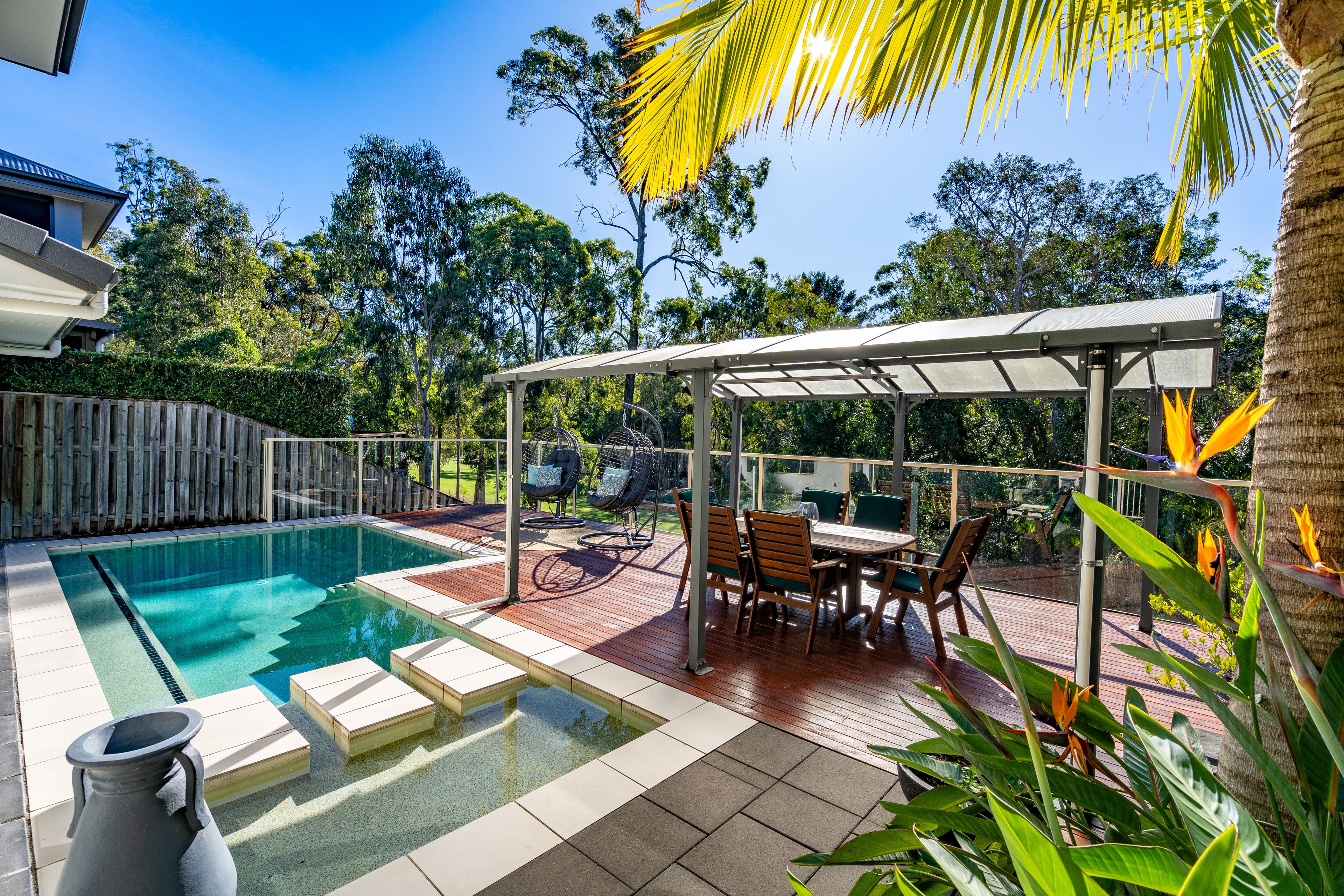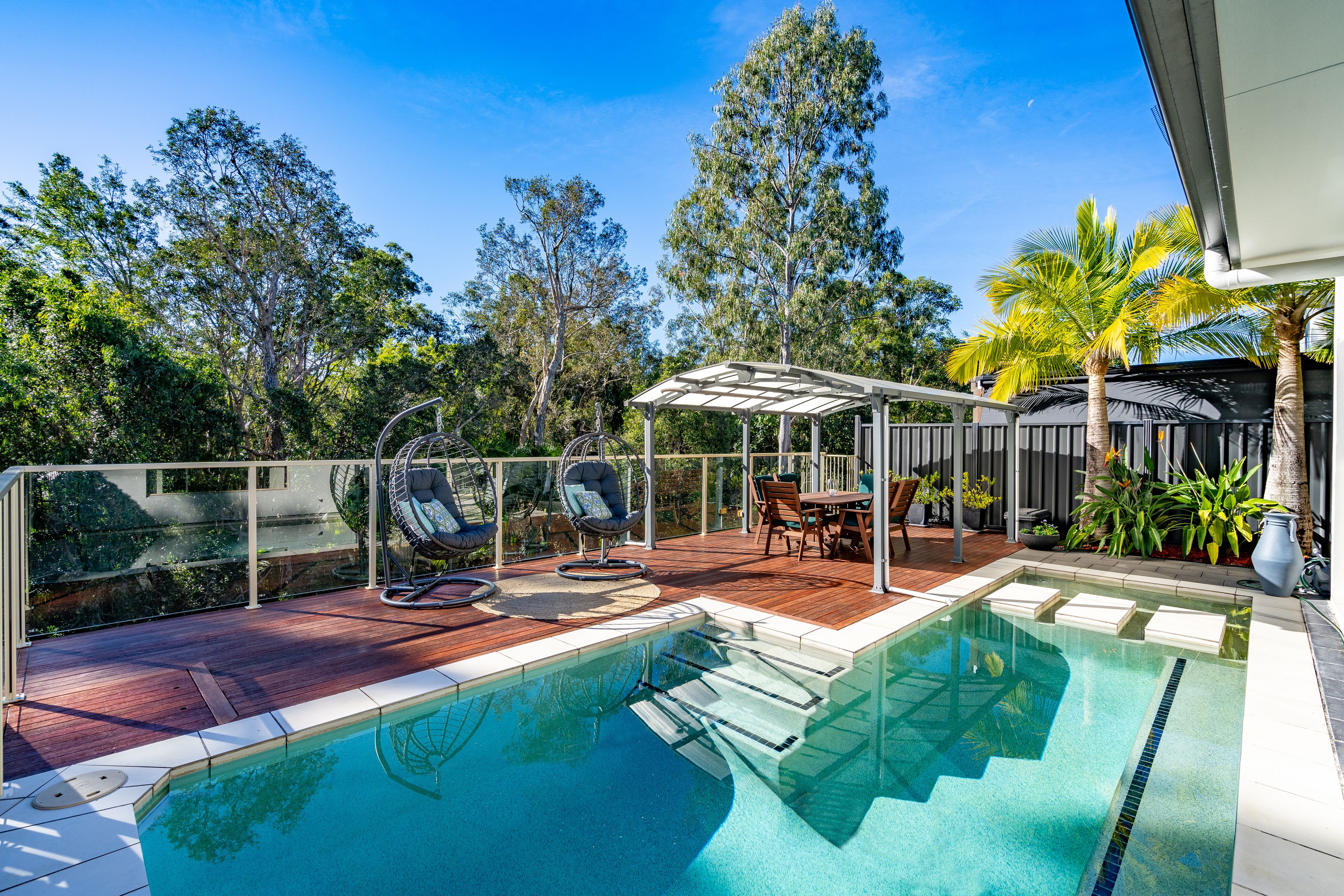Main Features Include: • Open plan main living area showcasing natural light and generous space with seamless indoor and outdoor flow • A Stunning azure pool, ideal for cooling off on a hot summer's day in privacy whilst overlooking a tranquil rainforest setting • Chefs kitchen complete with gas stove, huge bench for preparation and breakfast bar, plus appliance nook and an abundance of cupboard space • Spacious lounge area and separate dining room all open to the undercover rear patio