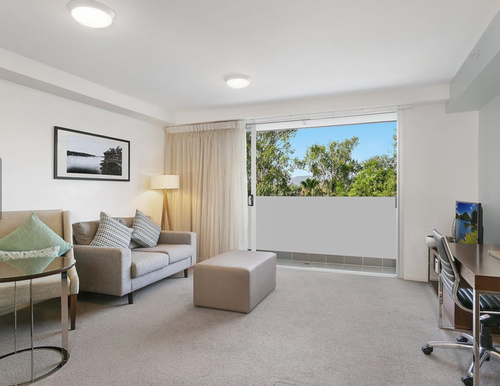 - Open-plan, carpeted kitchen/dining/living space - Modern, well-appointed kitchen with electric stove - Fully furnished right down to cutlery - Fully Air-conditioned with plenty of natural light - Well-regarded complex with on-site management and parking - Resort-style pool and gym, with restaurants on the ground floor - Walk to City Centre Plaza and other city shopping and attractions - Enjoy serene walks along the riverside with its cafes and facilities