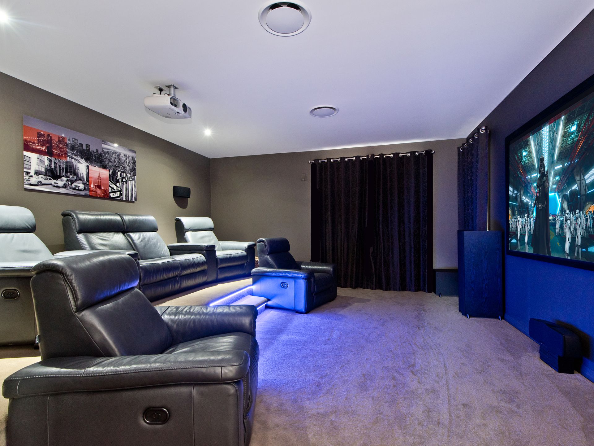 A purpose built media room offers sound proofing and black out windows to create the perfect cinema experience, with staged platforms for seating, custom lighting and quality equipment you are sure to enjoy any type of movie, day or night.