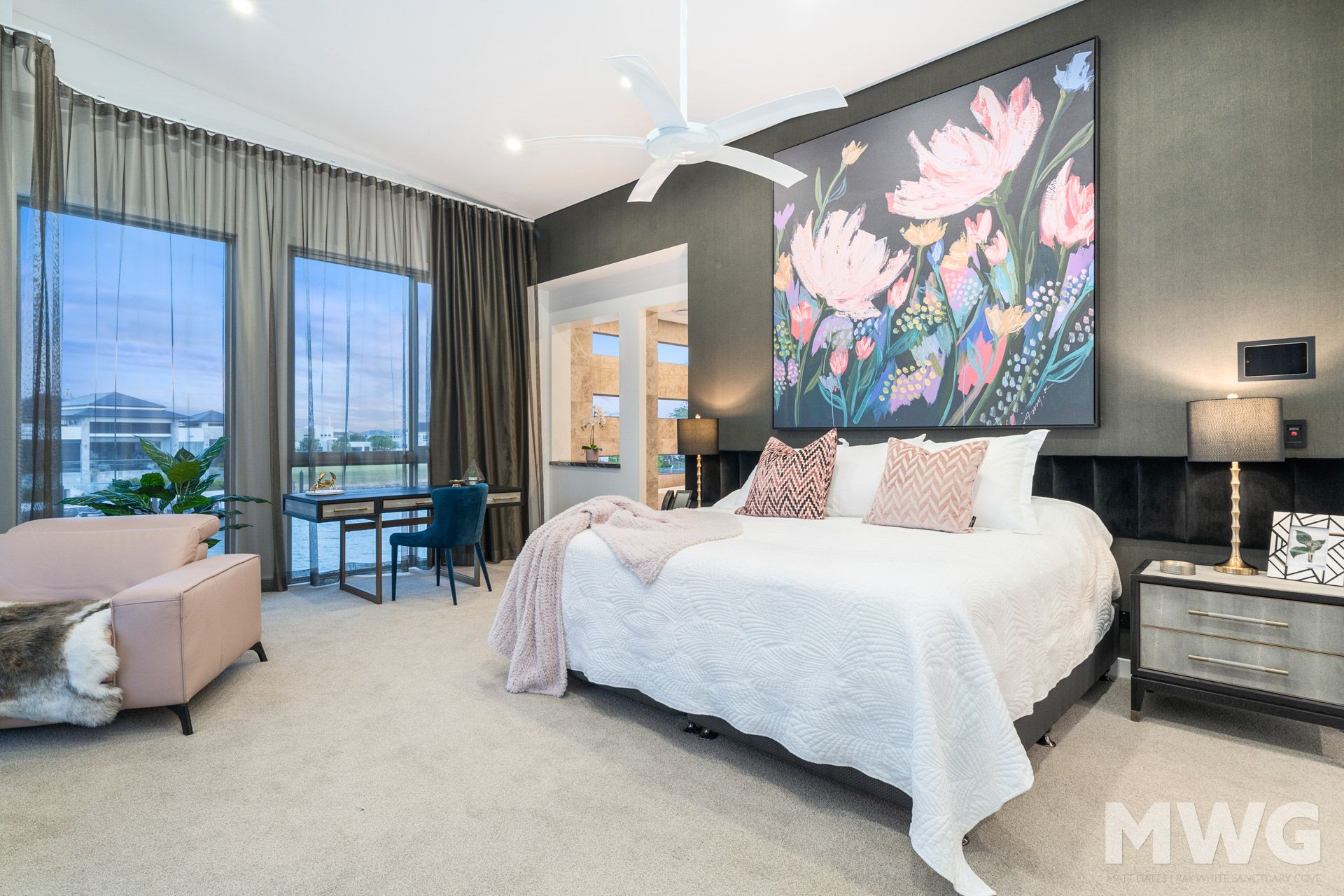Discover a media room and a study with external access, perfect for both entertainment and work. The gourmet kitchen boasts large Caesar stone benchtops, elevating culinary experiences to new heights.