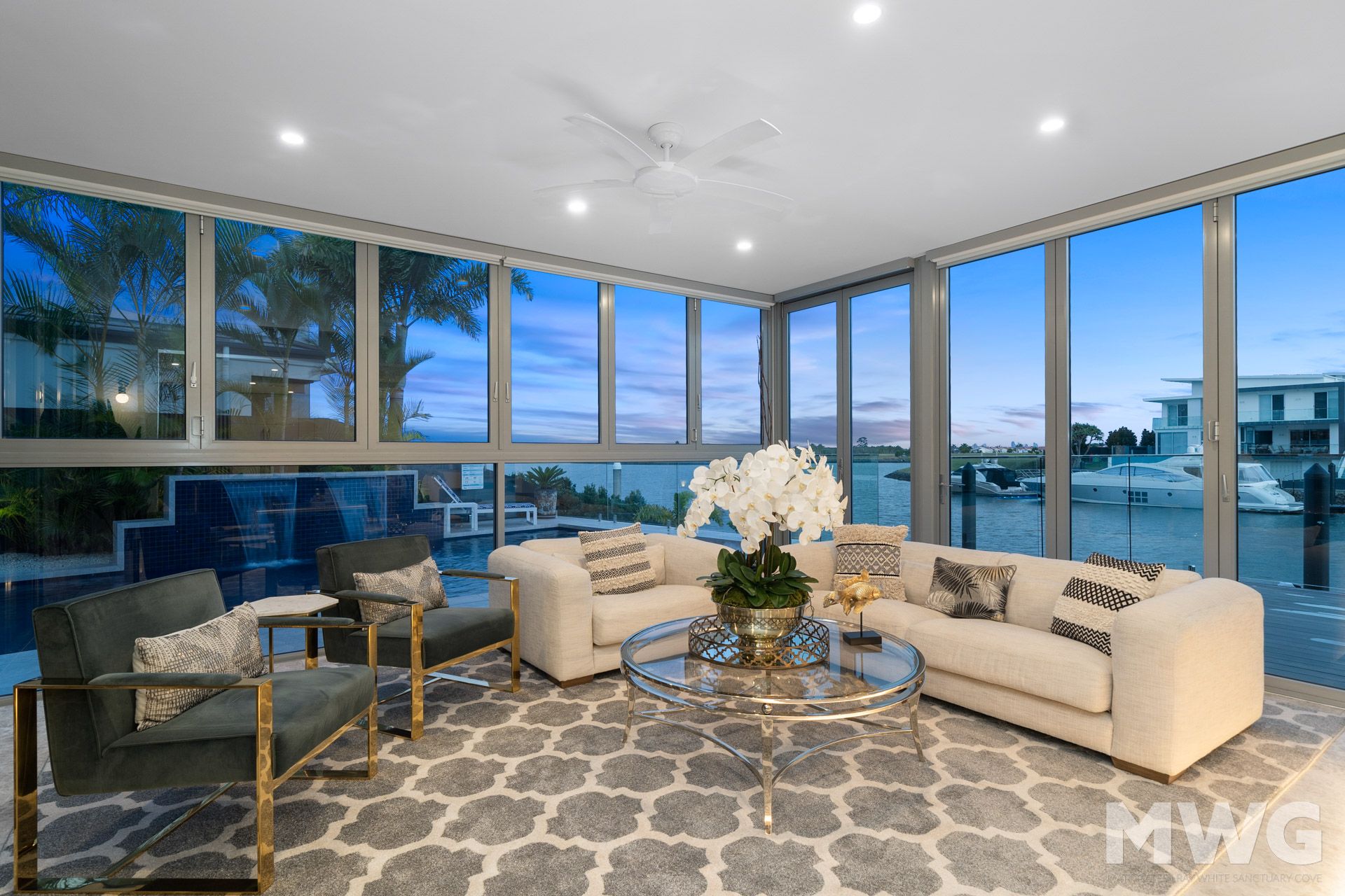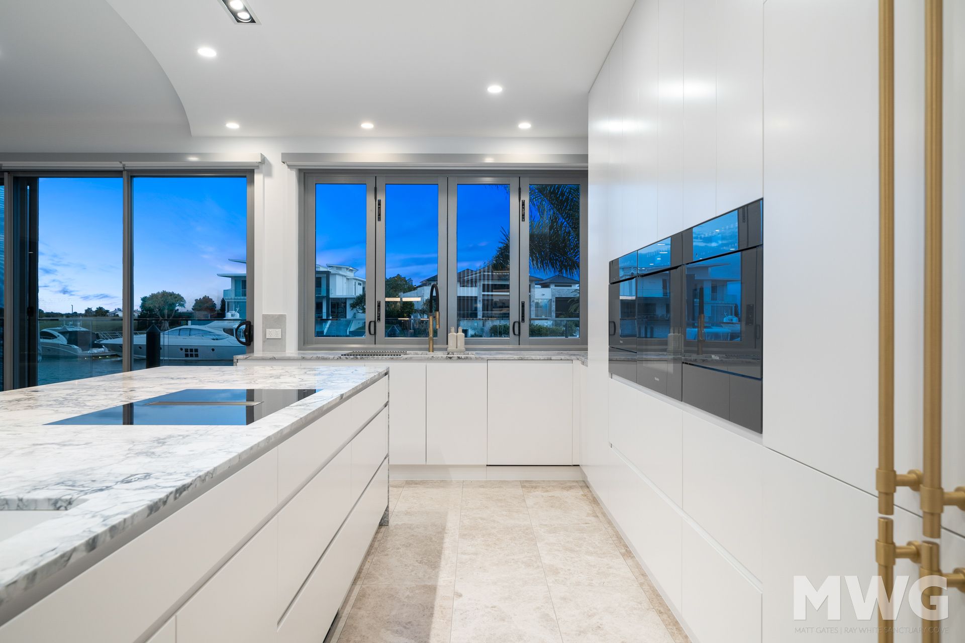 With four king-size bedrooms, each meticulously designed and featuring its own ensuite bathroom, this mansion offers a haven of tranquility and comfort. The expansive 70-square-meter home is gracefully positioned on a waterfront, boasting an impressive 23-meter deep mooring that allows for seamless access to aquatic adventures.