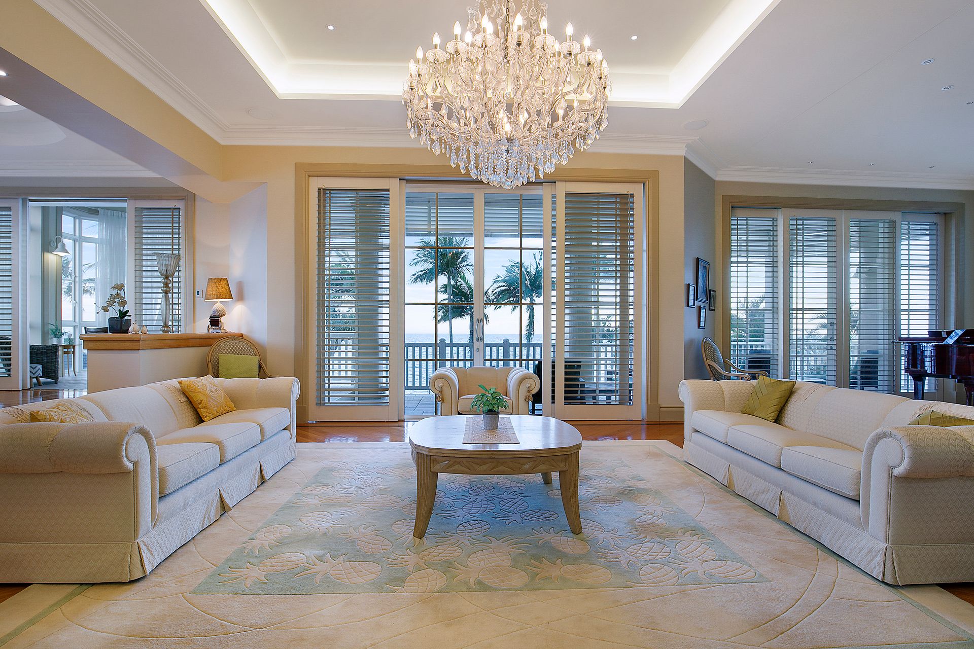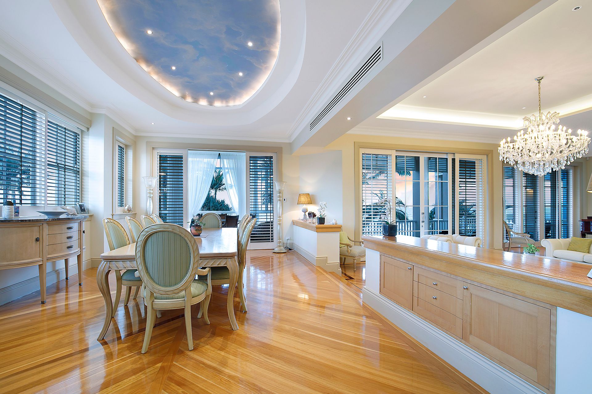 With over 1300m2 of timeless luxury, the living spaces are beyond generous with elegant, classic decor and boasting stunning features at almost every turn. The home embraces the essence of its conception with 3.5m coved ceilings, plantation shutters, Tasmanian oak flooring throughout and most rooms capturing the beautiful bay vistas. Its well designed floor plan is idyllic, taking full advantage of this sensational lifestyle opportunity and its ultimate waterfront location. The spectacular living areas are a sight to behold showcasing Moreton Bay through floor to ceiling glass lining the entire eastern side of the property. Each bedroom boasts shimmering bay vistas and an exclusive balcony. It also provides absolute peace and privacy to the grand master suite and remaining bedrooms.