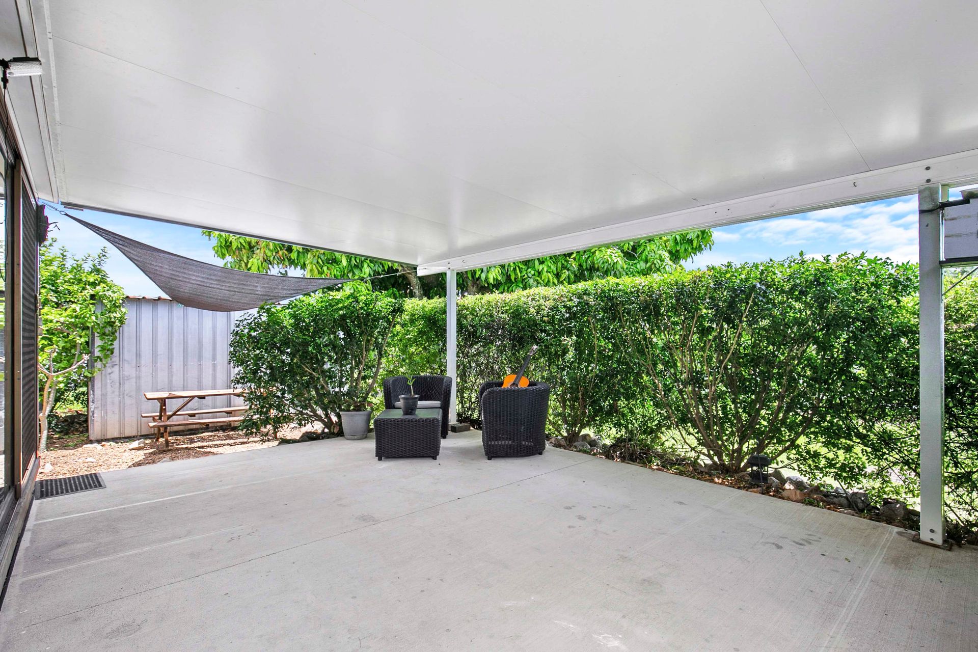 The open-plan living and dining area seamlessly flows into the sun-room, which opens up to a generous patio - ideal for entertaining guests or unwinding in privacy. In addition to the single garage, a drive-through carport provides extra parking space and direct access to the backyard.