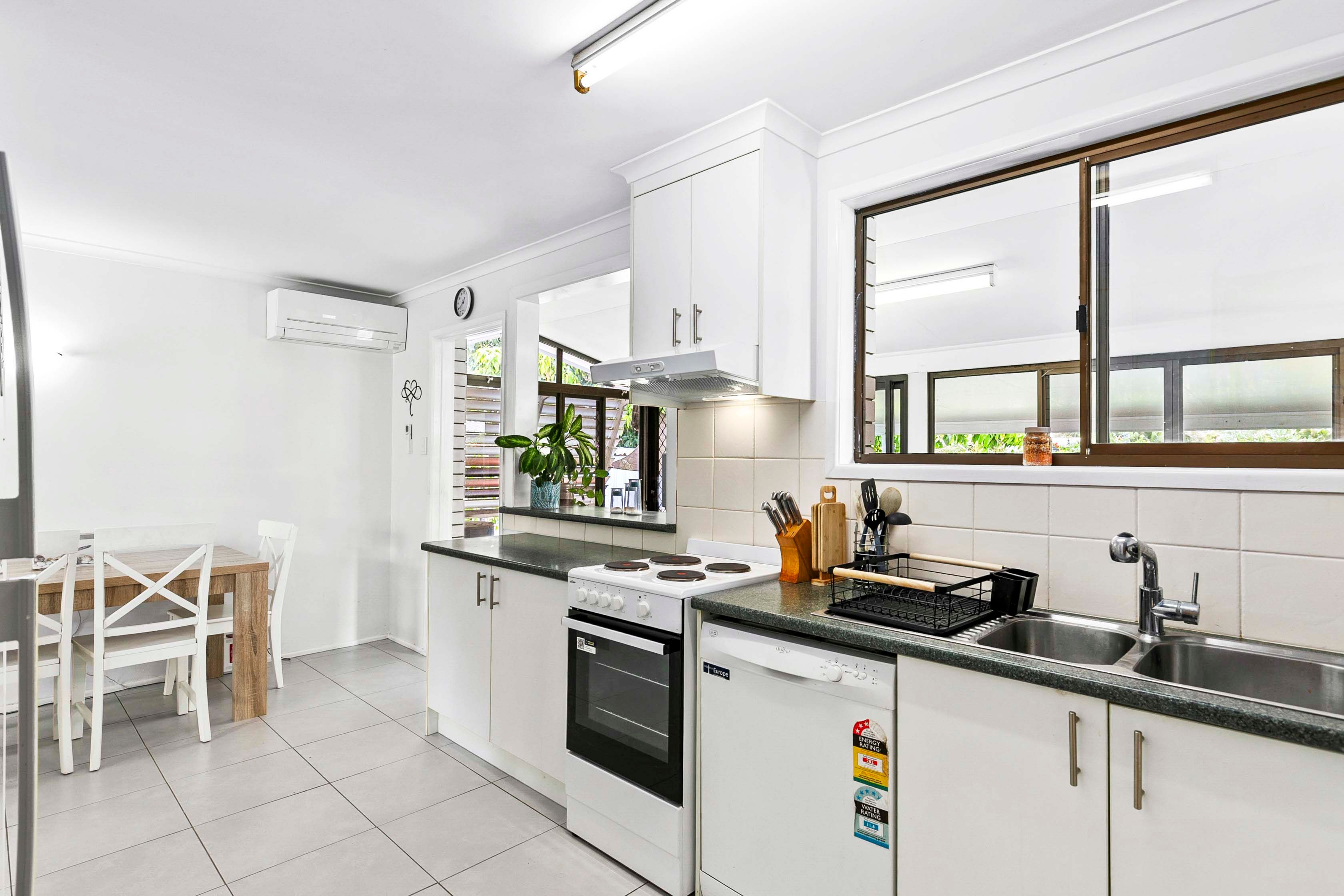 Key Features: - 604m² block in an excellent location - Air-conditioned living/dining area - Three bedrooms, each with ceiling fans - Fully equipped kitchen with dishwasher - Renovated bathroom - Bright sun-room - Large patio area - Single garage - Drive-through carport - Powered work shed