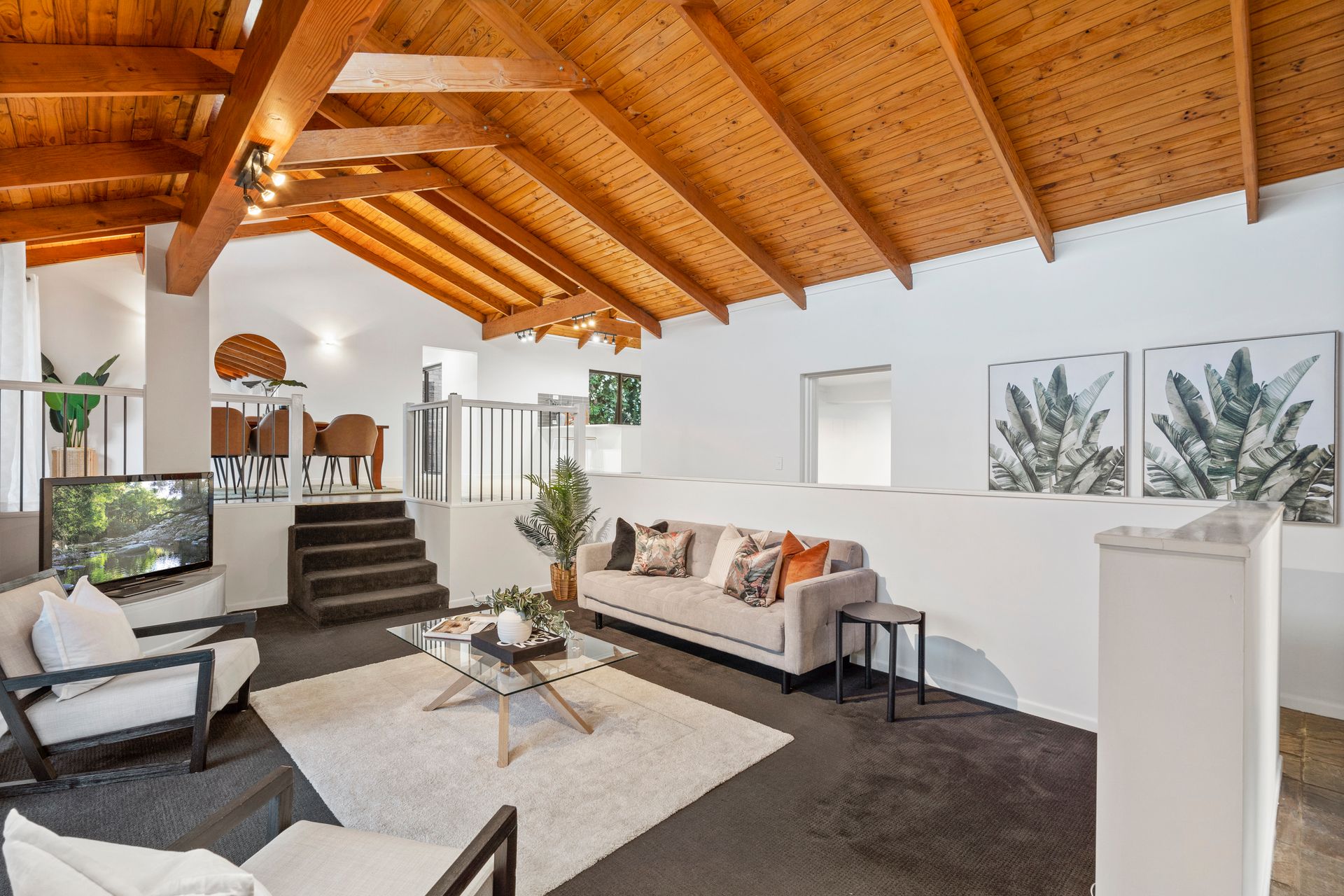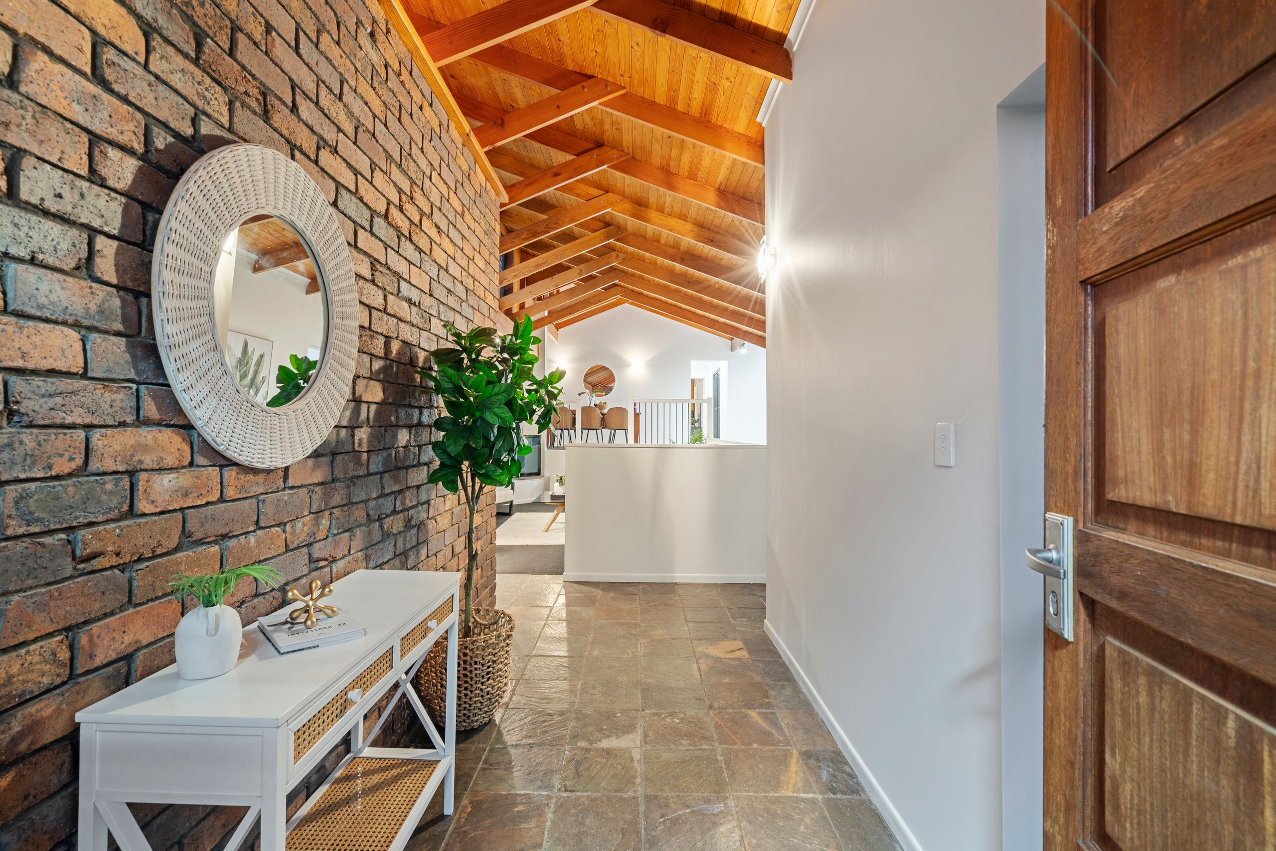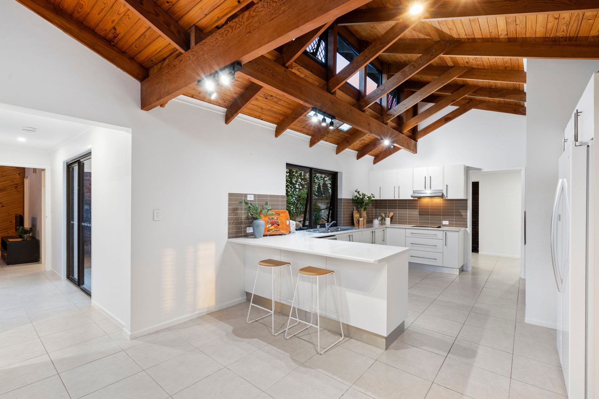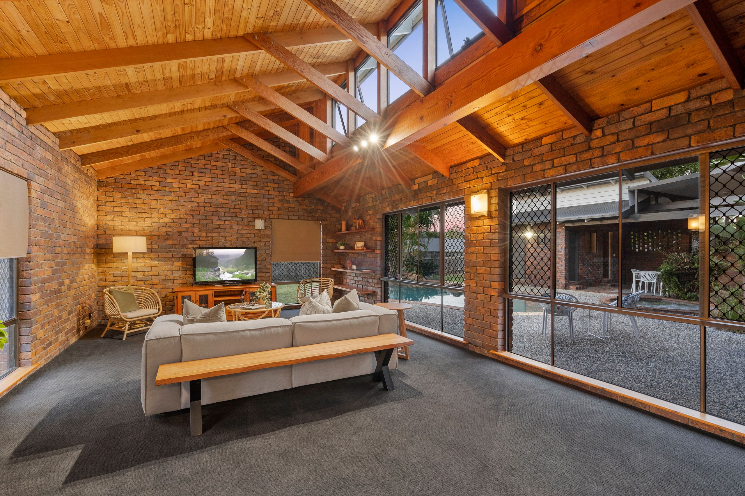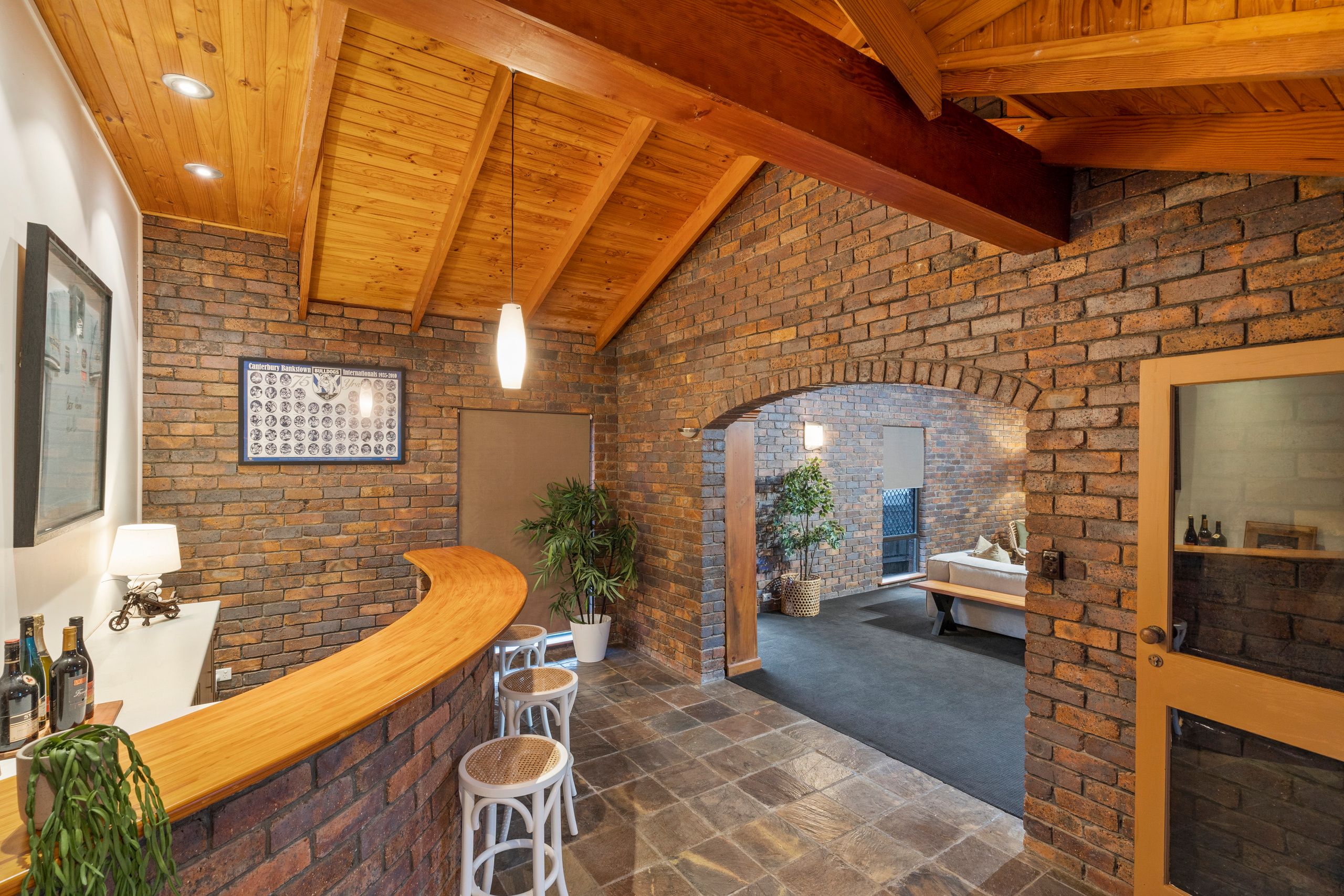 Characterised by its soaring cathedral ceilings, exposed brickwork and timber beams, the welcoming residence is one of grand proportions and exceptional family functionality.
