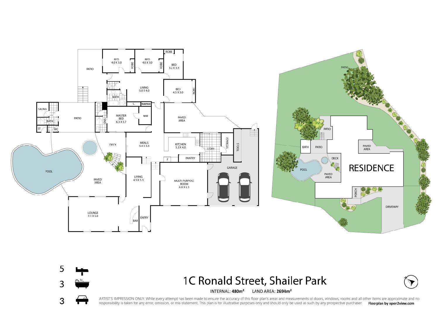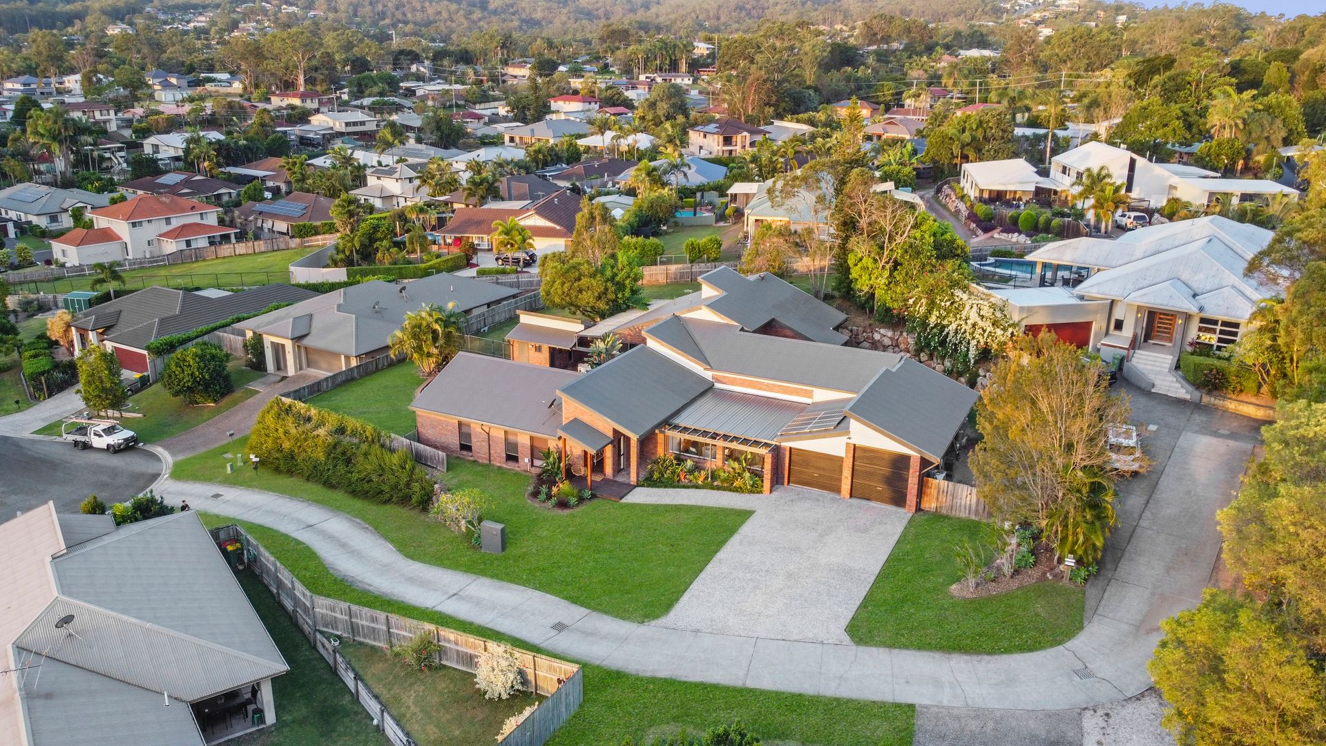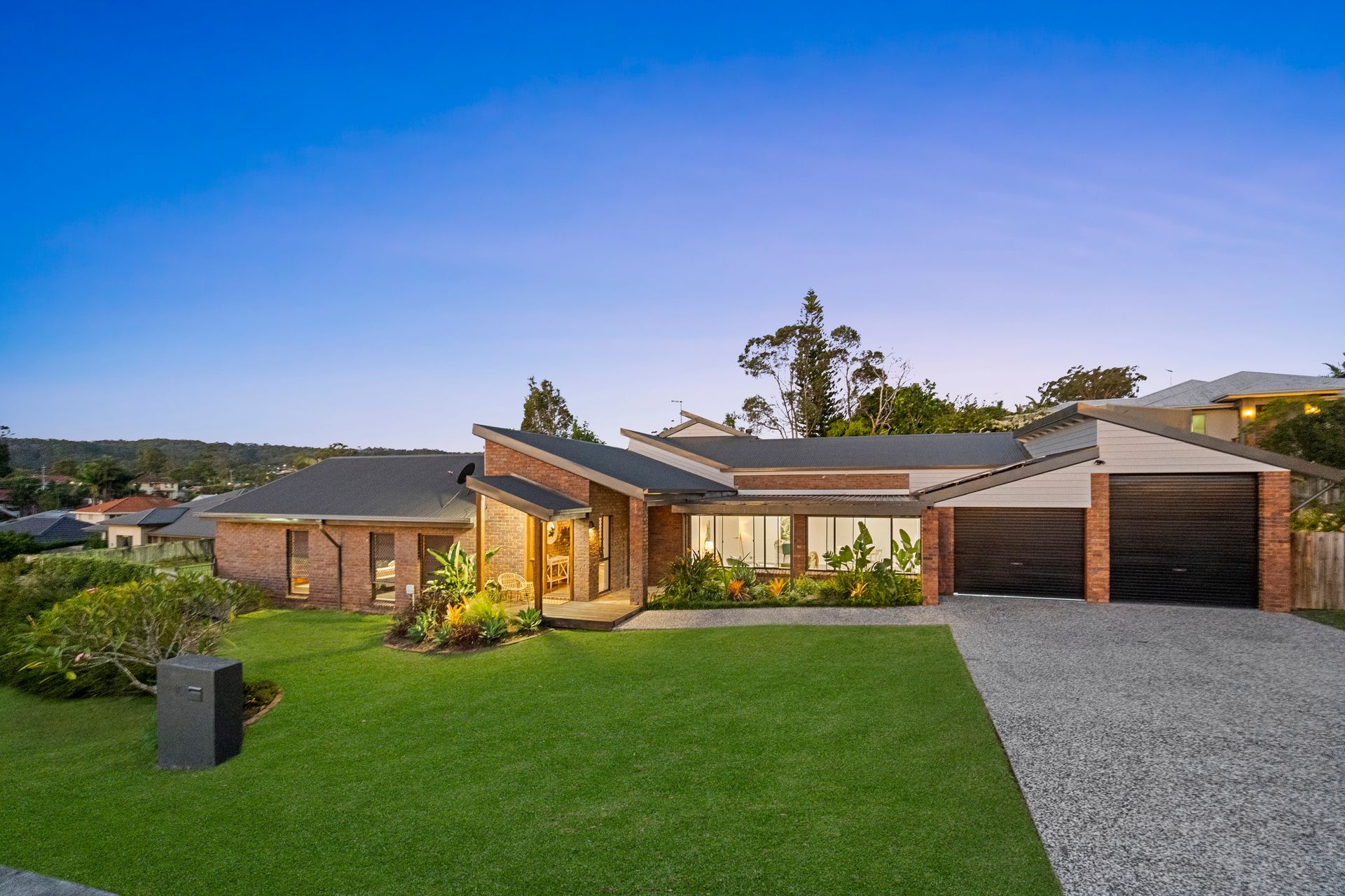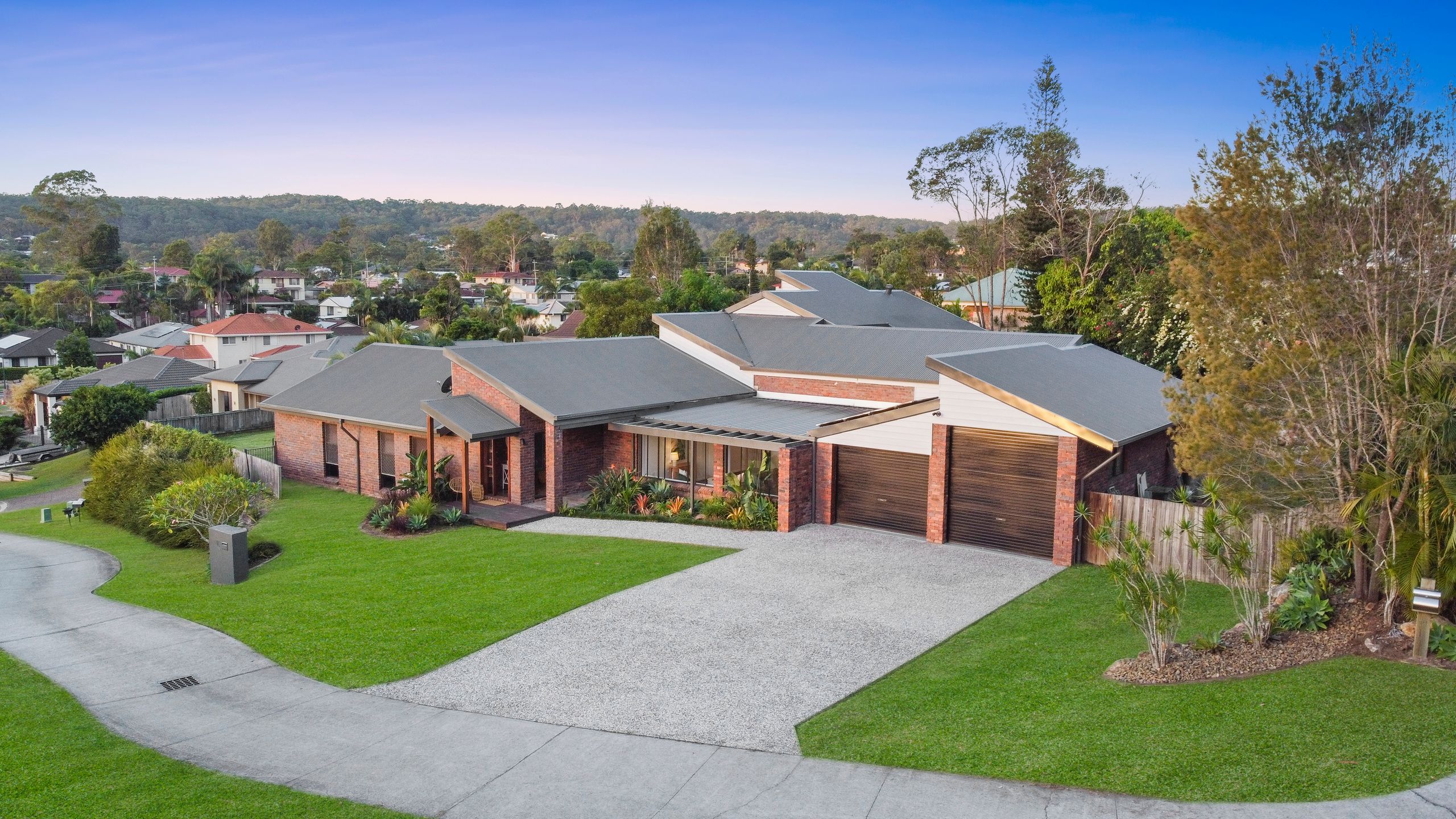 Privately positioned at the end of an exclusive cul-de-sac, the impressive architectural home boasts almost 480m2 of underroof space and features five bedrooms, four expansive living zones and an enormous backyard with lagoon swimming pool and spa.