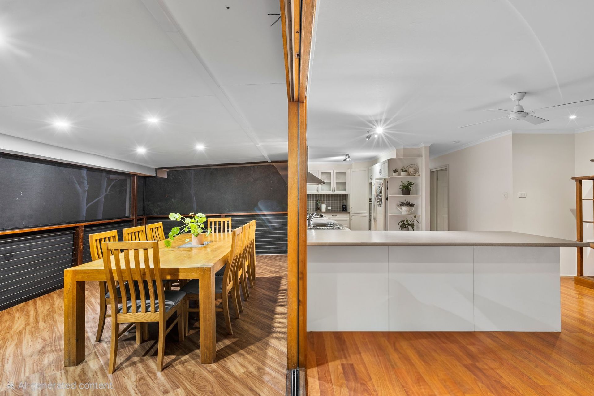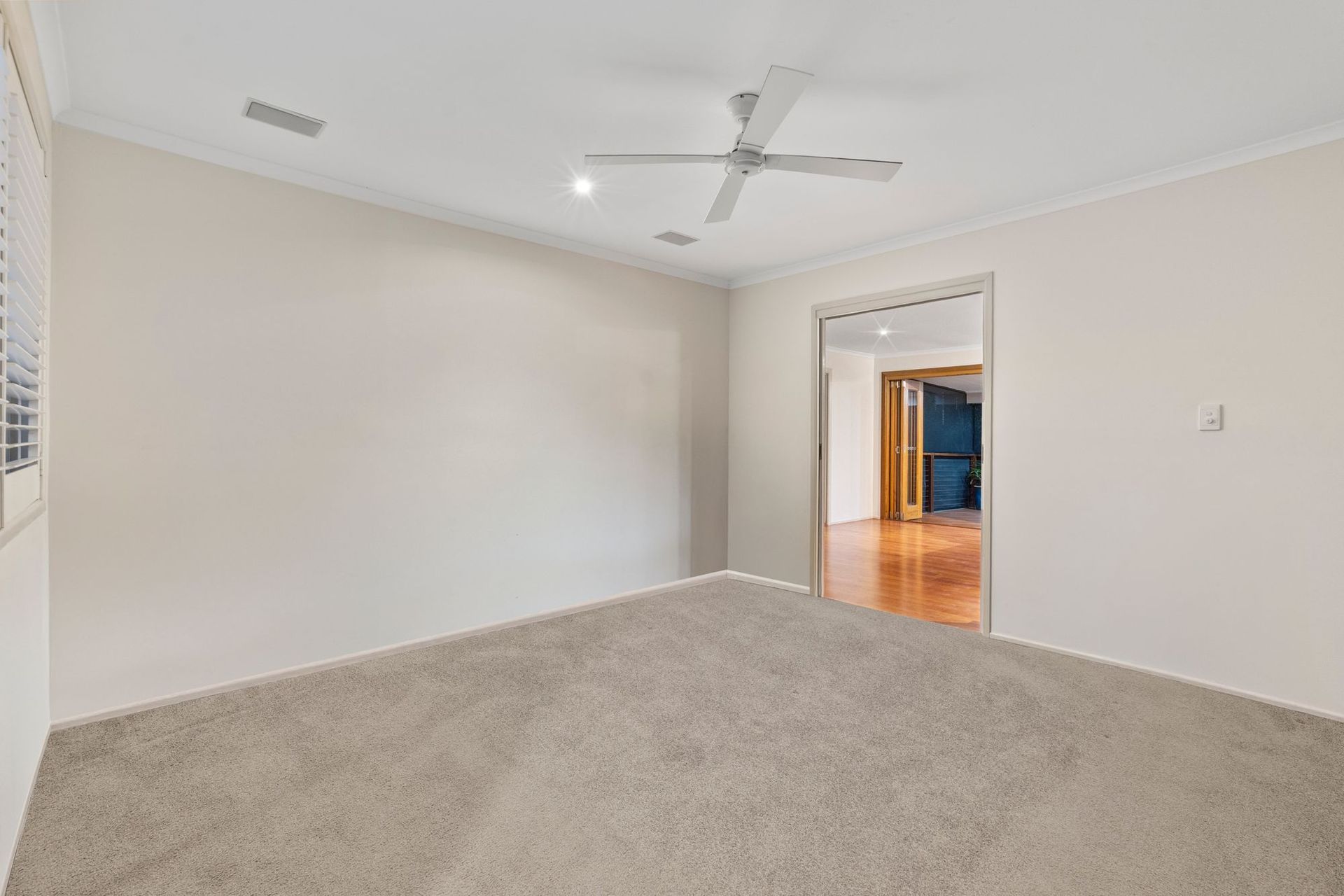 Upstairs * Gallery-style kitchen with open-plan living and dining * Separate media room * Three bedrooms with built-in robes and ceiling fans * Private master suite with ensuite * Elevated deck with parkland views