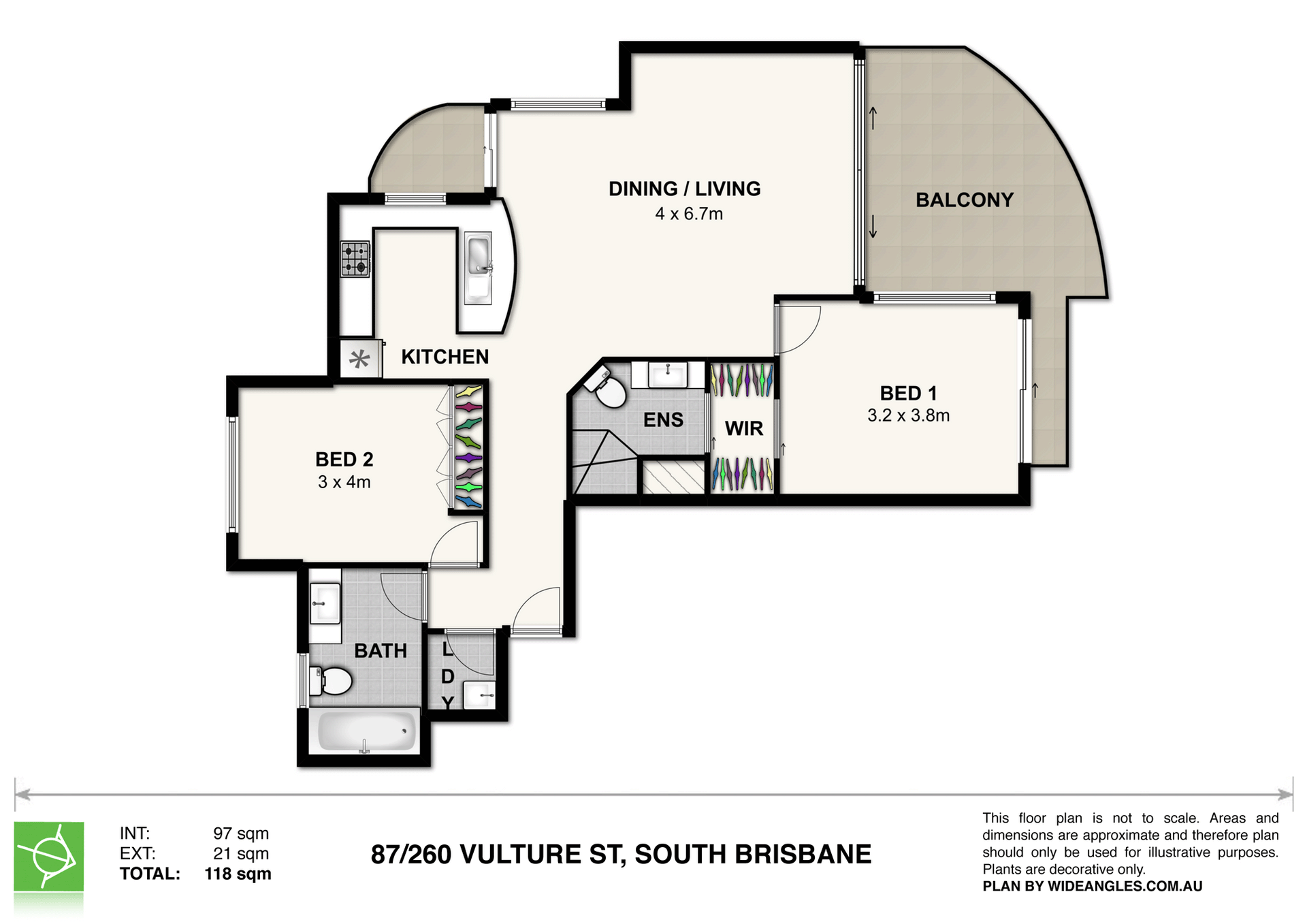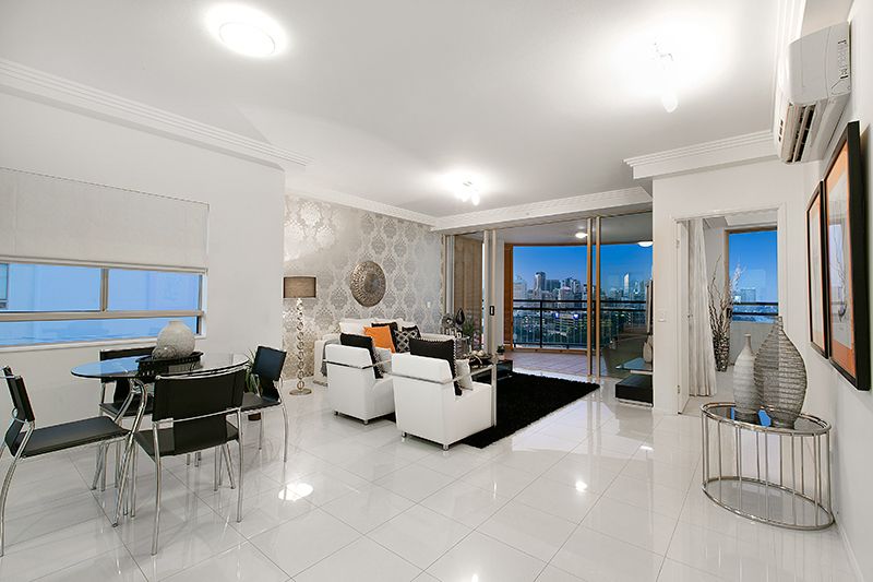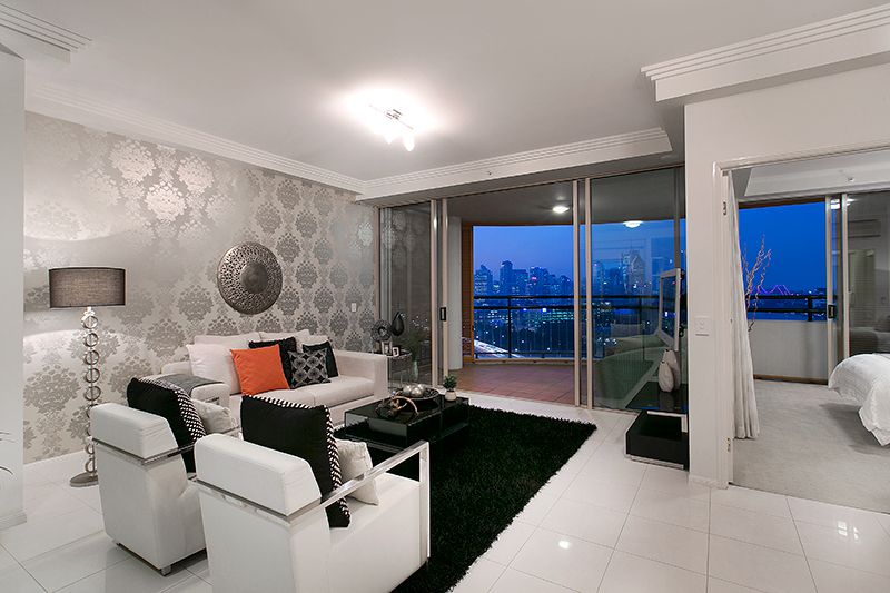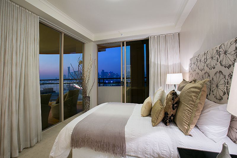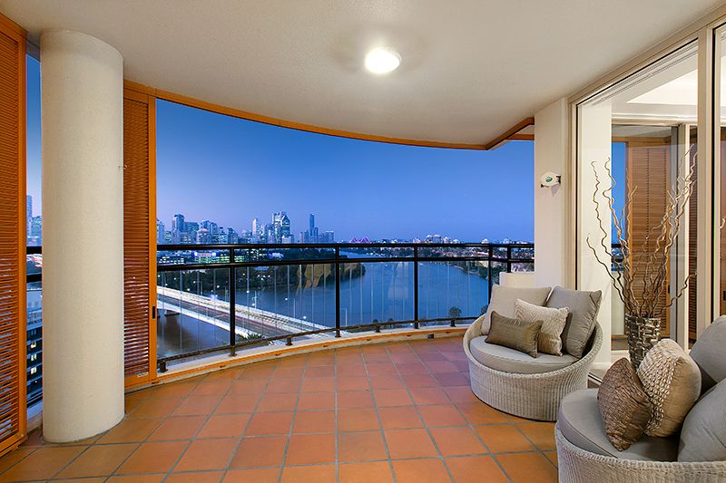 Property Features: -Two spacious bedrooms - Master with balcony access and stunning views, floor to ceiling glass, walk through robe and private ensuite -Two bathrooms - both refurbished with quality finishes, main with bath tub -One secure car park (#87 on level 2) adjacent to lifts and storage room -Large 9sqm secure storage room with power (#87 on level 2) located next to the lifts -Bright, breezy and spacious open plan living and dining area opens onto a front and rear balcony -Large private entertainers' balcony features glass edging to maximise the uninterrupted panoramic river views -Small second balcony off the rear of the living area -Refurbished kitchen features quality stone benches, stainless steel appliances, gas cooking and plenty of storage -Separate laundry room with built in shelving -Approx. 118sqm (97sqm int; 21sqm ext) on the 11th floor -Luxury building facilities include two outdoor pools, a spa and BBQ area overlooking the city, a gymnasium and sauna -On-site management provides security and added peace of mind