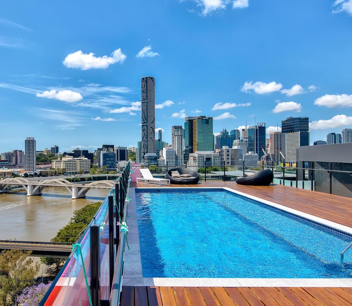 Resort style Rooftop pool with stunning city and river views.