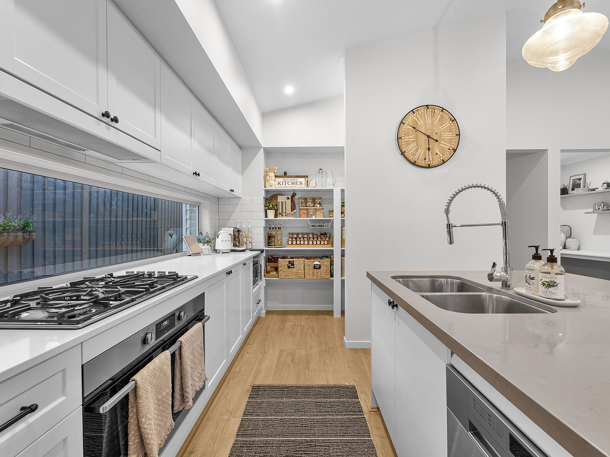 Open plan living is immensely popular, and your new spacious living, dining and kitchen areas are no exception. What's more, the modern, Hamptons-style kitchen is an absolute dream for the home chef, boasting a Caesarstone island bench, freestanding 5-burner gas cooktop and a large walk-in pantry!