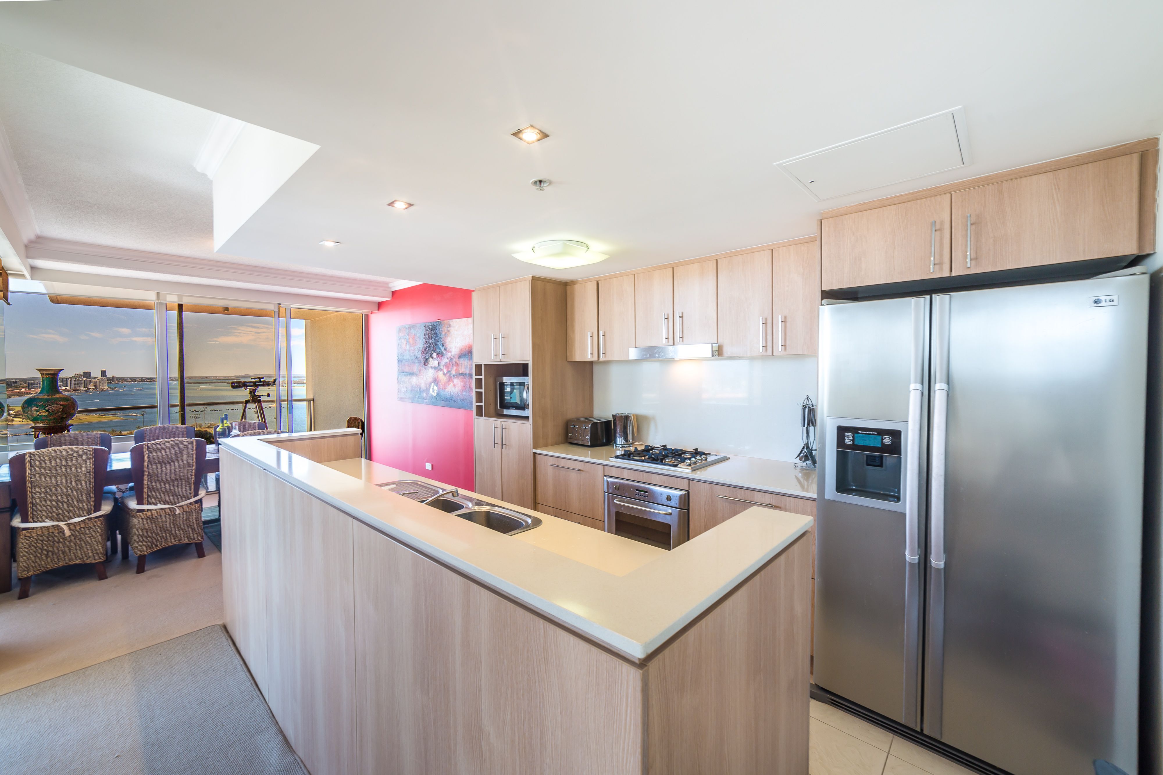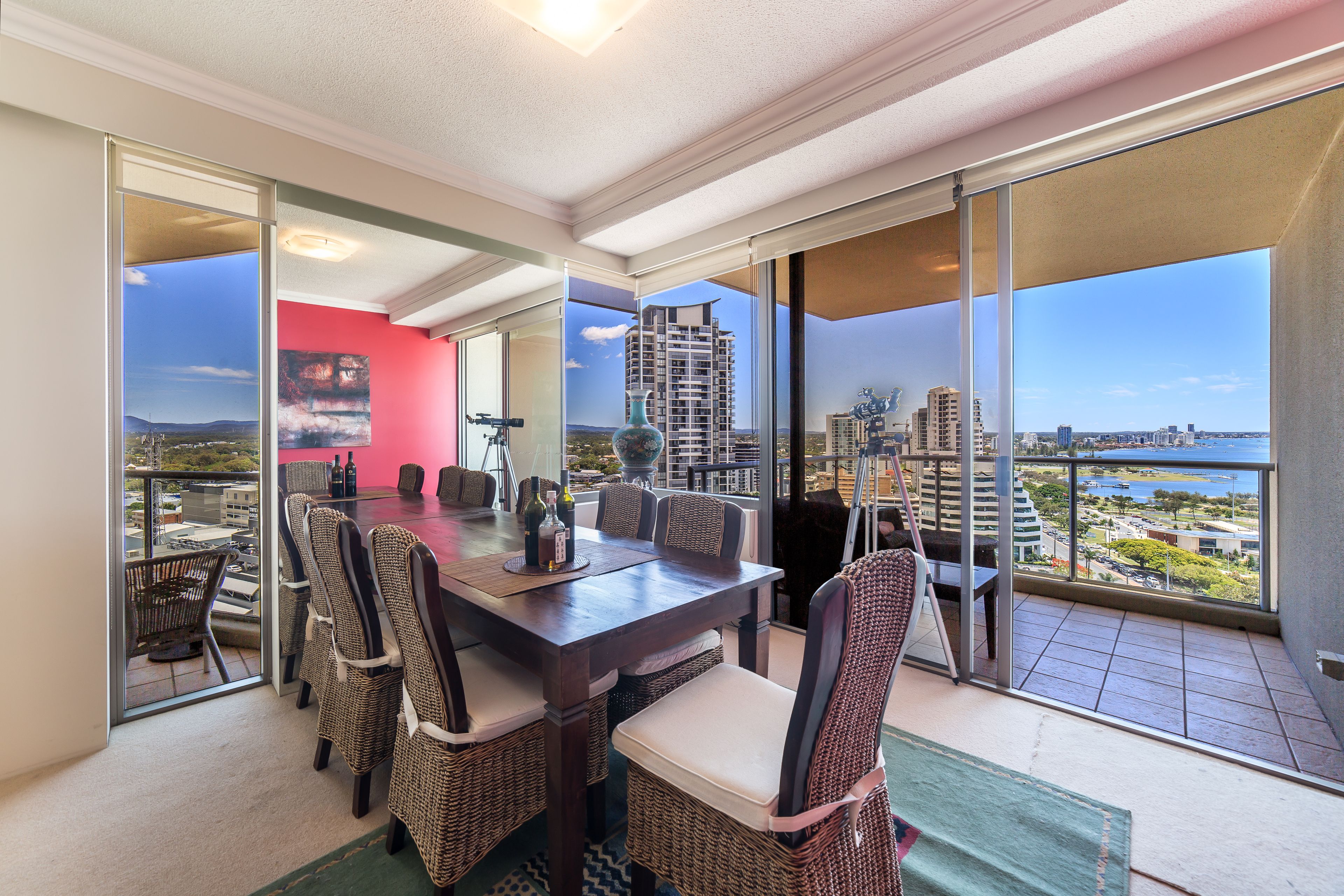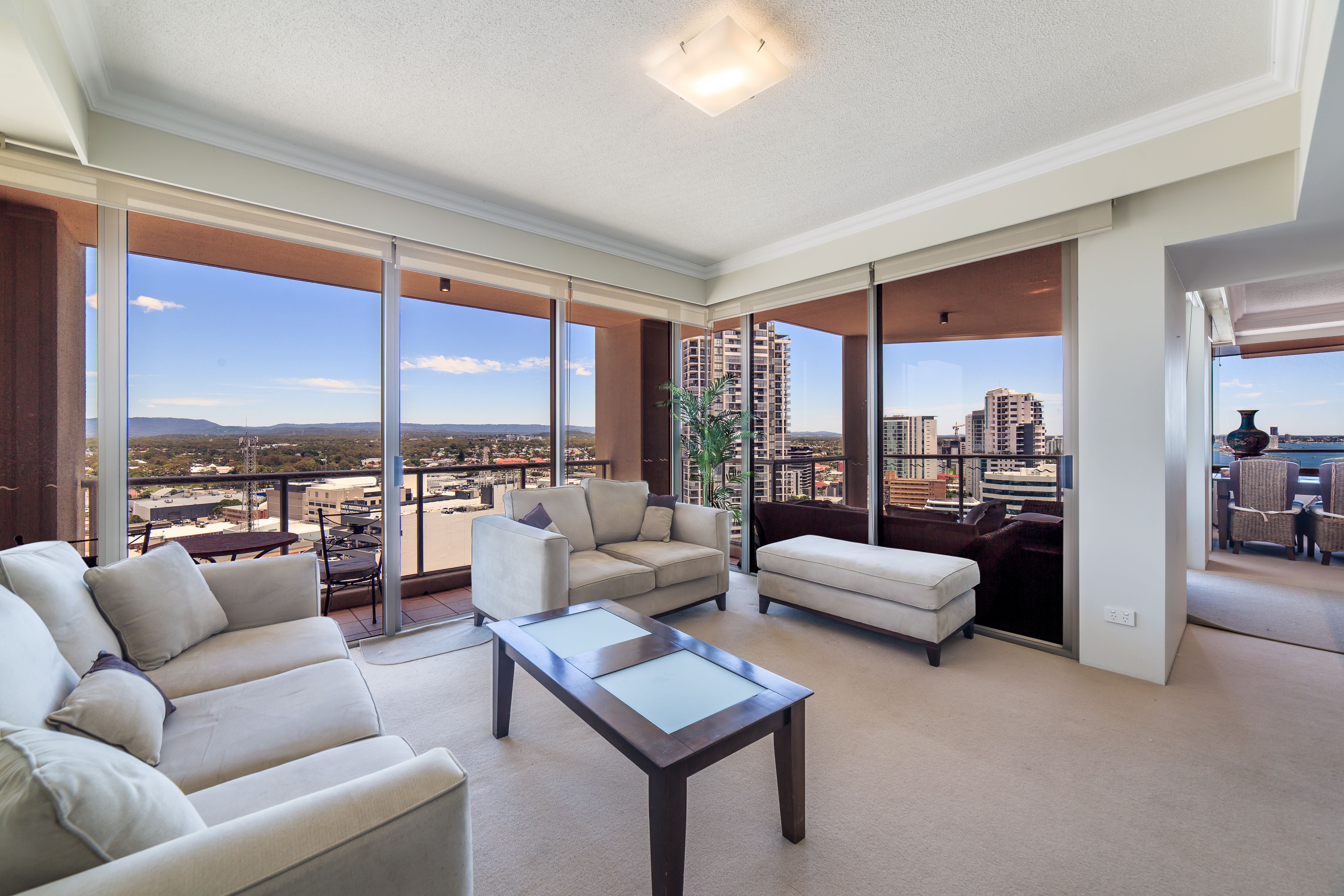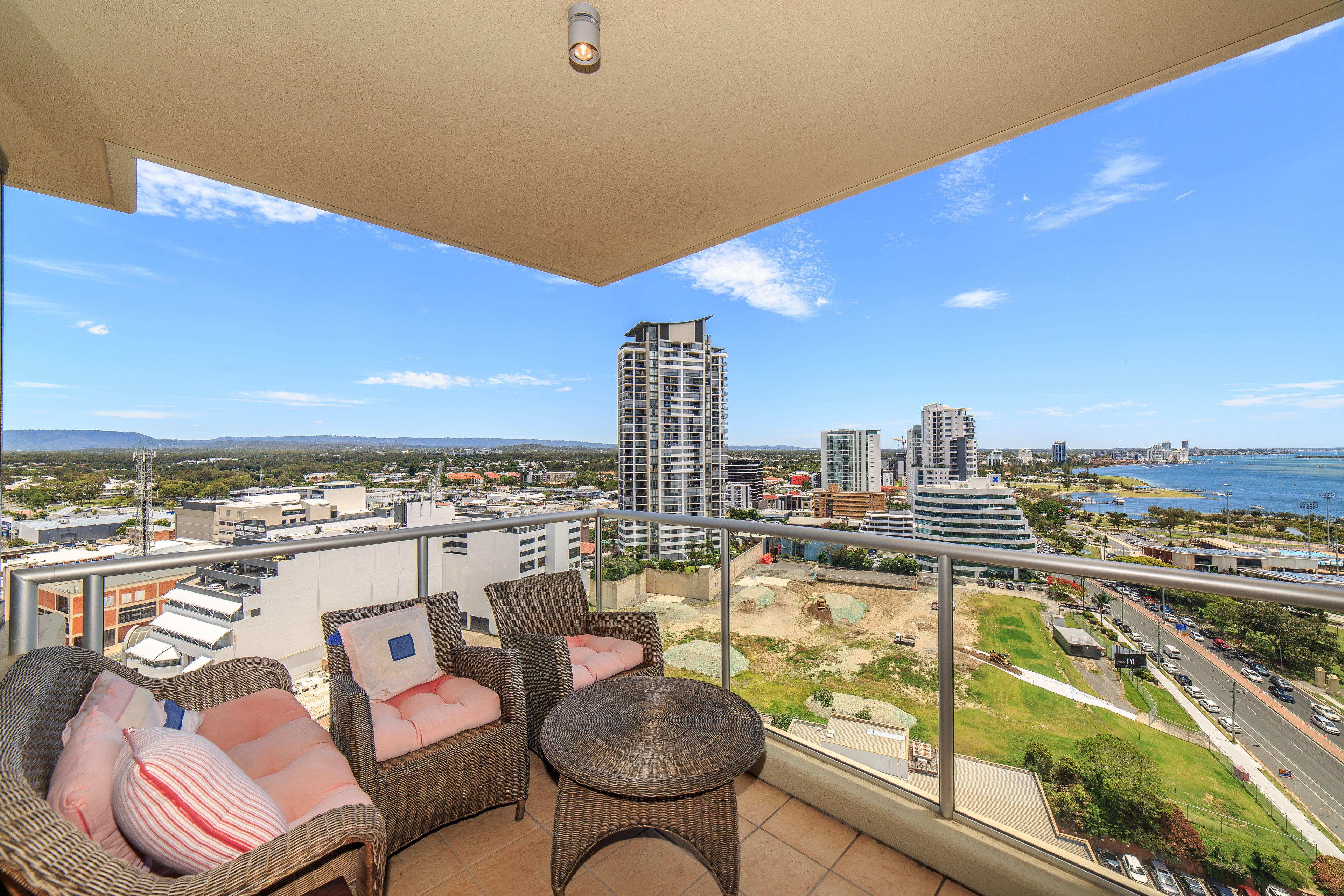 With a modern touch, this unit boasts two generously sized bedrooms with built in robes and master with ensuite, additional separate bathroom and laundry and views to die for, with 180 degree views looking out to the Broadwater/ocean, city and also the hinterland!