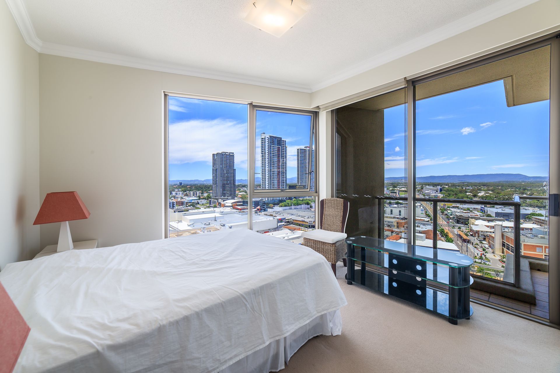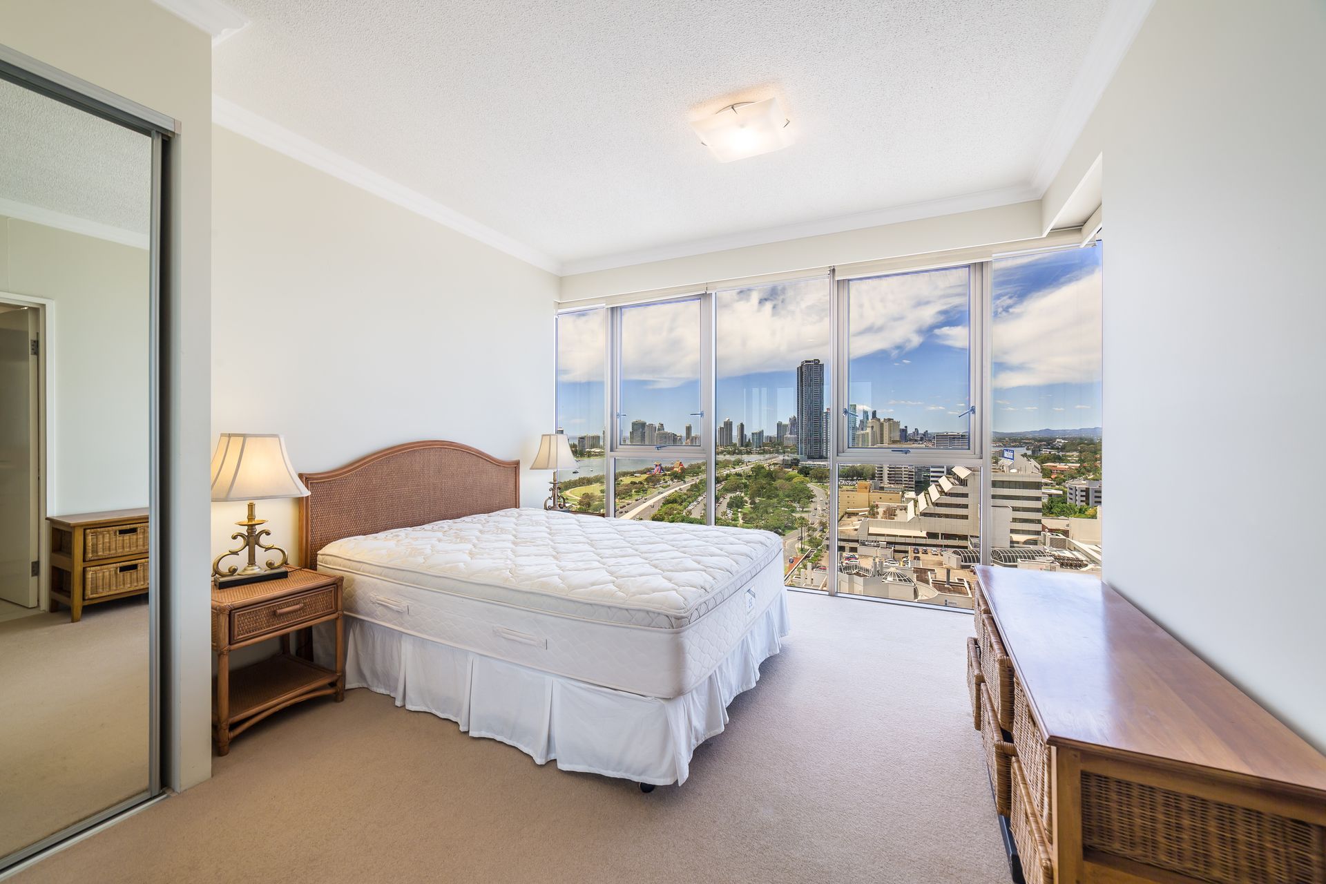 • Level 18 • Two spacious bedrooms with built in robes • One secure car space • City, ocean, hinterland and Broadwater views • Open plan living • Ducted air conditioning throughout • Modern and functional kitchen with stone bench tops and modern appliances • Separate laundry and bathroom • Balcony with panoramic views from the Broadwater to the hinterland