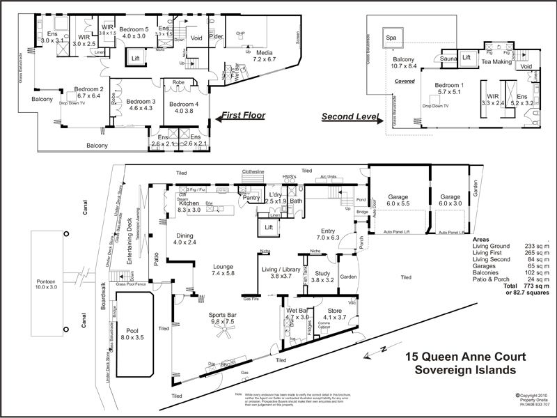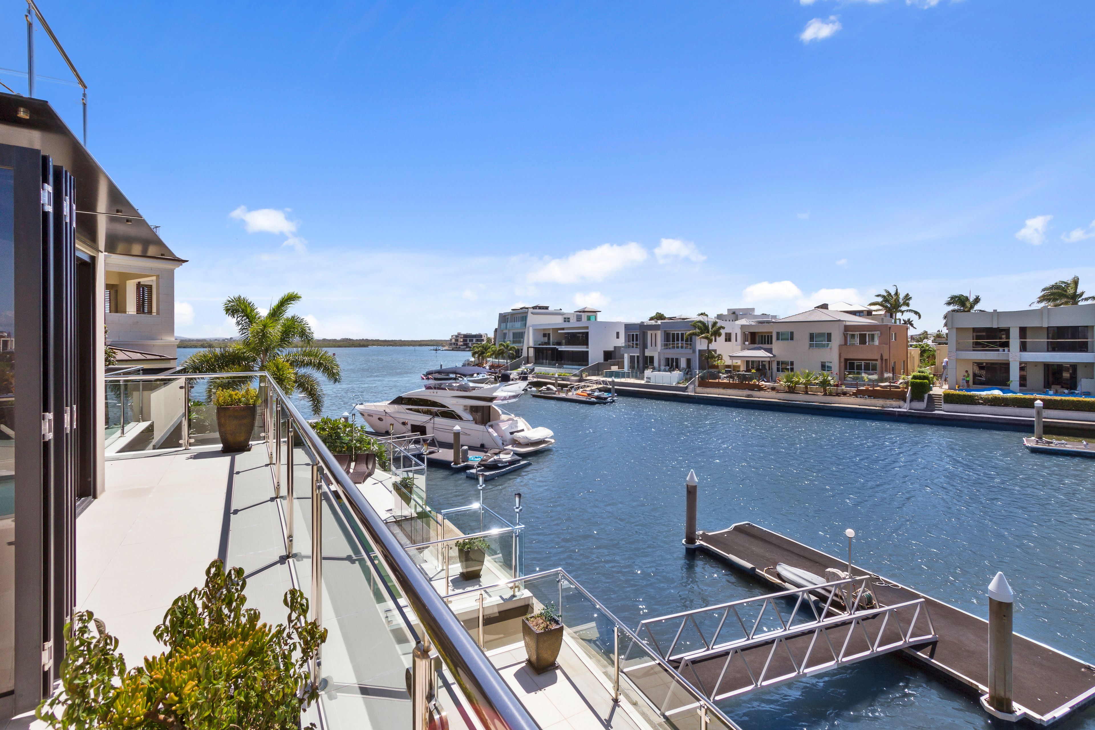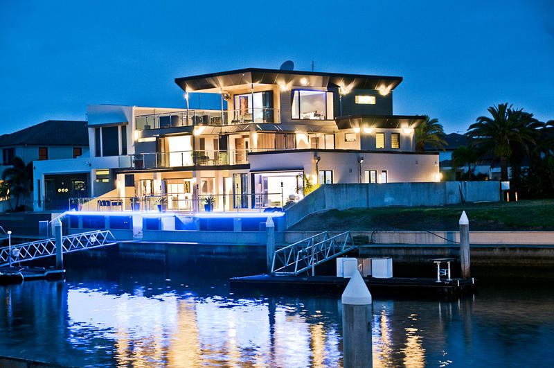 OF NOTE... - 5 bedrooms, 6 bathrooms plus guest powder room - Pontoon suitable for large boat with power and water, massive waterside storage - Shy zip screens and electric blinds, feature LED lighting throughout, - Porcelain tiling, imported wallpapers, wool carpets - C'Bus system for blinds, lighting, ducted sound, remote entry access, a touch of a button does it all - Eco friendly air-conditioning, back to base security - Lift servicing all levels - Sparkling pool by the water edge
