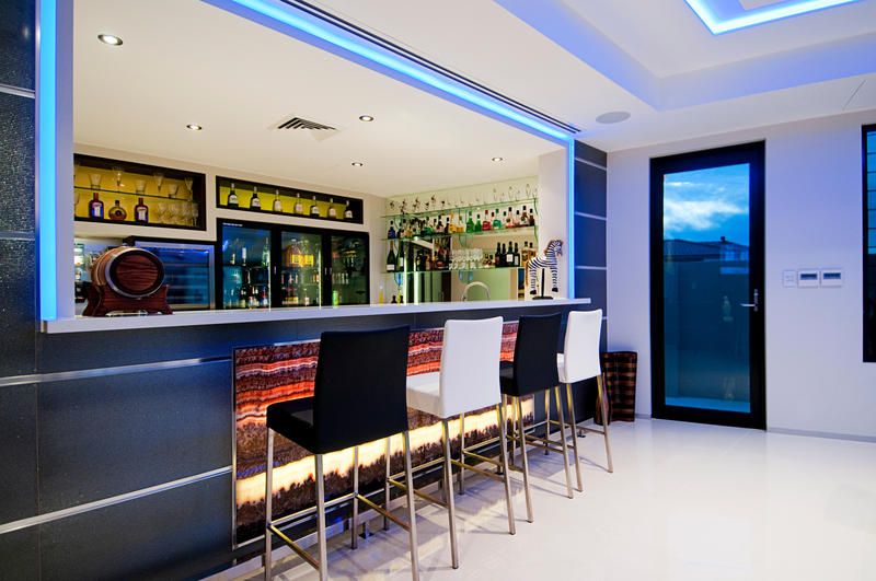 MOVIE ROOM: The movie room contains an elevated lounge area to allow a true Cinema feel, surround sound system and mood lighting ensures the perfect viewing ambience, the bar completes the entertaining experience.