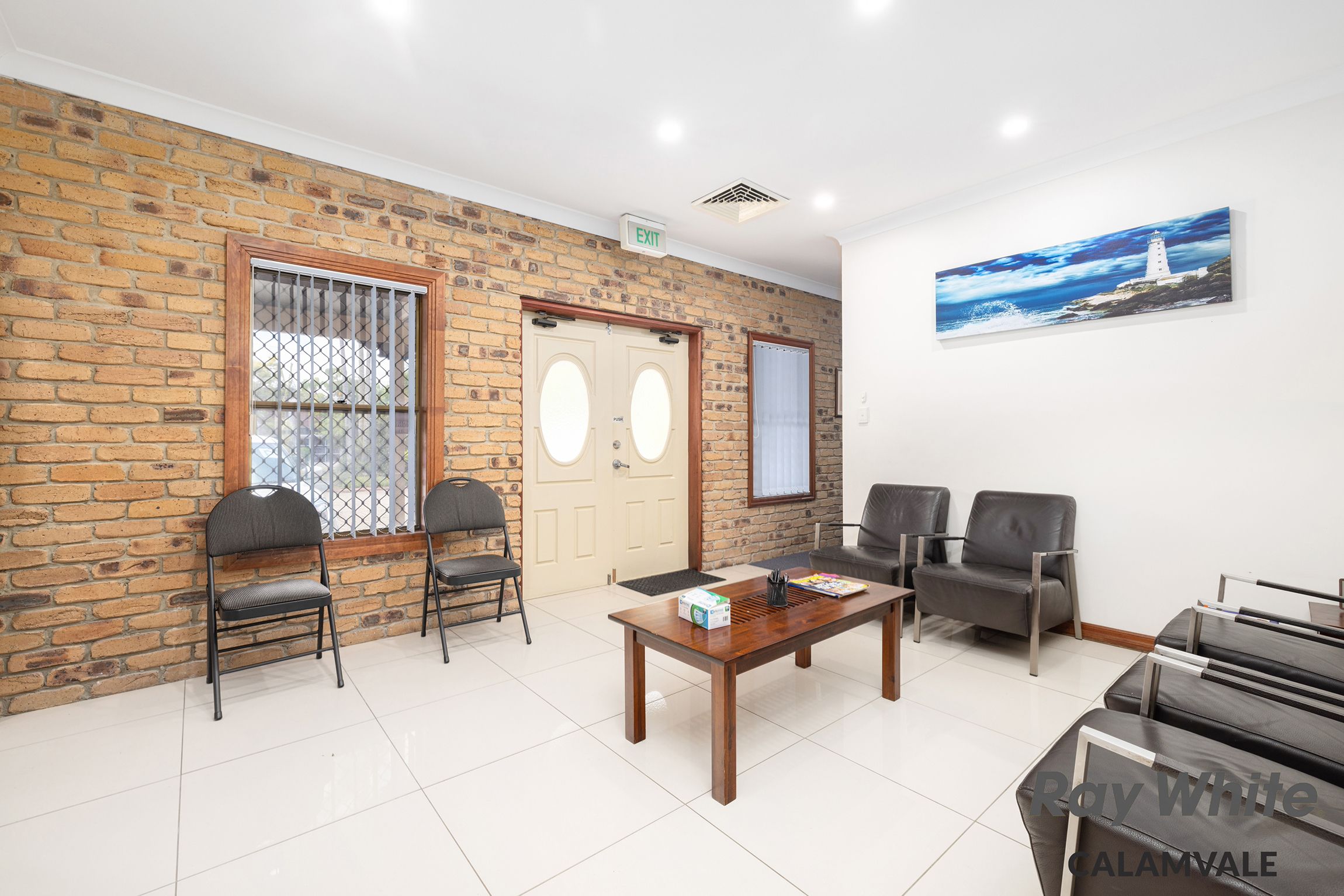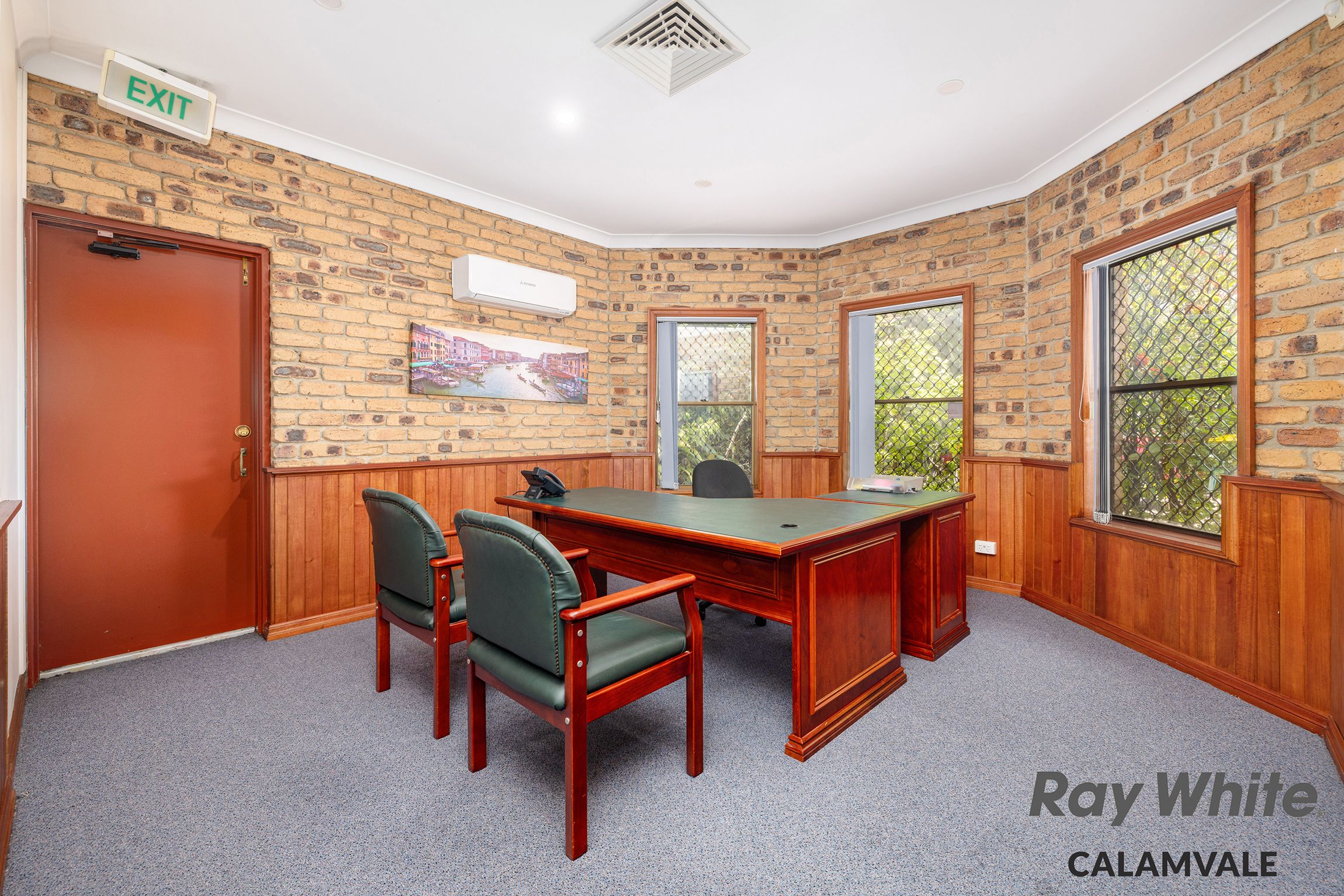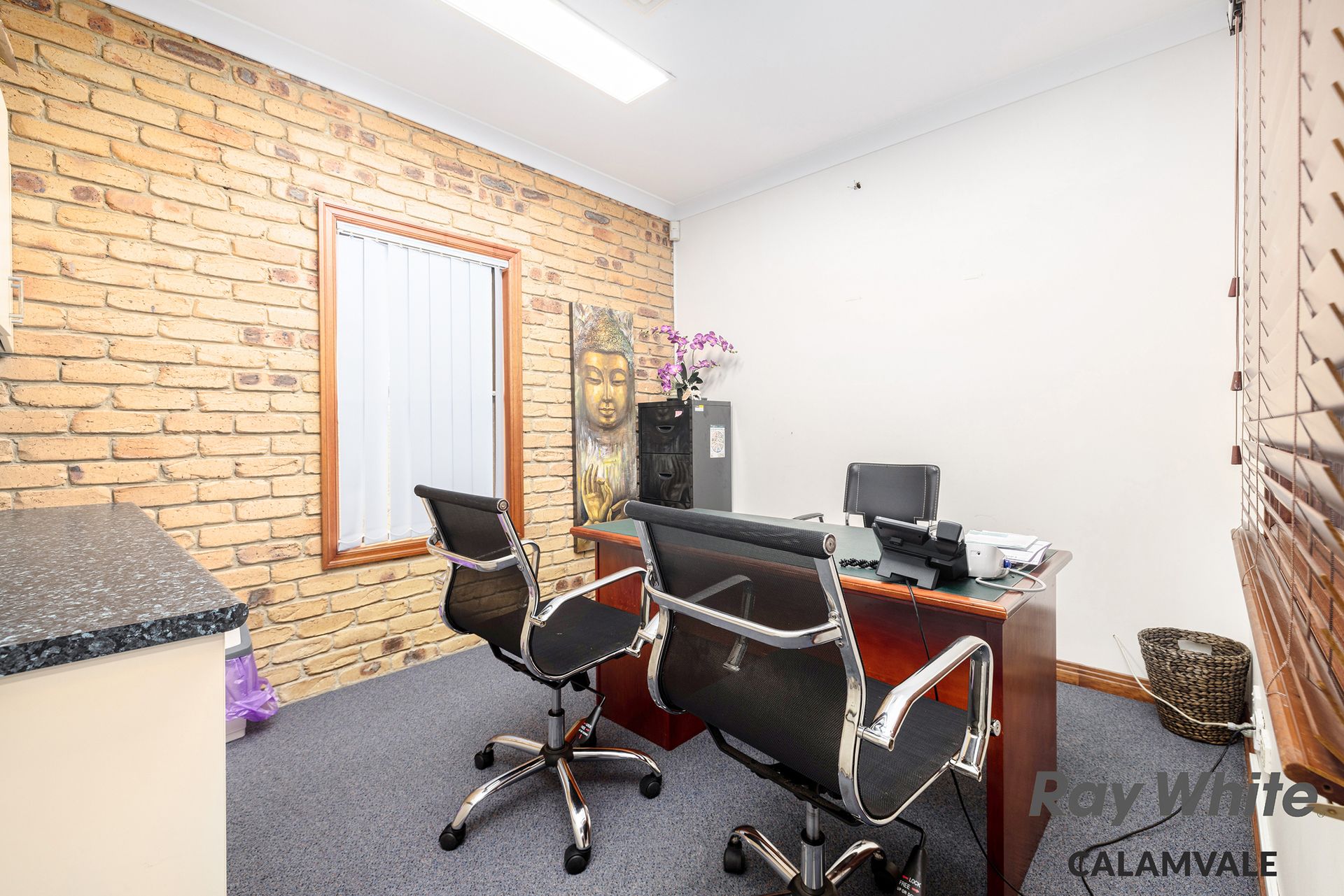- Wide entry into significant forecourt offering accessible off-street visitor and staff parking - Approximately 208sqm building size, brick and tile construct - Welcoming reception and waiting room - Back of house office / storage room with kitchen facility - Customer amenities with three toilets and disabled bathroom - Two distinct and identical meeting rooms either end - Four additional separate office spaces - Extra lounge for customers or another office - Back covered courtyard area - Air conditioning, security screens, commercial flooring - Disable toilets facilities