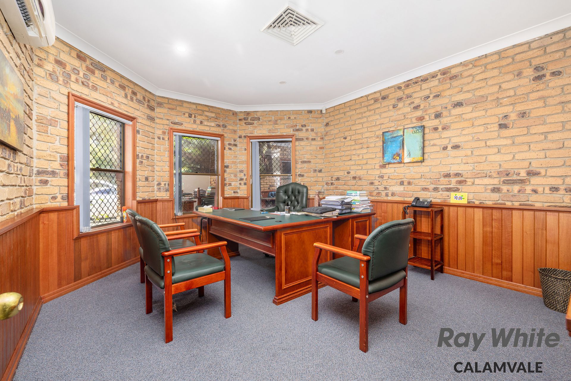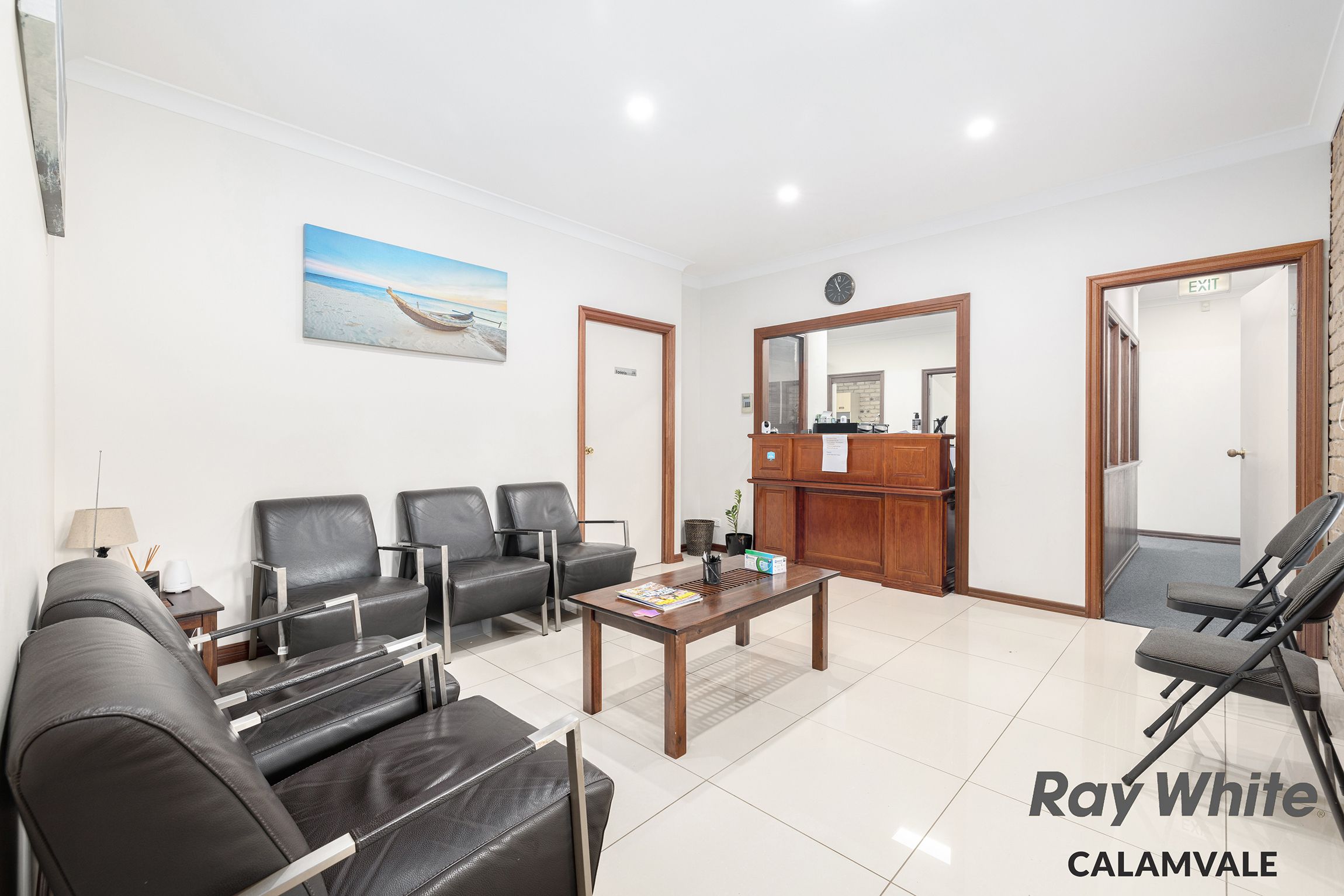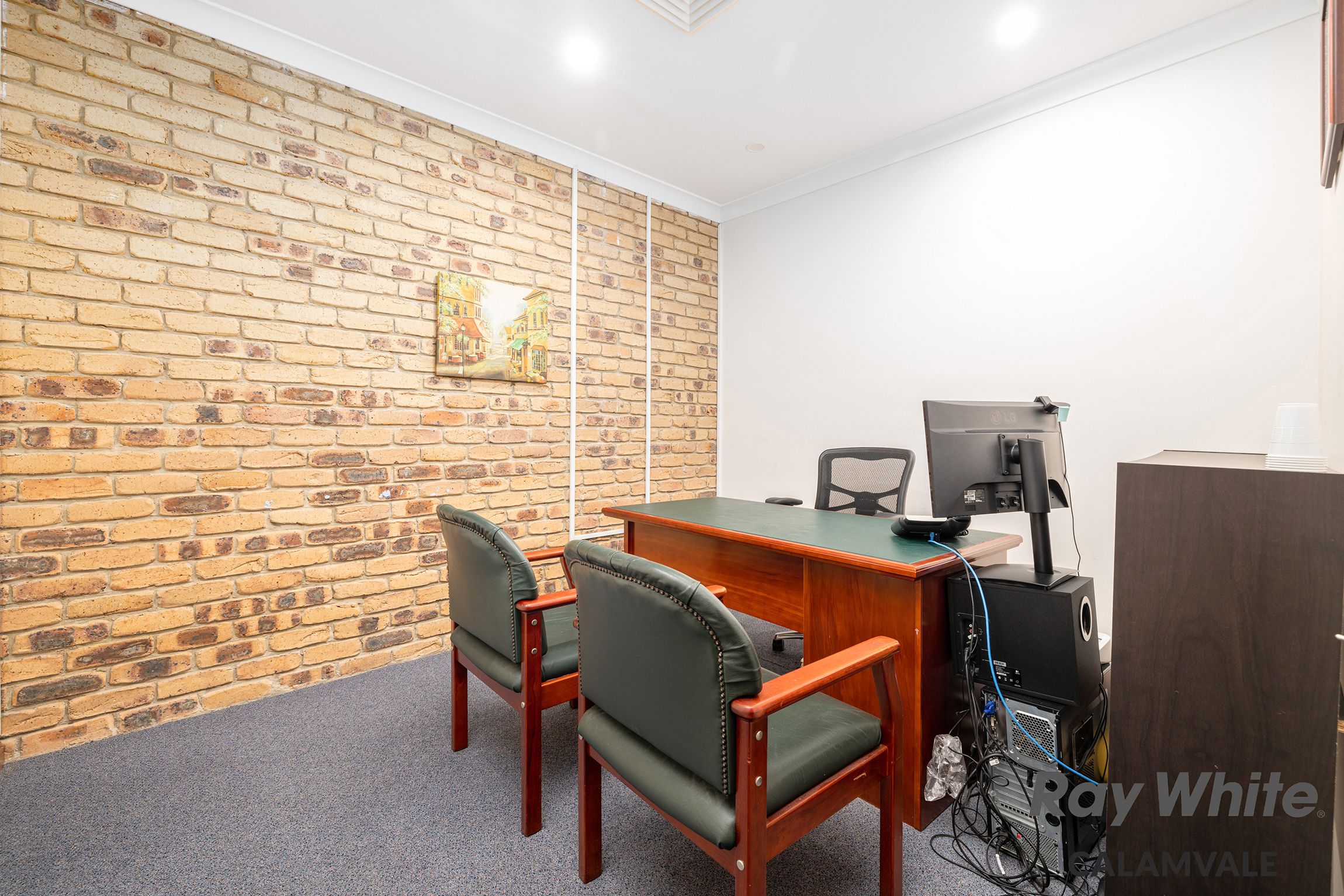 - Wide entry into significant forecourt offering accessible off-street visitor and staff parking - Approximately 208sqm building size, brick and tile construct - Welcoming reception and waiting room - Back of house office / storage room with kitchen facility - Customer amenities with three toilets and disabled bathroom - Two distinct and identical meeting rooms either end - Four additional separate office spaces - Extra lounge for customers or another office - Back covered courtyard area - Air conditioning, security screens, commercial flooring - Disable toilets facilities