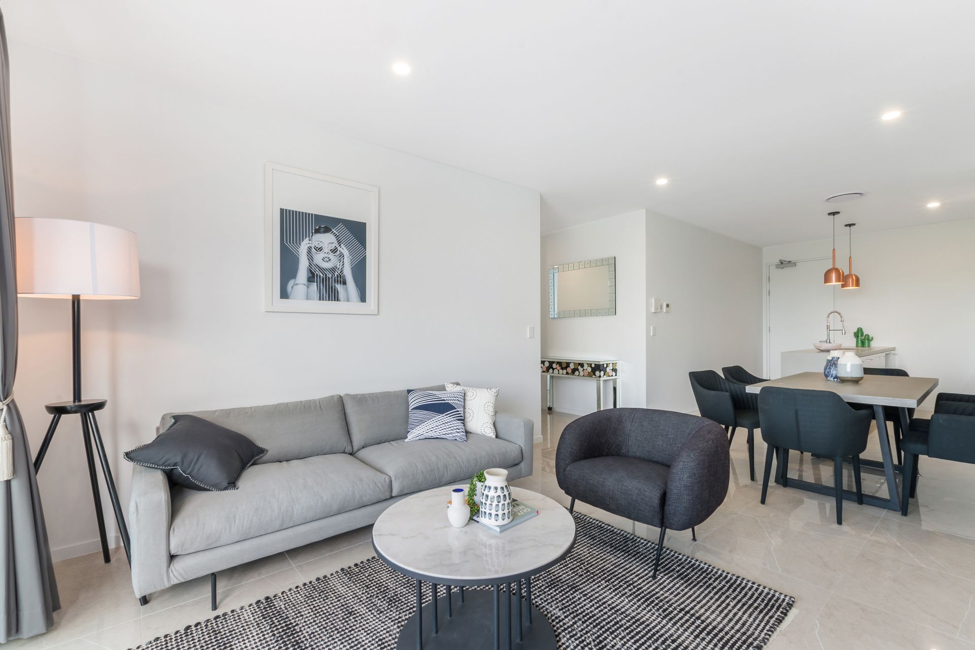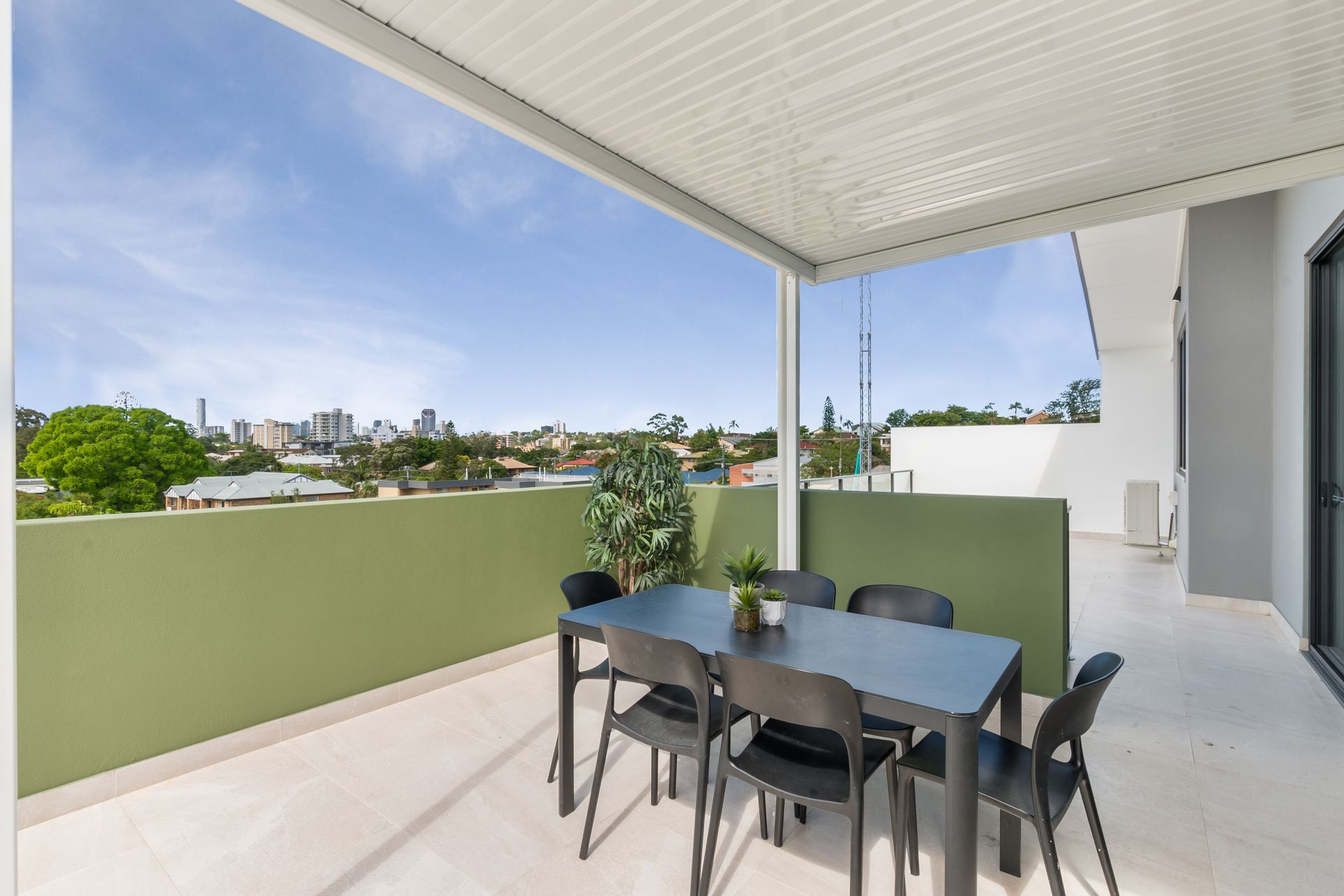 Unit 405 has a combined focus on style and outdoor living, featuring 2.8m ceilings, ducted air conditioning, quality kitchen featuring concrete-look stone tops and a selection of quality tiles and tap ware. Along with 68sqm of outdoor living overlooking Brisbane CBD skyline, entertaining will be enjoyable with a breathtaking backdrop.