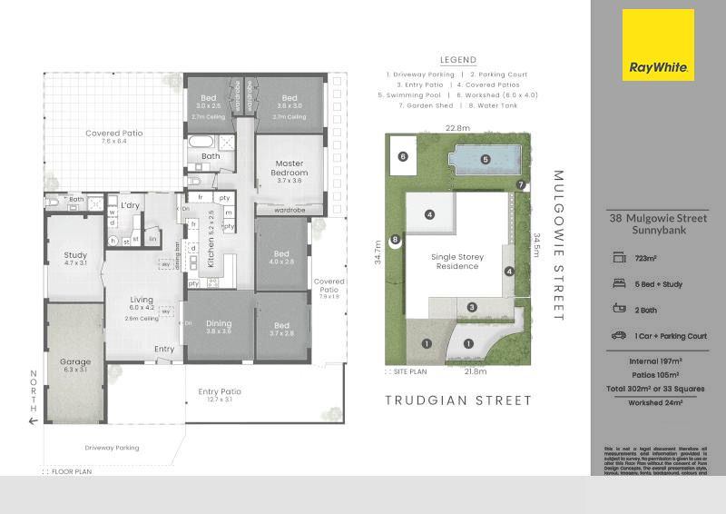 - Covered patio entry which wraps around to a private side courtyard area accessible by two of the bedrooms. - Massive rear covered entertainment area with privacy screening and lawn to extended back yard which is fully fenced. - Centrally placed kitchen with quality timber veneer cabinetry, fitted with appliances including dishwasher and bar-fridge. - A total of five bedrooms, three with built-ins - some with exposed brickwork. - Decent layout to main bathroom with separate toilet and additional bathroom with shower, vanity, and WC. - A generously sized independent office is tiled and painted. This quiet space could be converted to a playroom for kids or extra living area. - Single garage with internal entry - Massive rear storage shed with roller door. - Plenty of off-street carparking in the front yard which is paved/concreted - Gated side access, water tank and air conditioning