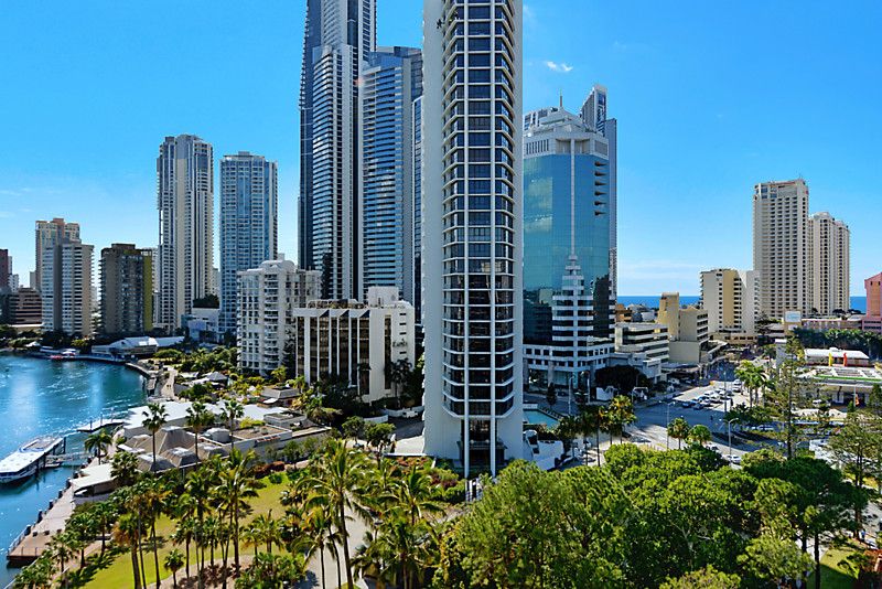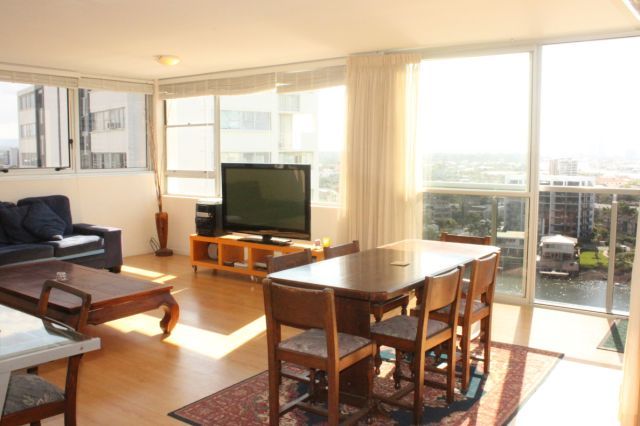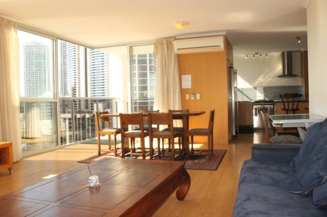 Beach: A short stroll to the beach Bedrooms: 2 Bathrooms: 2 Car Parks: Secure car parking Floor Height: 13th Level Aspect: North/East Size: 116m2 Views: Great River and Skyline Views Body Corporate: $115 per week approx Council Rates: $2,000 per annum approx Water Rates: $1,000 per annum approx Rental: $350 per week Furnished: Fully furnished Air-conditioning: Split system Facilities: Pool and bbq