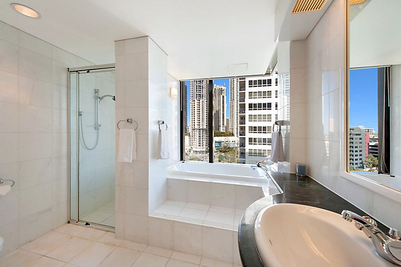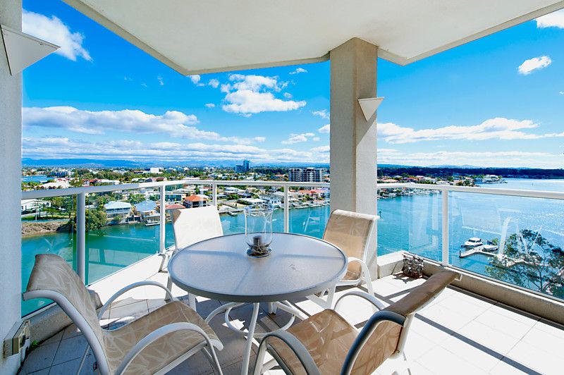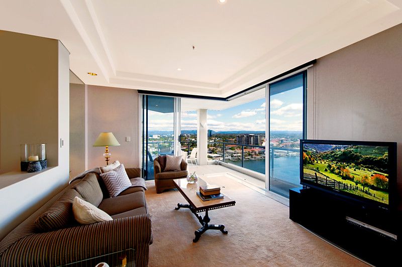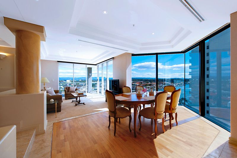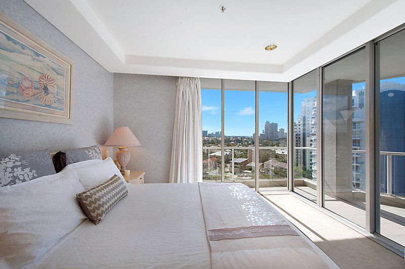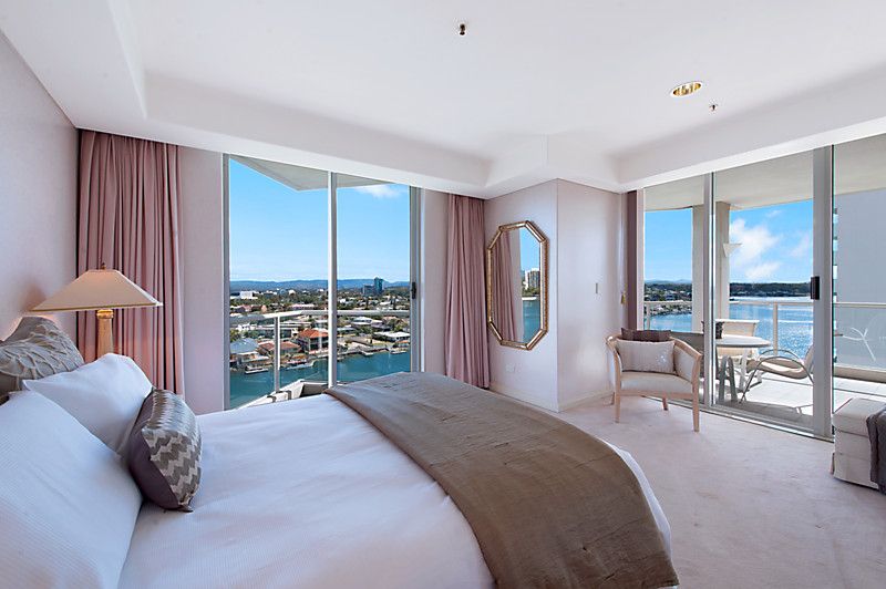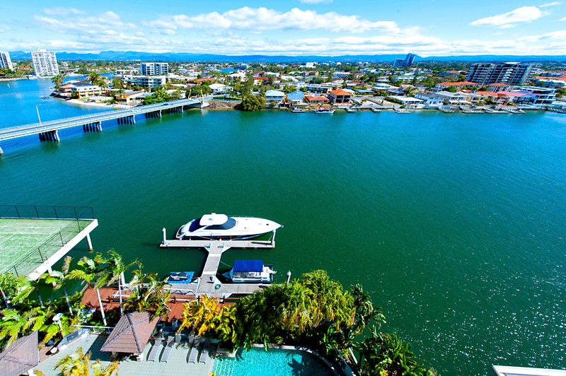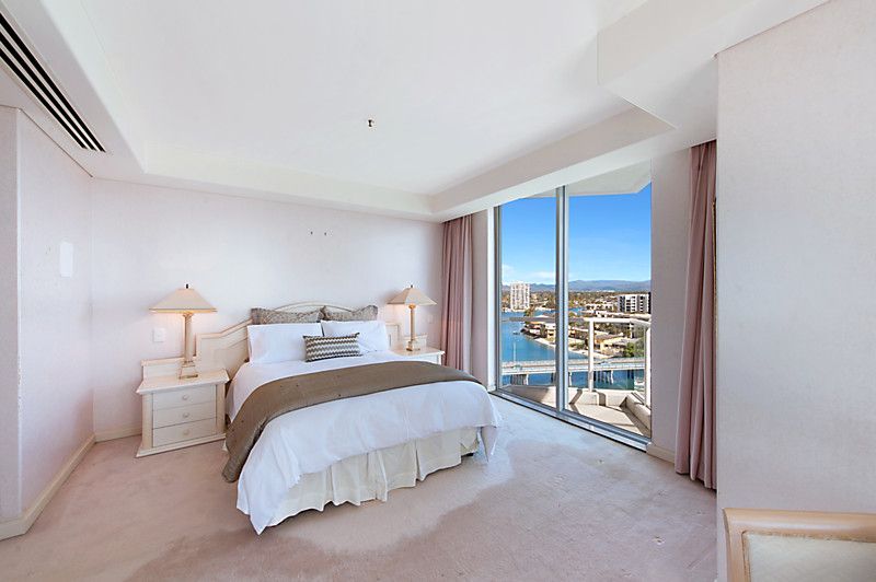 Don't miss this opportunity to secure the apartment occupying the entire 9th floor, located in the exclusive residential only Solitaire Riverside' in beautiful Budds Beach, Surfers Paradise. Our interstate sellers have owned since new, and now commitments dictate that it is time to sell. Enjoy the luxury and exclusivity of owning in this stunning residential only' boutique building, situated on the picturesque Nerang River, where you are just far enough away from Surfers for it to be paradise. Enjoying spectacular views encompassing the river, city and glimpses of the ocean this apartment offers a flowing open plan design, enjoying lots of light courtesy of the high ceilings and floor to ceiling glass. The three bedrooms all feature private balconies that capture views of either the river or city skyline. The master bedroom is well sized with an ensuite and walk in robe and balcony. High ceilings, floor to ceiling glass and natural finishes such as marble and parquet flooring all add to the liveability of this stunning property. Solitaire Riverside is a boutique residential only' building shared by only 18 apartments. The grounds are beautifully maintained as well as the 5 star facilities including gymnasium, sauna, spa and private lockers and marina, as well as beautifully designed Japanese themed gardens and pool.