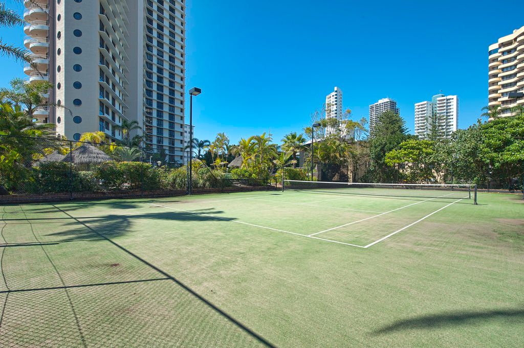 * Opposite the patrolled surf beach and a short walk to central Surfers Paradise or Broadbeach * Two spacious bedrooms, both with built-in robes * Two bathrooms * One underground security car space with plenty of visitor parking * Level 5 * North East / West / South West / South * Approx 125 square metres * Rates are approx $66 per week for investment property.(Rates will be reduced for owner occupier / holiday home) * 1st class resort facilities including 2 tennis courts, indoor and outdoor pools, BBQ areas, gym, sauna, spa