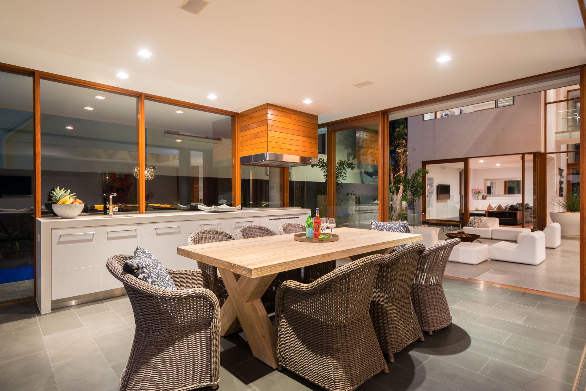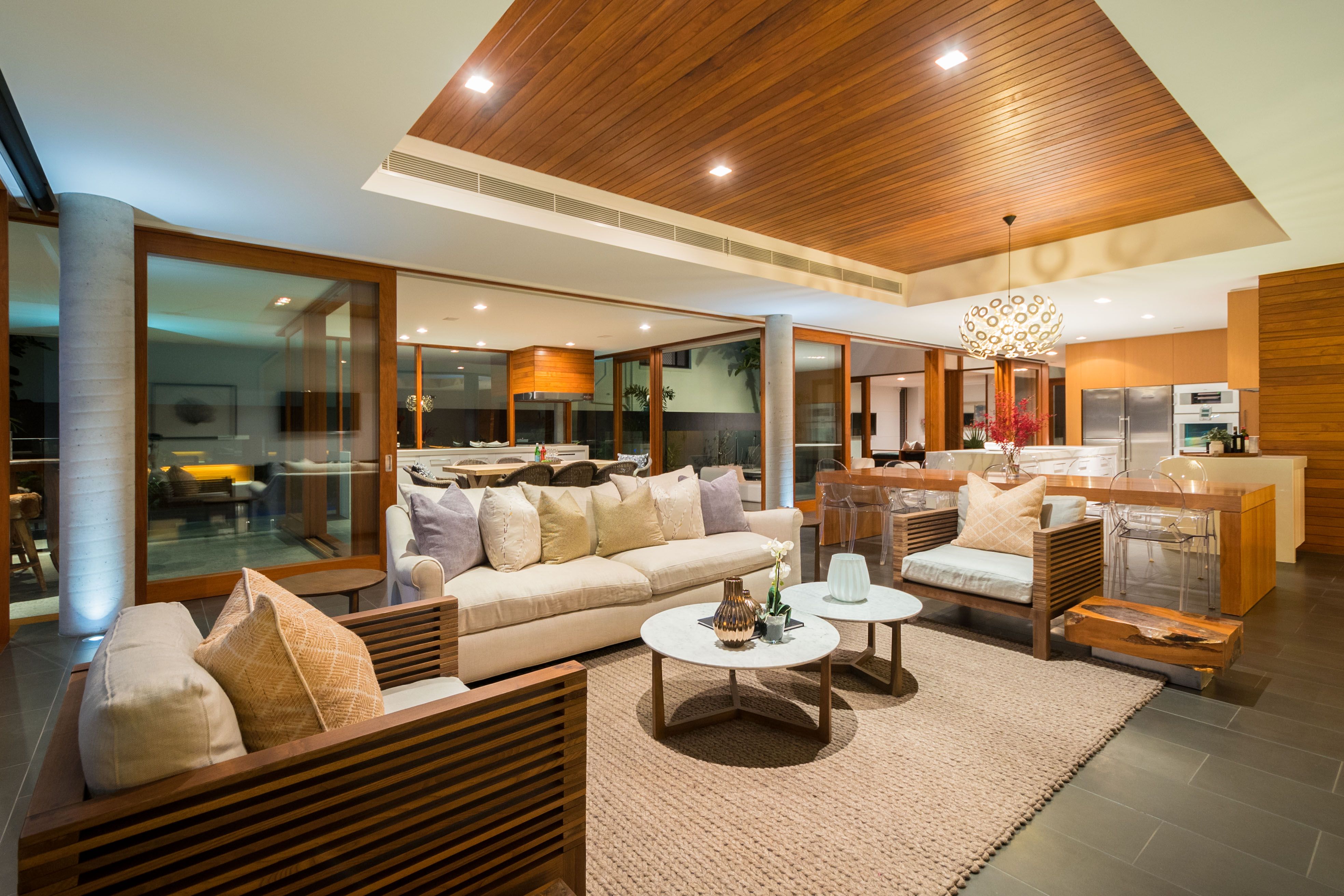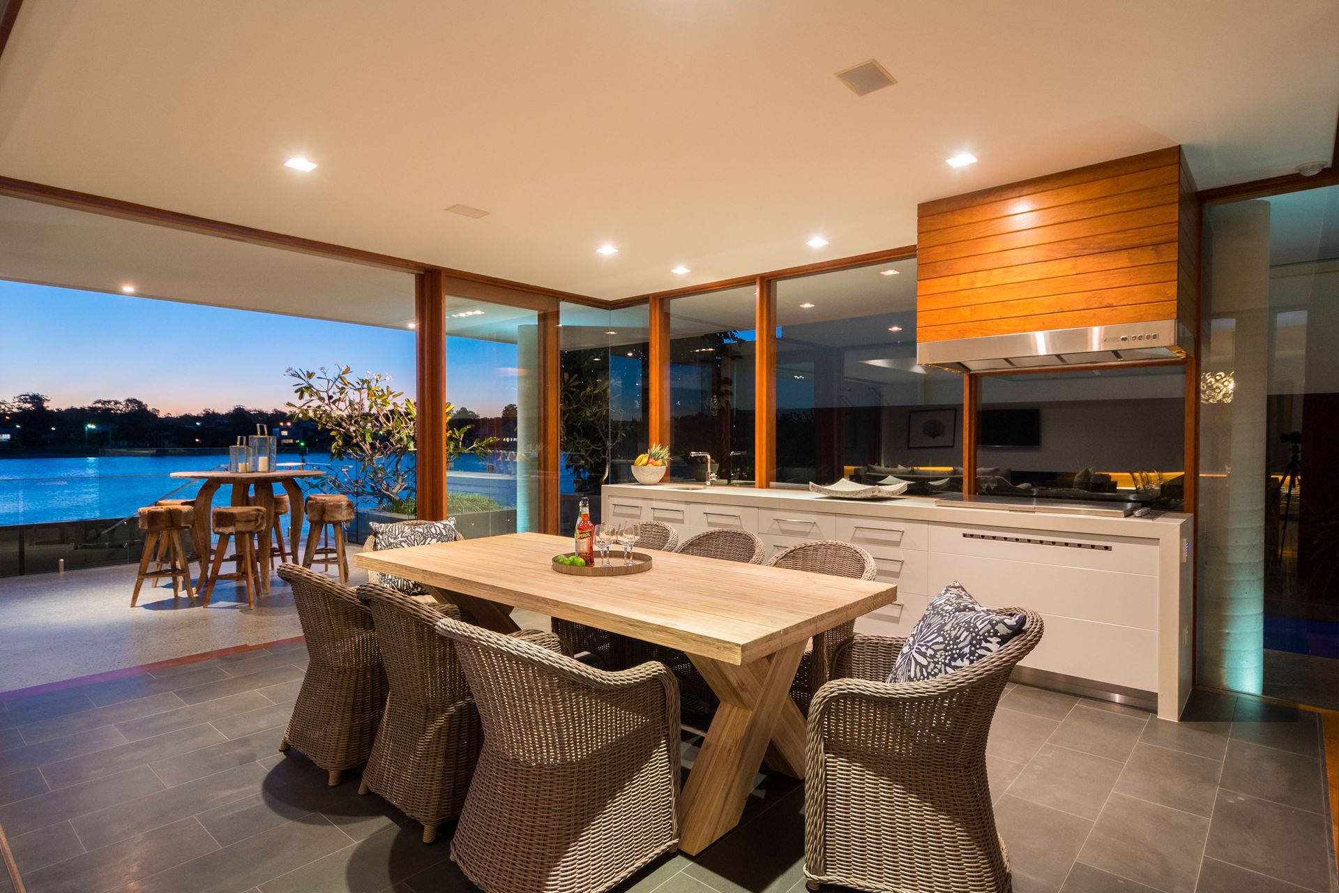 Expect to be the envy of everyone when you entertain in your deluxe kitchen, with its vast marble island bench and splashback and stainless steel appliances including the acclaimed Gaggenau oven plus steam oven and wine fridge. There is also a large butler's pantry with a dual sink and a vast space for appliances. You'll then be spoilt for choice whether to host your guests in the adjacent open plan dining and living, with its contemporary gas fireplace, leading to the deck with wide water views or perhaps the covered alfresco entertaining area, with its superior outdoor kitchen, nestled next to the inviting 17m lap pool.