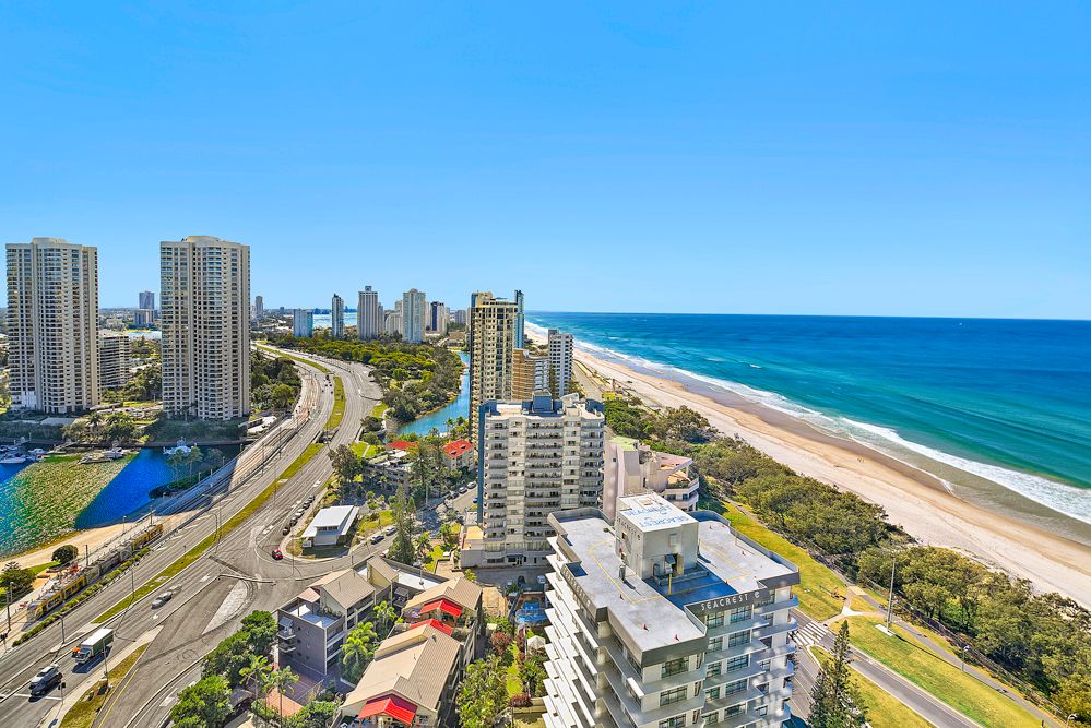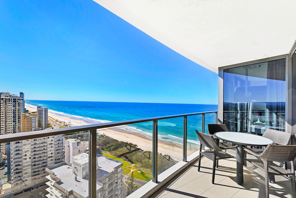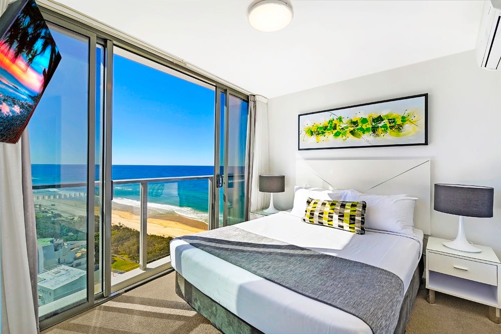 . A few steps to the Surf Beach . 2 tram stops to the nightlife & shopping Orchid Avenue in Surfers Paradise . Breathtaking views to the North, North East & East to the ocean from the bedroom/balcony/living area . Stunning hinterland view from the dining/kitchen area & balcony . Fully furnished . Air conditioning . Double glazed sliding doors/windows . North East facing balcony perfect for the afternoon sun . Swimming pool, spa, BBQ terrace . Level 27 exclusive residents 'facilities floor', gymnasium, residents lounge overlooking the ocean . The rooftop, level 41, offers a truly unique experience for the exclusive use of residents/ A sky deck communal market garden & private relaxation terraces that offer spectacular ocean views . Perfect view of Gold Coast Car Races 600 . G-Link Train near by
