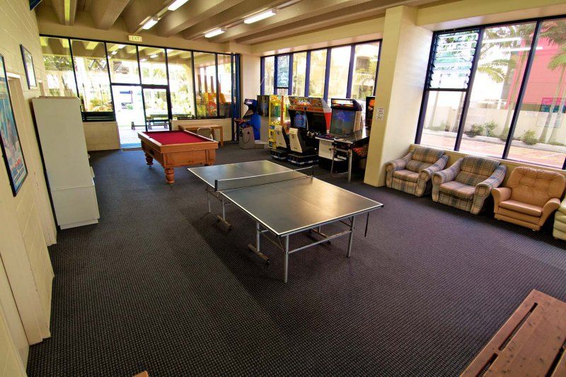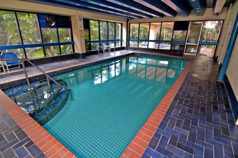 Facilities include Lagoon-style Pool, Heated Indoor Pool & Sundeck Pool, Spa & Sauna, Half-size Tennis Court, Large Undercover BBQ area, Games Room, Tropical Garden.
