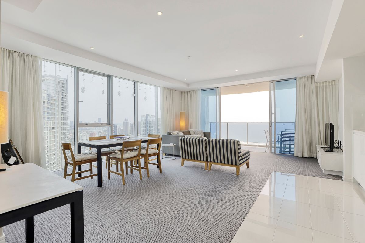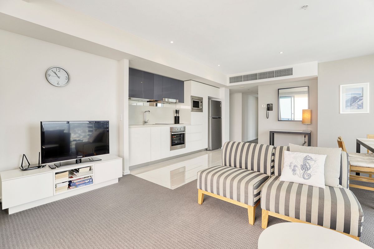 * Fully furnished with designer furniture and fittings * 2 bedrooms both with built in robes * 2 bathrooms including ensuite to master bedroom * Open plan lounge and dining areas which opens up to a large entertainers balcony with ocean views. * Full kitchen featuring high-quality stainless steel appliances * Ducted air conditioning * Resort facilities include pools, spas, restaurants, cafes, shops and much more