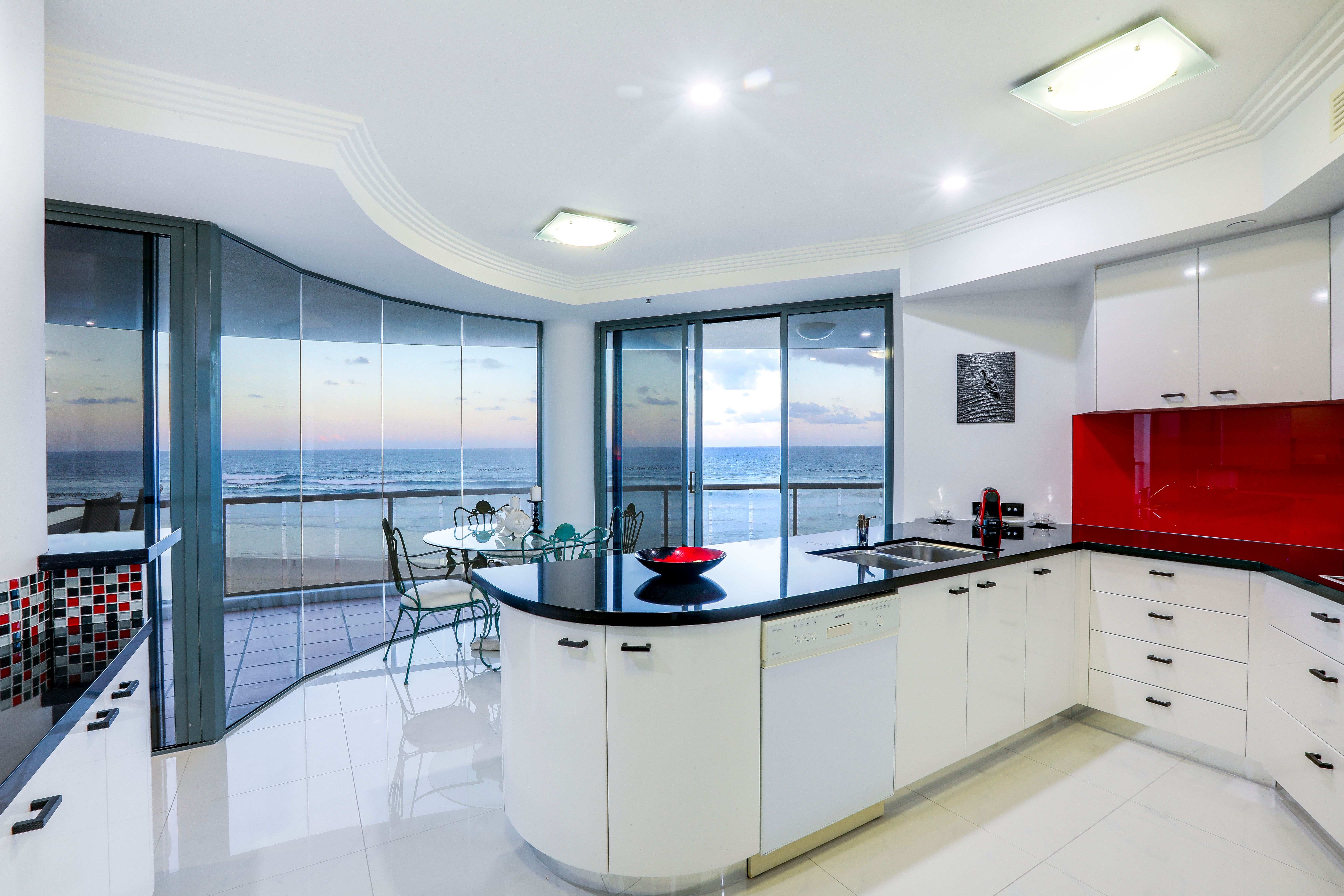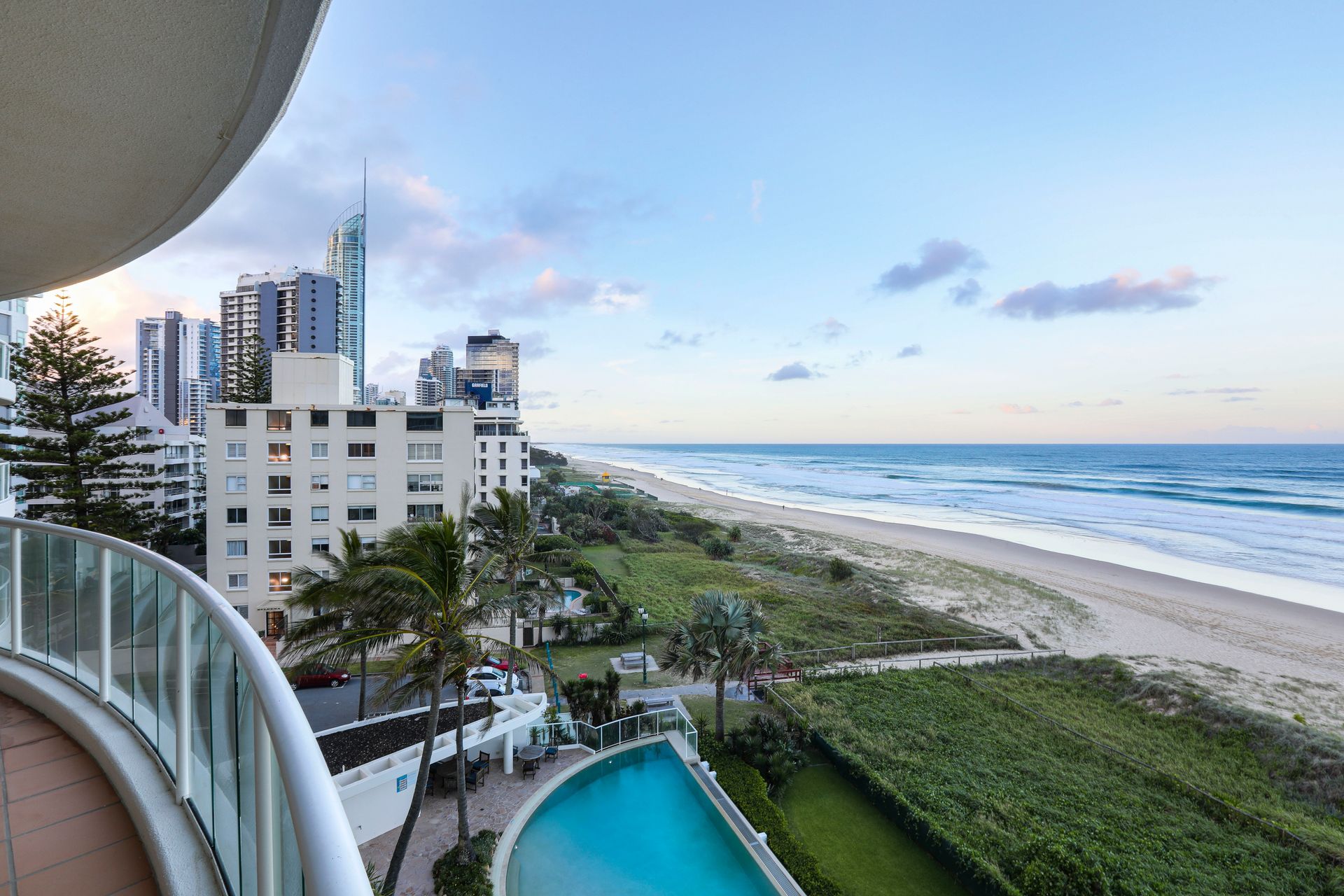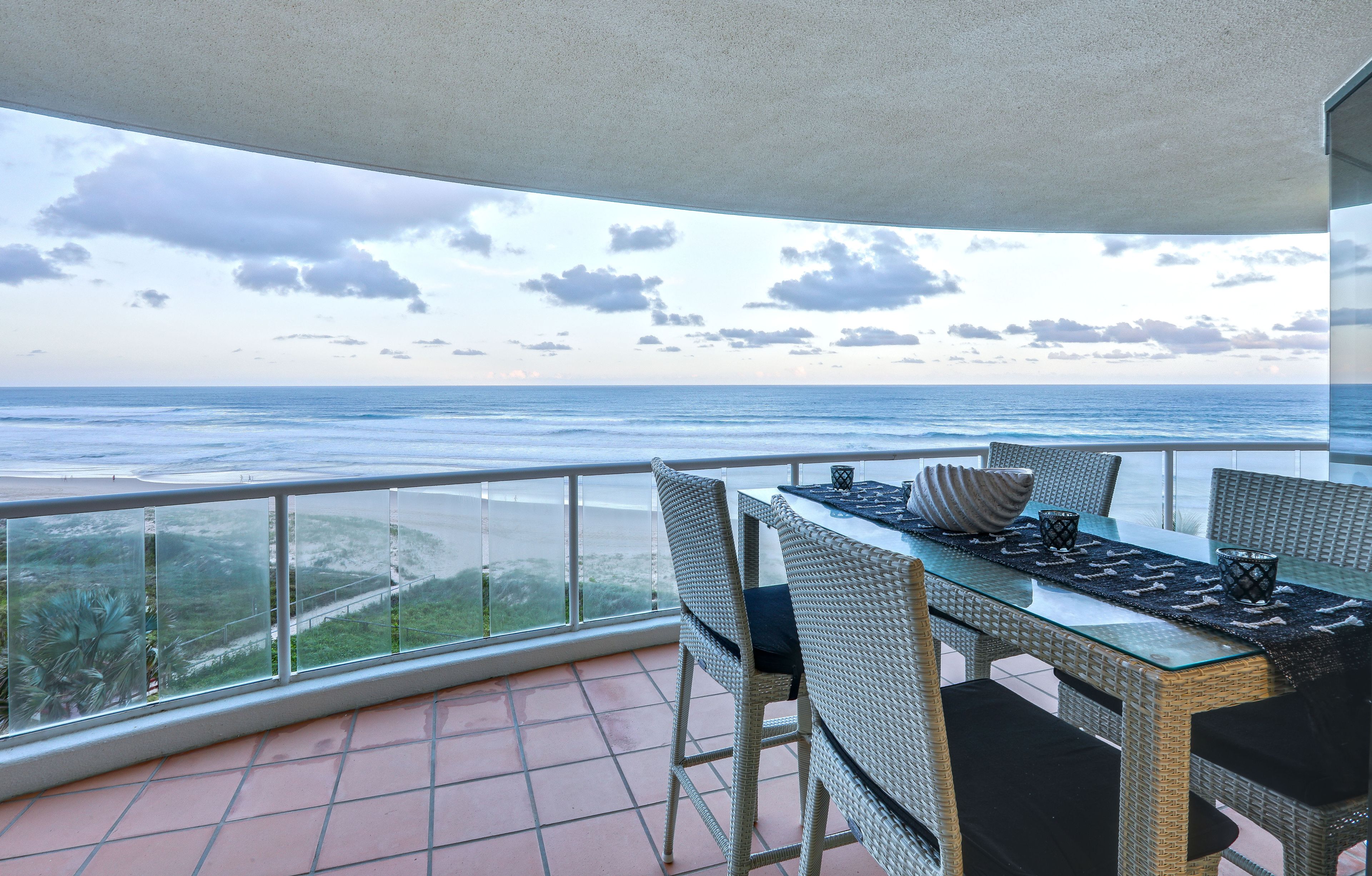 This very spacious, well laid out apartment has a perfect 180 degree panorama of the beach and ocean, from Coolangatta to Q1 and is within metres of the Northcliffe Surf Club and the new 'Jewel' resort complex.