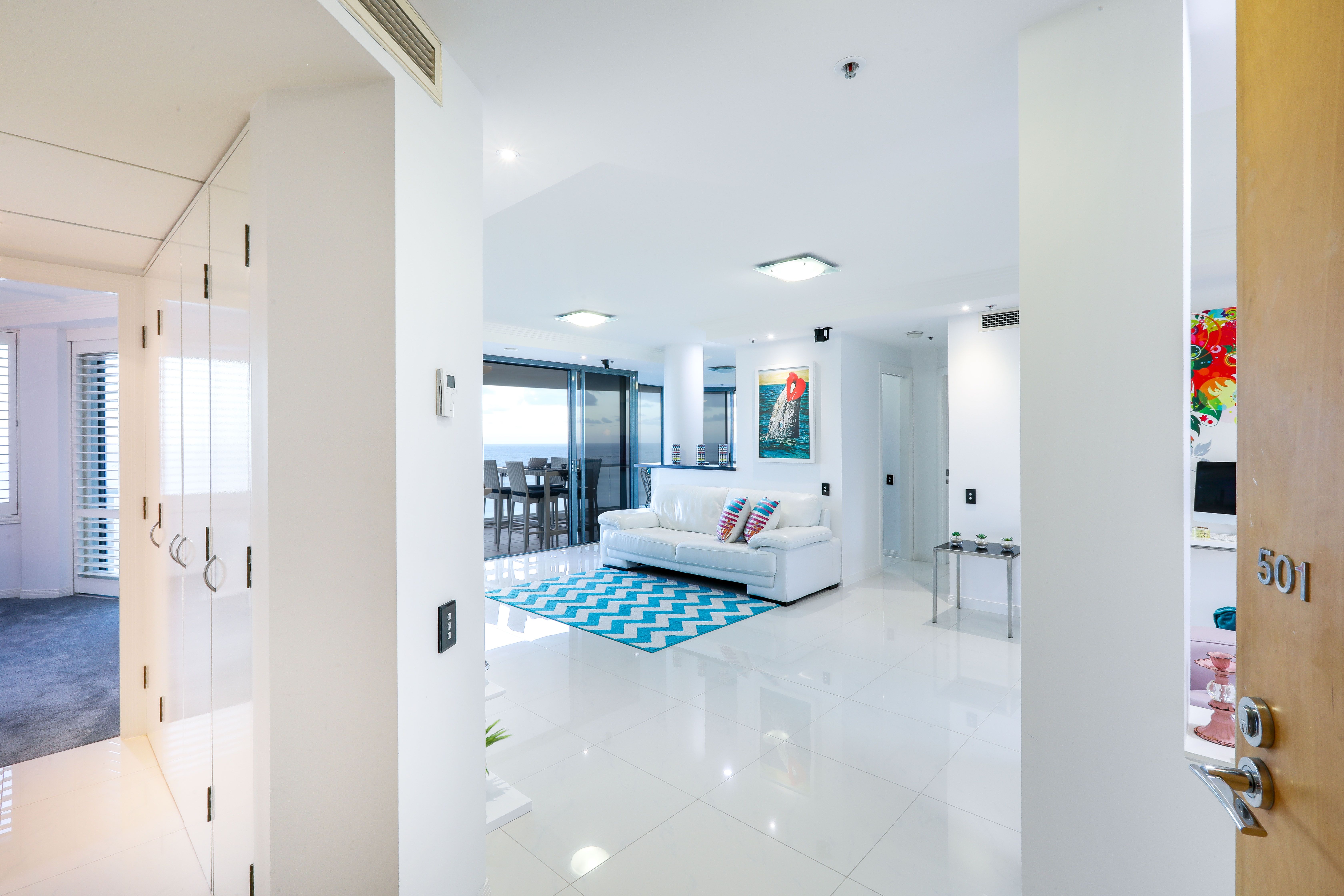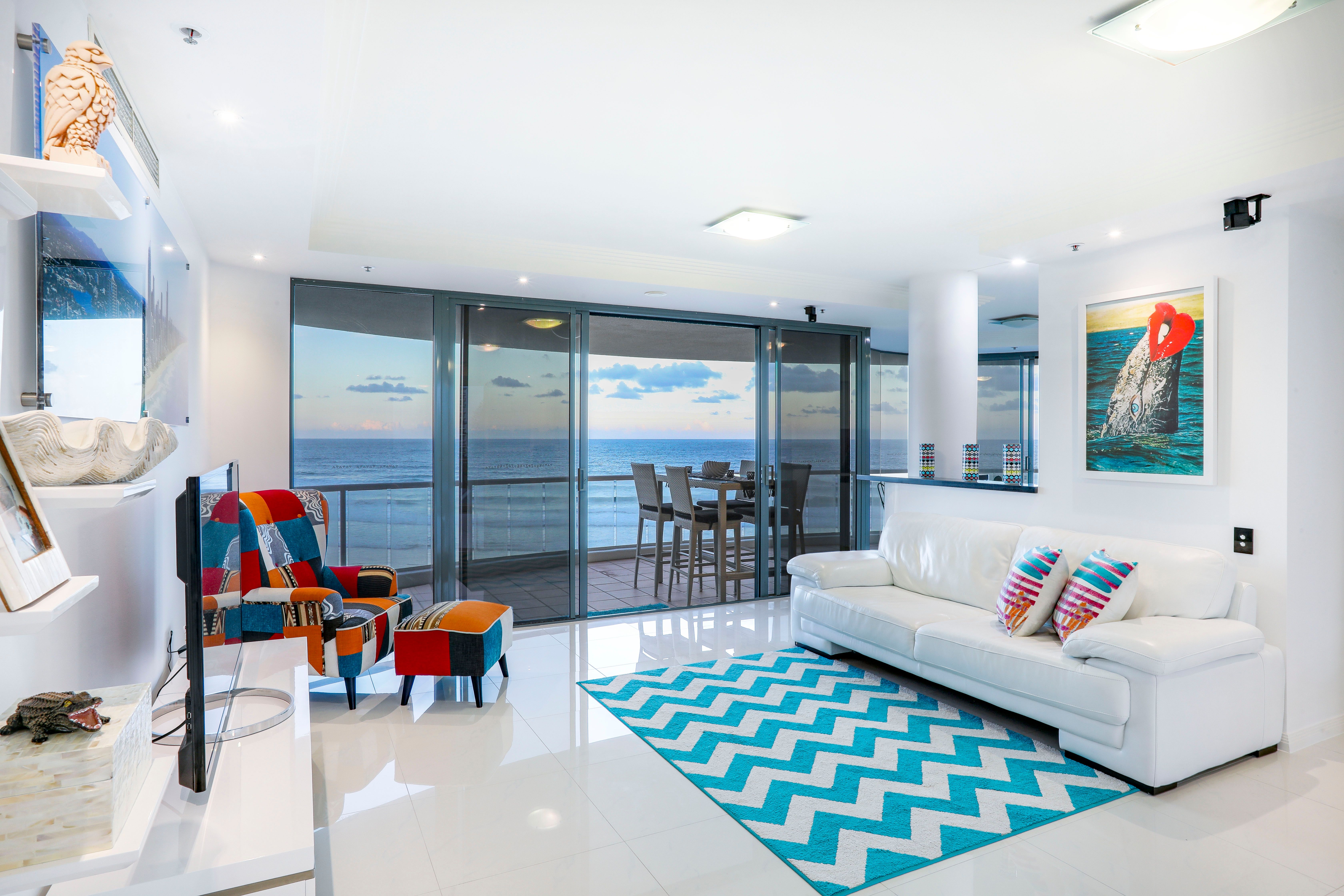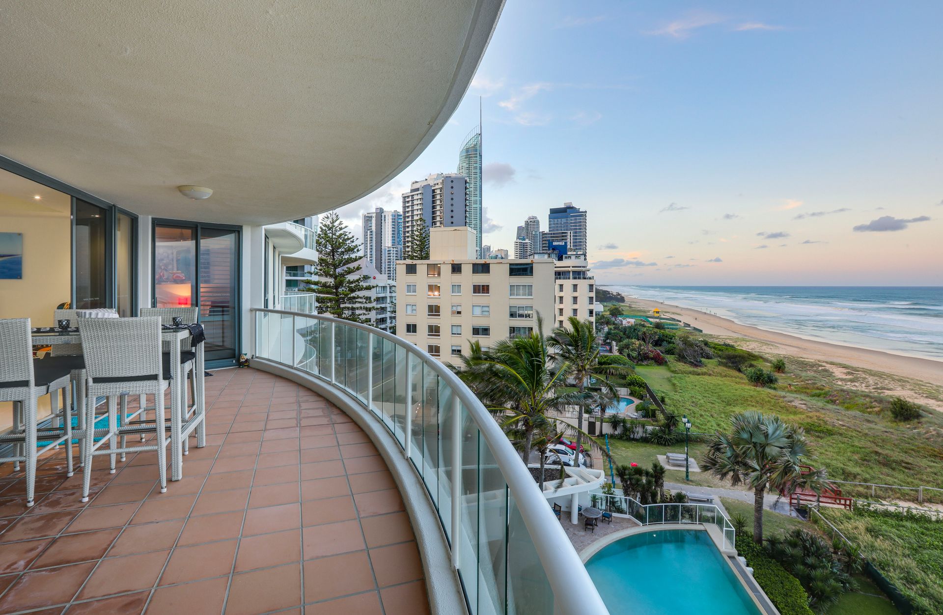 This very spacious, well laid out apartment has a perfect 180 degree panorama of the beach and ocean, from Coolangatta to Q1 and is within metres of the Northcliffe Surf Club and the new 'Jewel' resort complex.