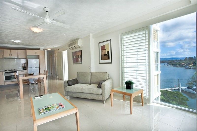 Riverside apartments in The Pinnacle are prime property. They are suspended over Main River and have sensational North facing water and skyline views. This comfortable, fully furnished and well appointed apartment has a bright and sunny feel about it.
