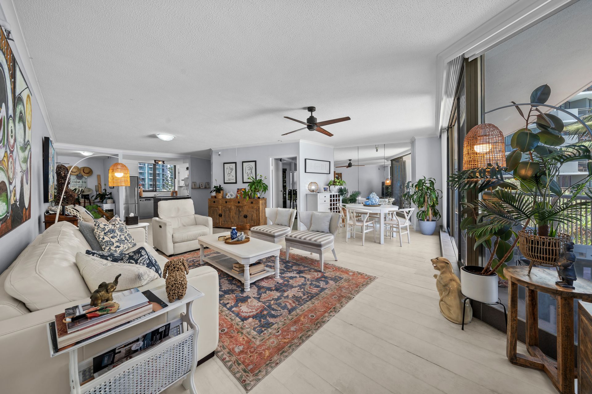 From the moment you step inside, the apartment feels bright and welcoming. The open-plan living and dining zone is filled with natural light and connects straight to the balcony through floor-to-ceiling sliding doors, creating a relaxed indoor-outdoor flow. The recently updated kitchen is both practical and stylish, offering generous cupboard space, brand-new modern appliances, ideal for everyday cooking or entertaining.