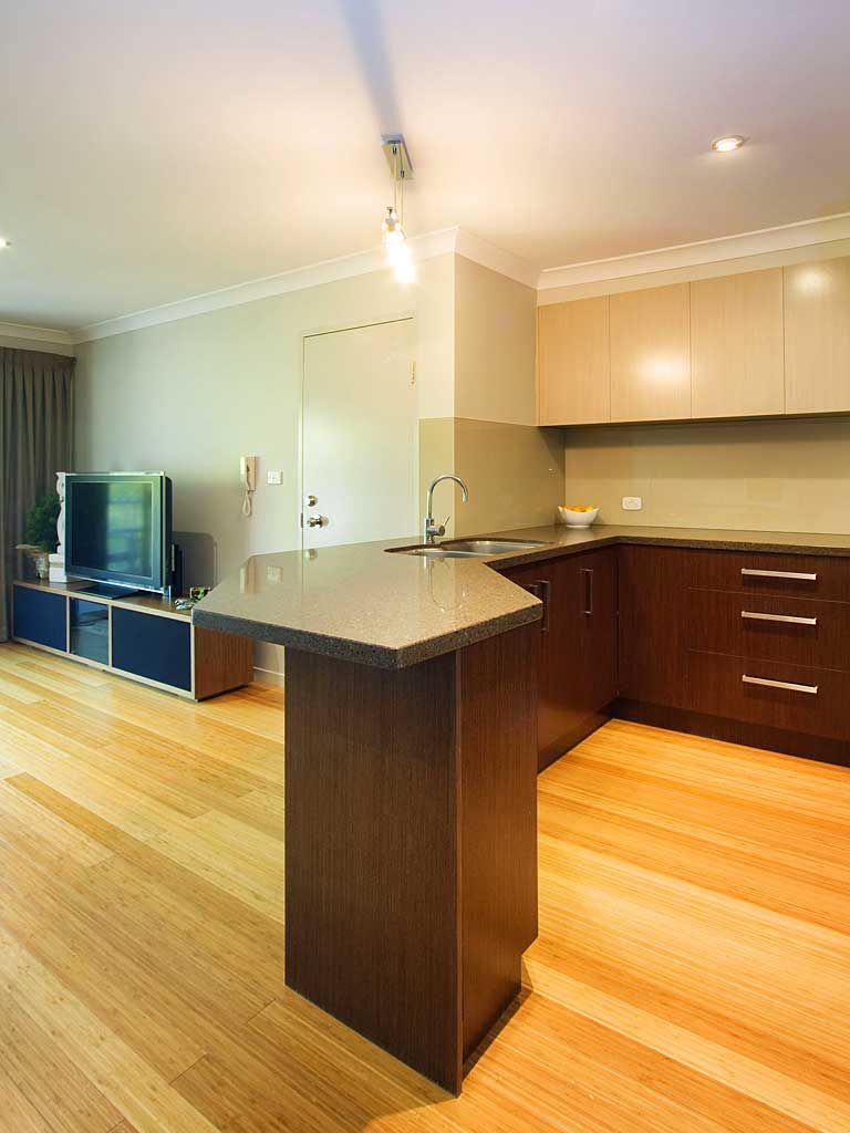 Granite bench tops, glass splash backs and quality appliances Bamboo flooring in main living rooms, carpet in bedrooms Bar fridge and built in BBQ on balcony Down lights and ceiling fans in all rooms Master bedroom with hotel style ensuite In ground pool and BBQ area 2 bedrooms and 2 bathrooms Secure underground parking Low Body Corporate