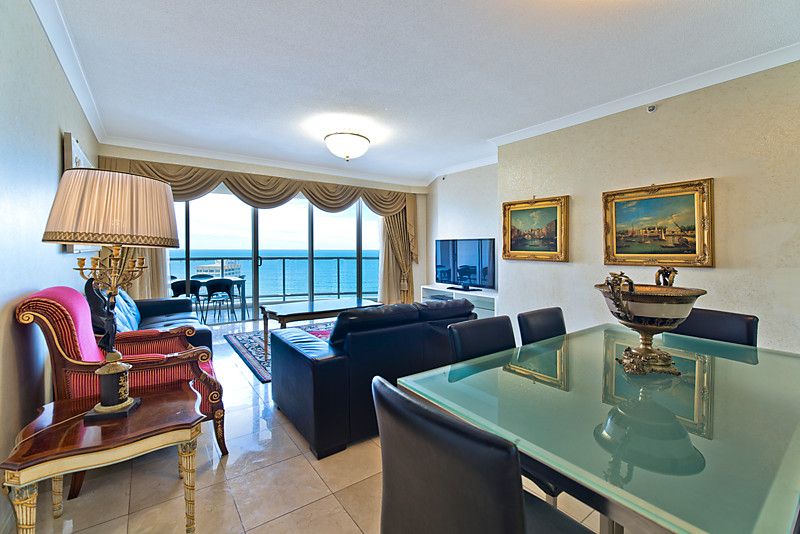 Located on a high floor, you will see amazing ocean and city views. It is perfectly positioned East so that you look directly into the ocean. Throughout the unit, you will notice the open plan design. The gourmet kitchen is large and tastefully done with granite bench tops and Stainless Steel appliances. All throughout the living room it has tiled floors, and the living and dining rooms open up into the large balcony with amazing views out to the ocean and city.