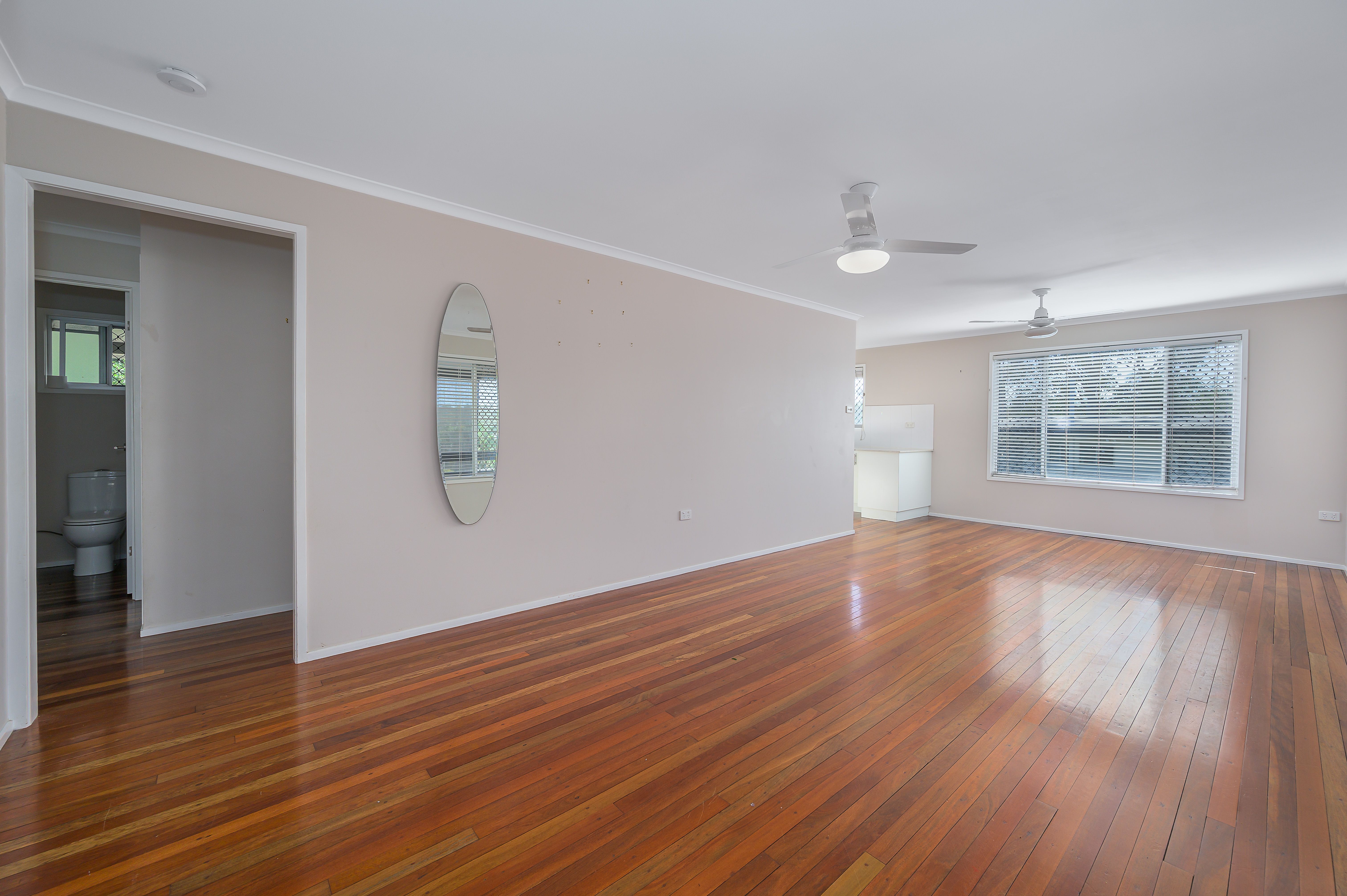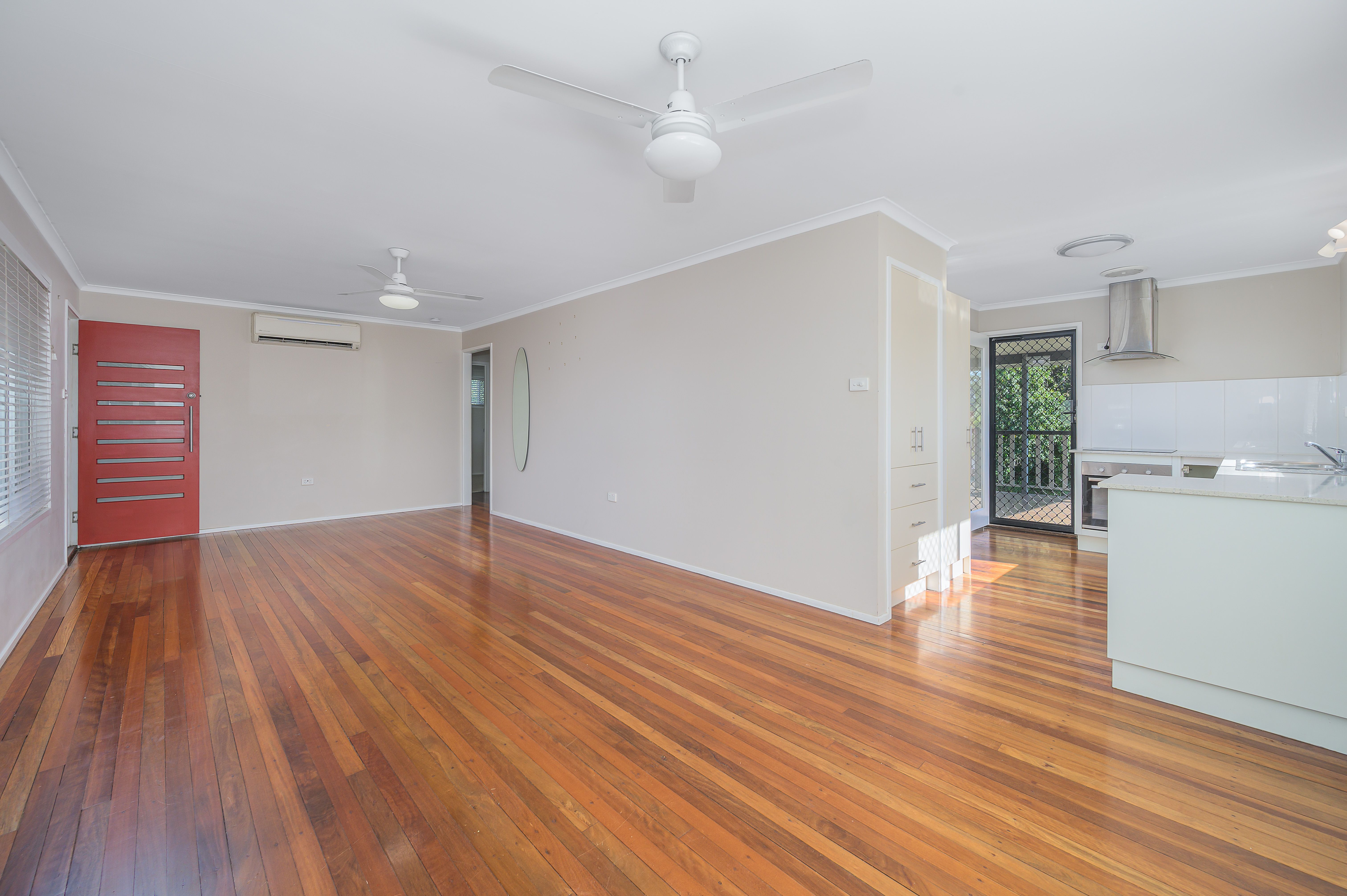 As you walk in through the front door, you are greeted by the gorgeous timber floorboards that flow throughout the space and the enormous open plan family room / dining room. From this room you can walk to the left through to the 3 bedrooms all equipped with built in wardrobes and ceiling fans along with the family bathroom facilities.