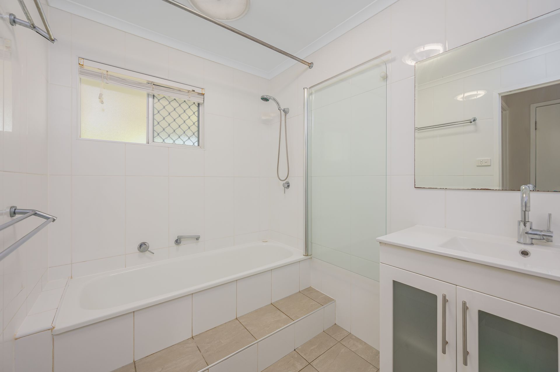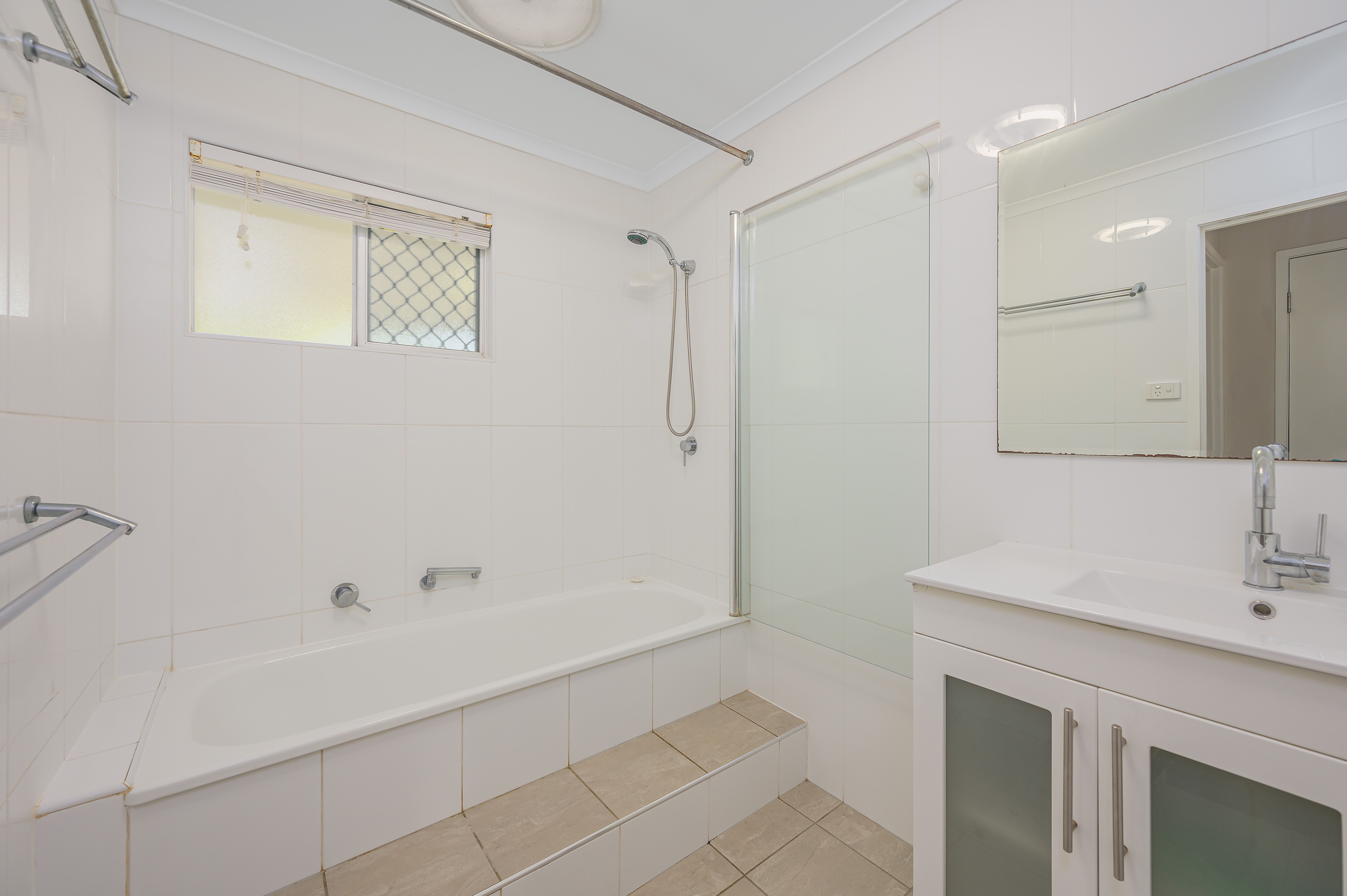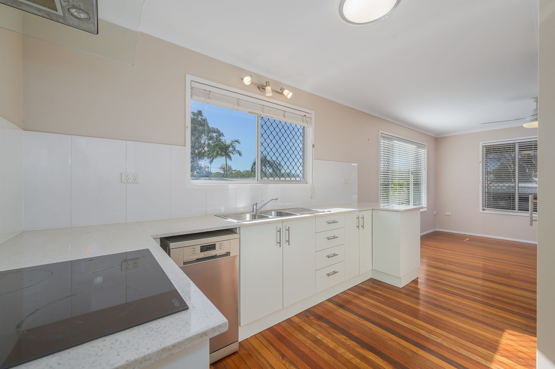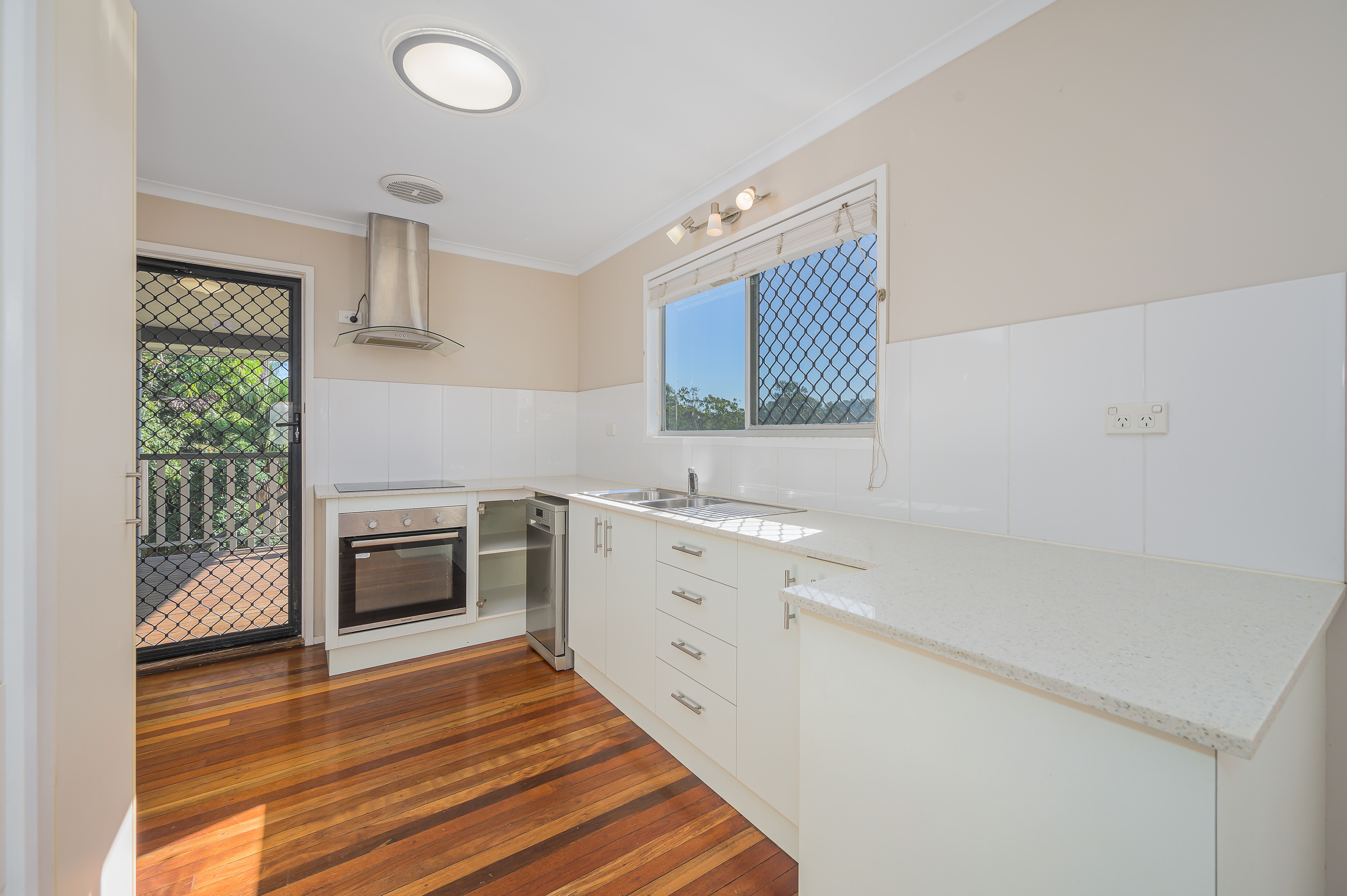 The kitchen has been renovated and looks brand new. With a pantry, large fridge space and a double sink, stone benches, electric oven and hot plates this galley kitchen is stylish and functional.