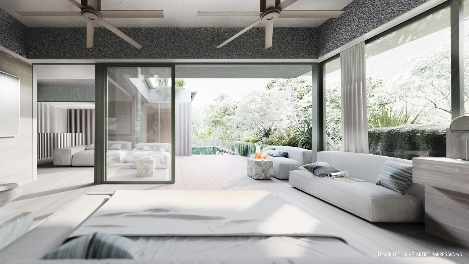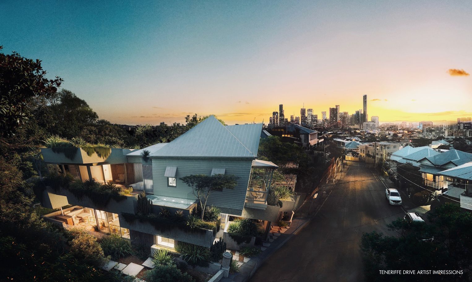 With a commanding northerly aspect atop Teneriffe Hill and backing onto the exclusive Teneriffe Park, this property is complimented by expansive city and district views and an unmatched sense of space and privacy.