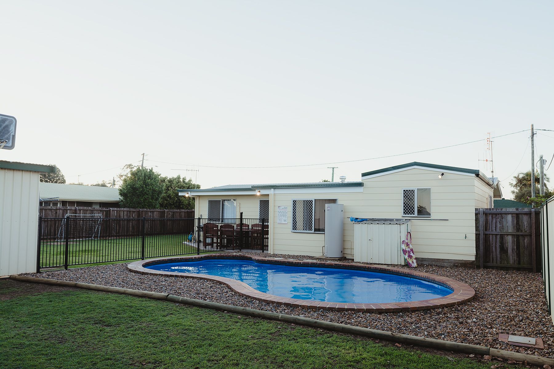 The property is landscaped with lawns to the front and back yards and a large family in-ground swimming pool. The property has a carport to the front of the property and an additional 3 bay shed at the rear of the property with double gate access from the front. The property borders playing/sports fields and there is back gate access to these fields which is great for kids, and pets.