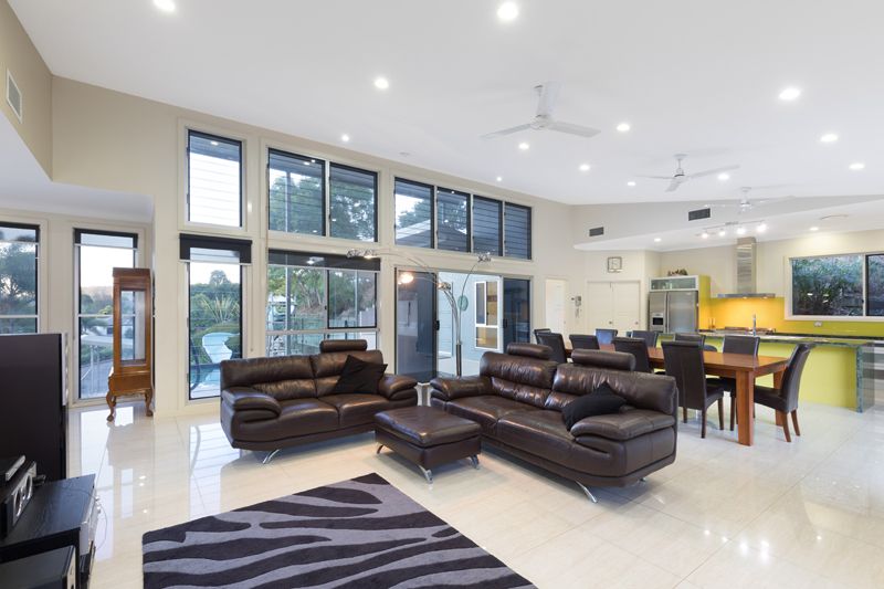 This large architect designed contemporary residence can accommodate a large family and guests as well. The main residence which has been specially designed for winter sun and summer shade, is built over two levels and comprises of 6 bedrooms, including a large master suite, 4 bathrooms, extra large living areas which flows out to covered outdoor entertaining areas, plunge pool with water slide and a 15 metre lap pool. The huge covered deck overlooks the large picturesque dam and jetty surrounded by a variety of pine and native trees and stocked with silver perch. The dam is also a playground for a variety of bird life.