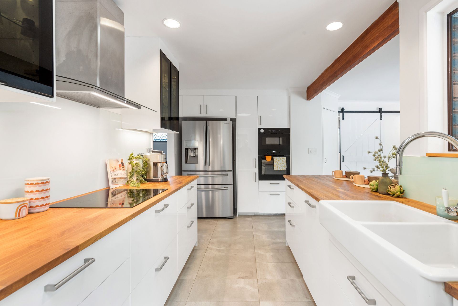 • Central gourmet timber & glass new kitchen with induction cooktop, integrated dishwasher, wall mounted oven & microwave, abundant storage and a large pantry is a dream for the chef in the family