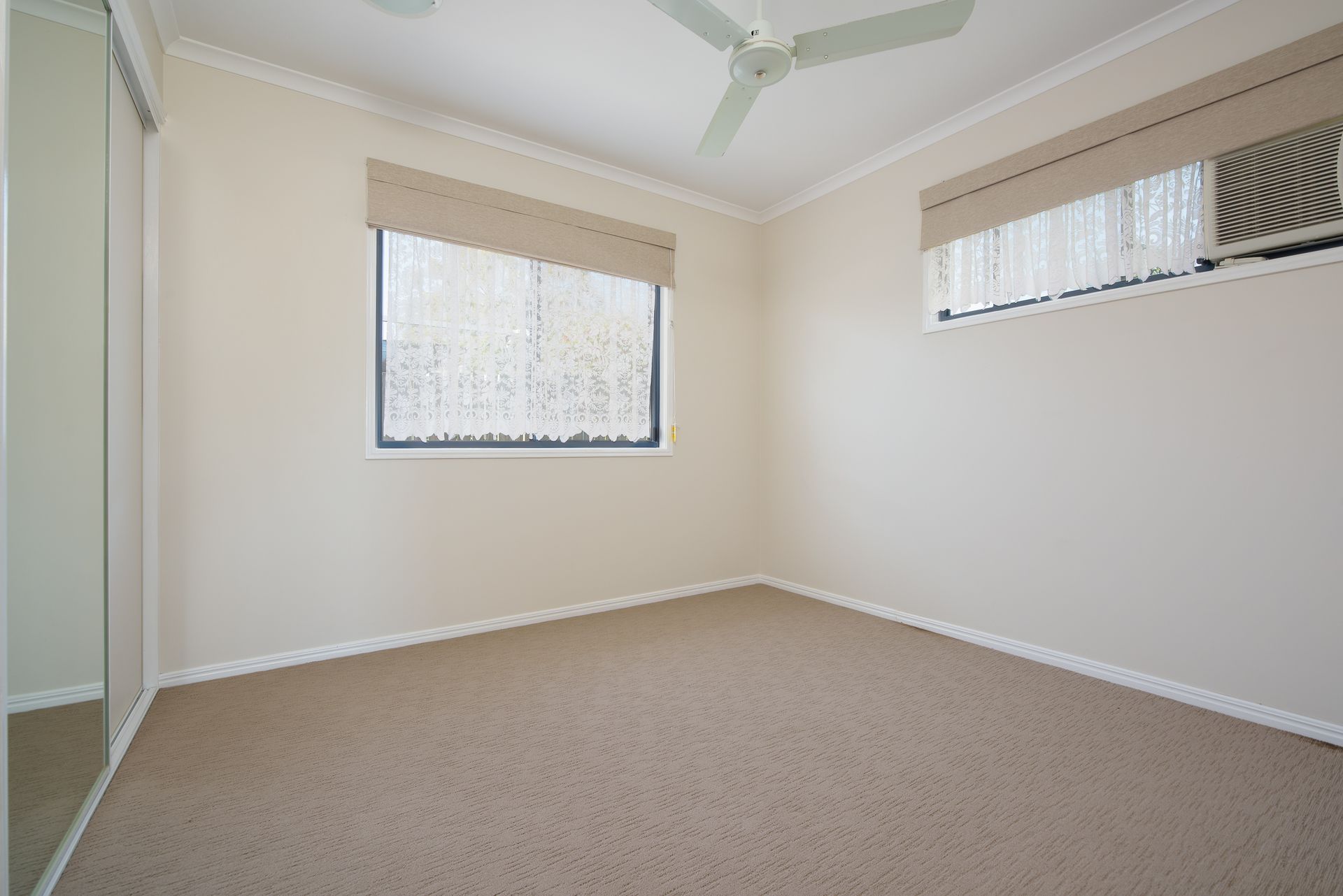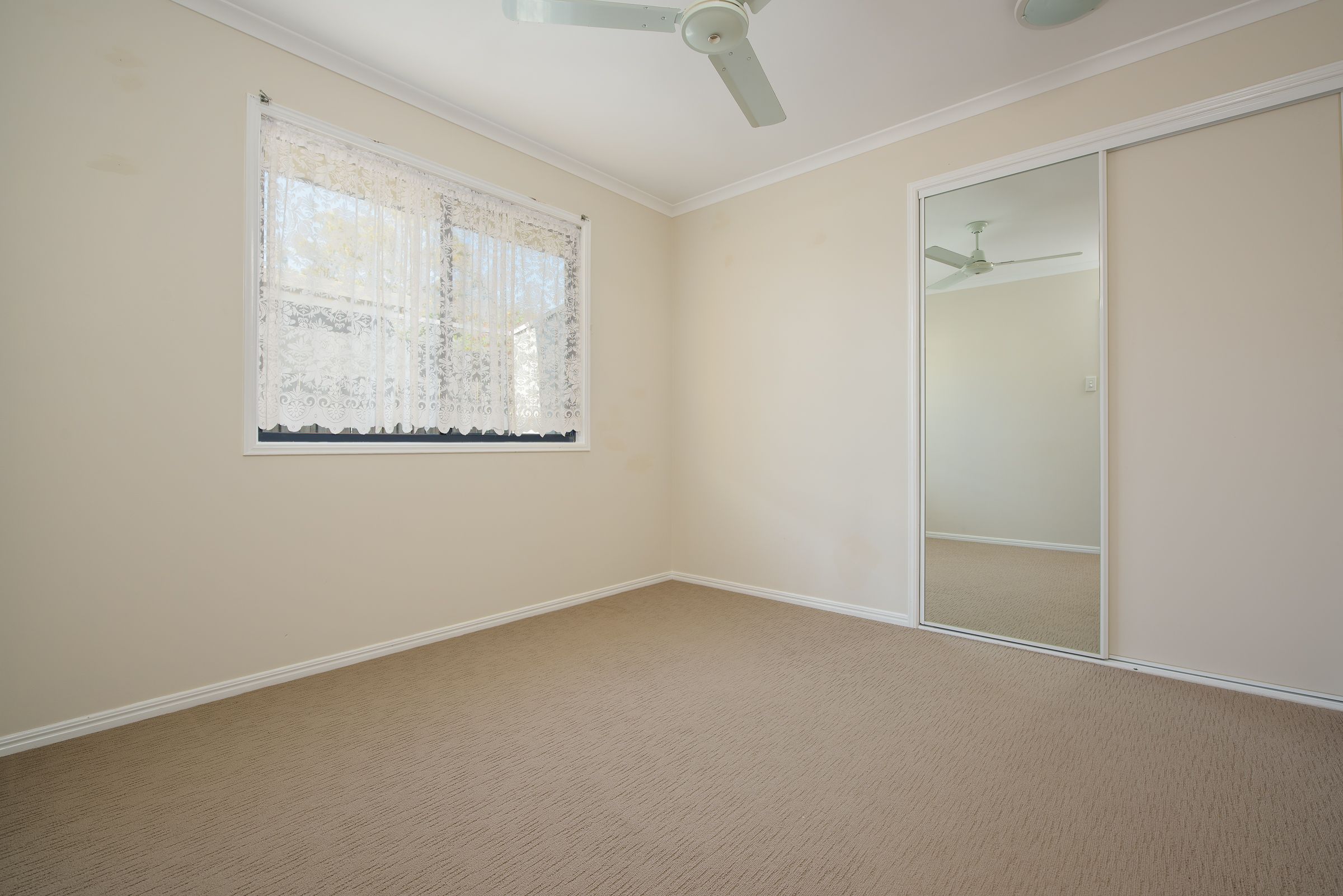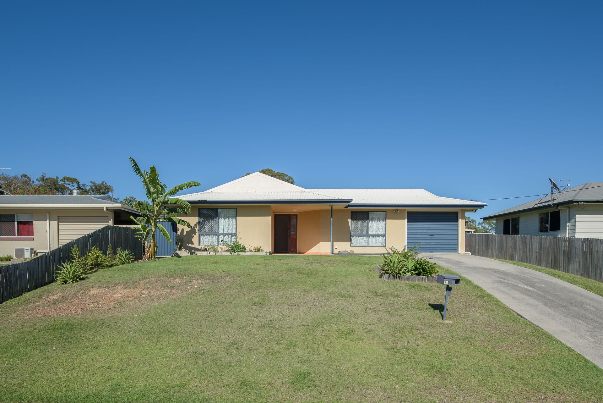 This home comprises 3 bedrooms, 1 bathroom and a 1 bay garage. The master bedroom of this property is fitted with a split system air con, a built-in wardrobe and direct access to the bathroom. The remaining 2 bedrooms of this property include built in wardrobes, and wall air conditioners.