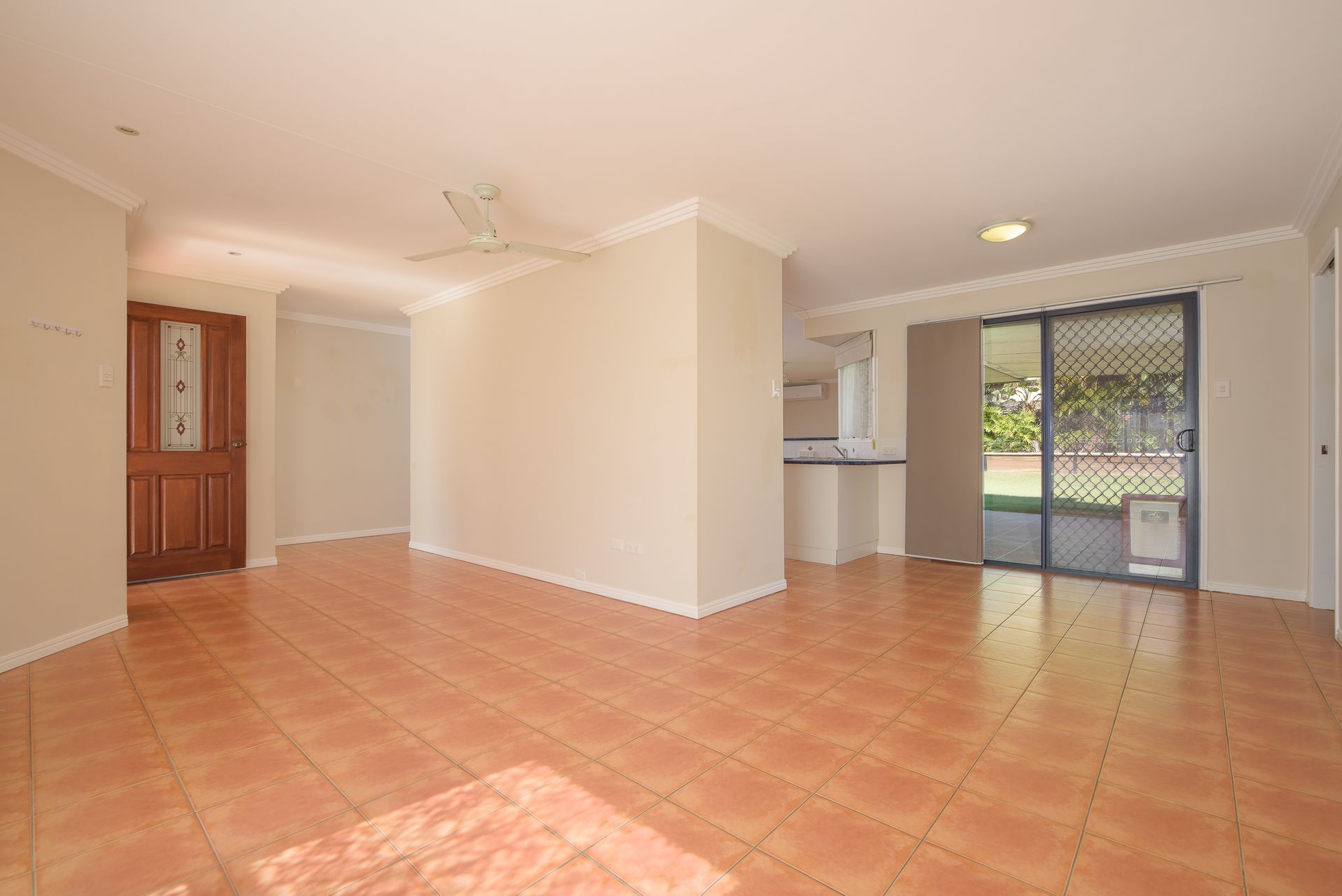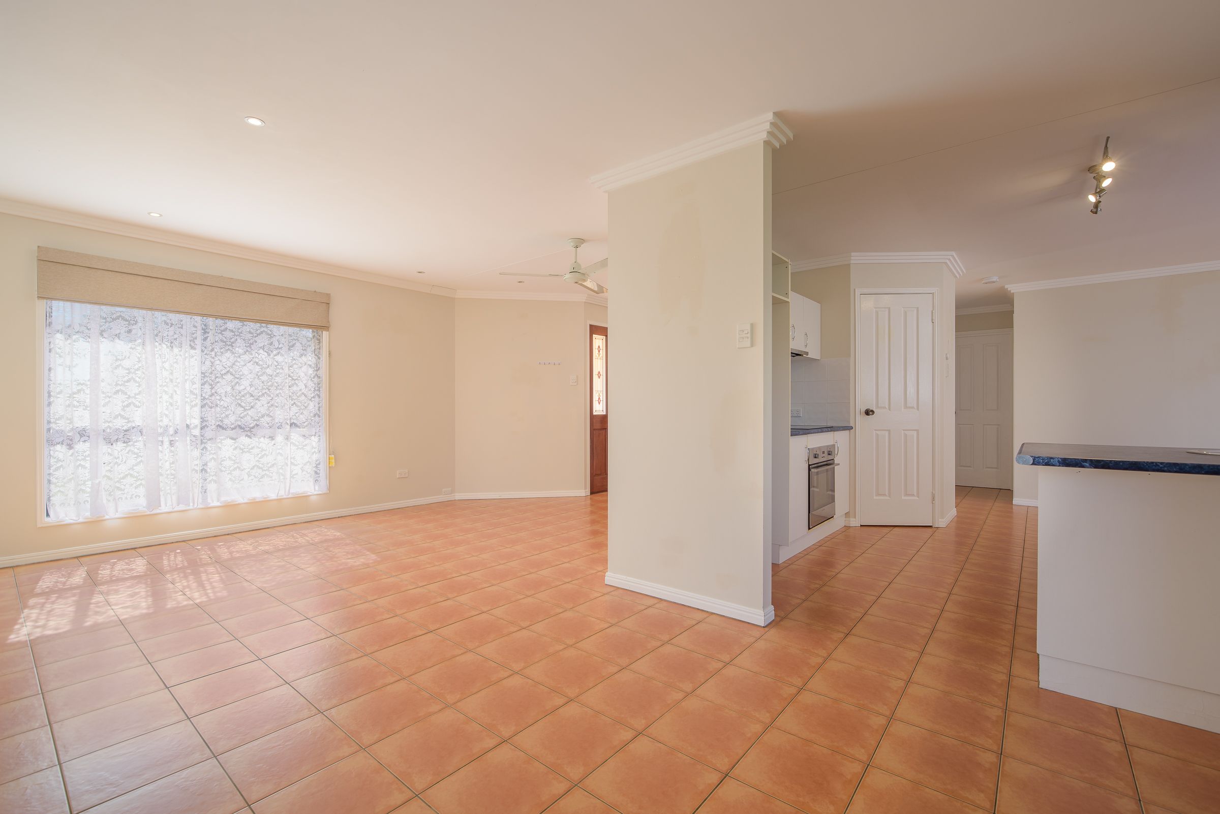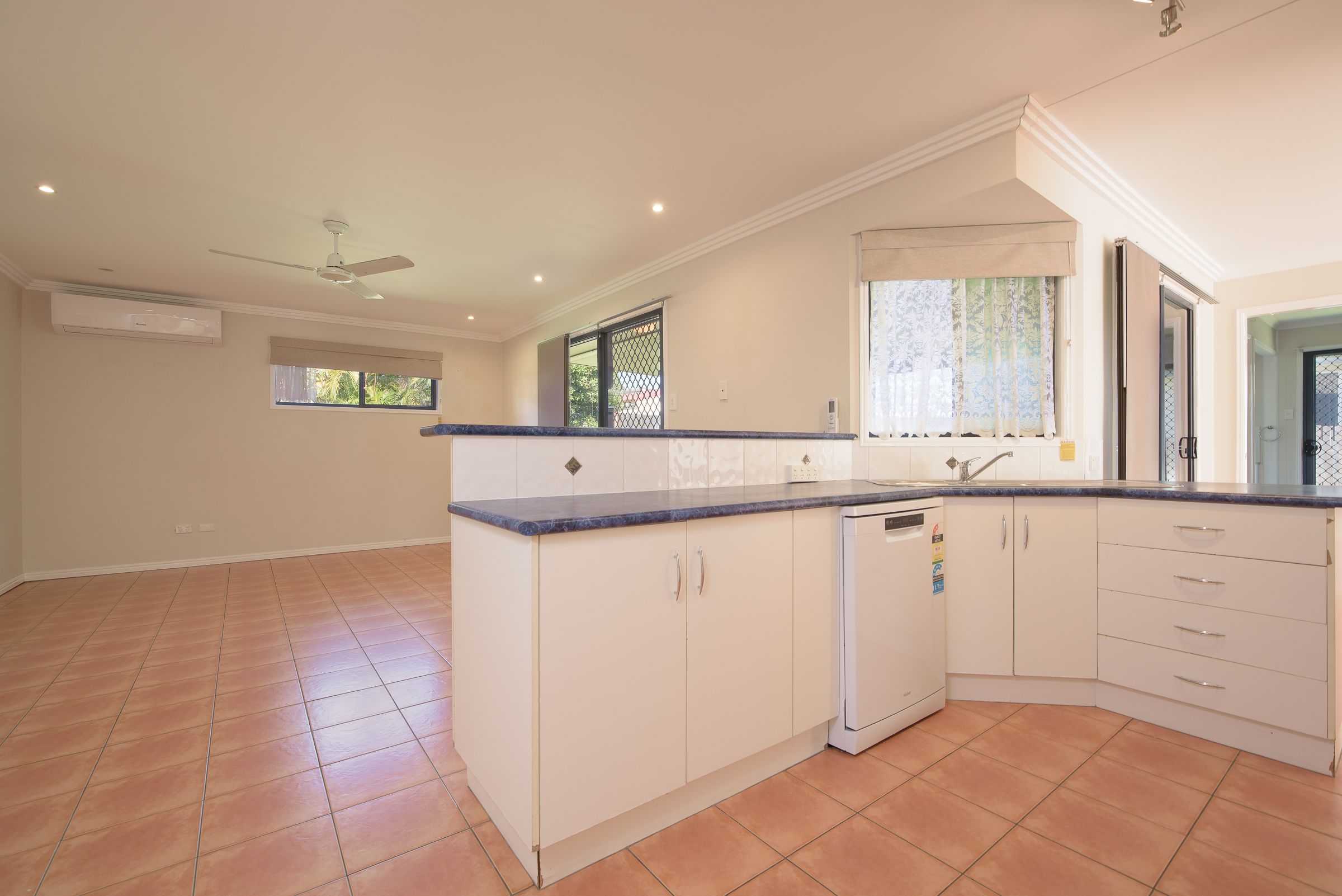 This home comprises 3 bedrooms, 1 bathroom and a 1 bay garage. The master bedroom of this property is fitted with a split system air con, a built-in wardrobe and direct access to the bathroom. The remaining 2 bedrooms of this property include built in wardrobes, and wall air conditioners.