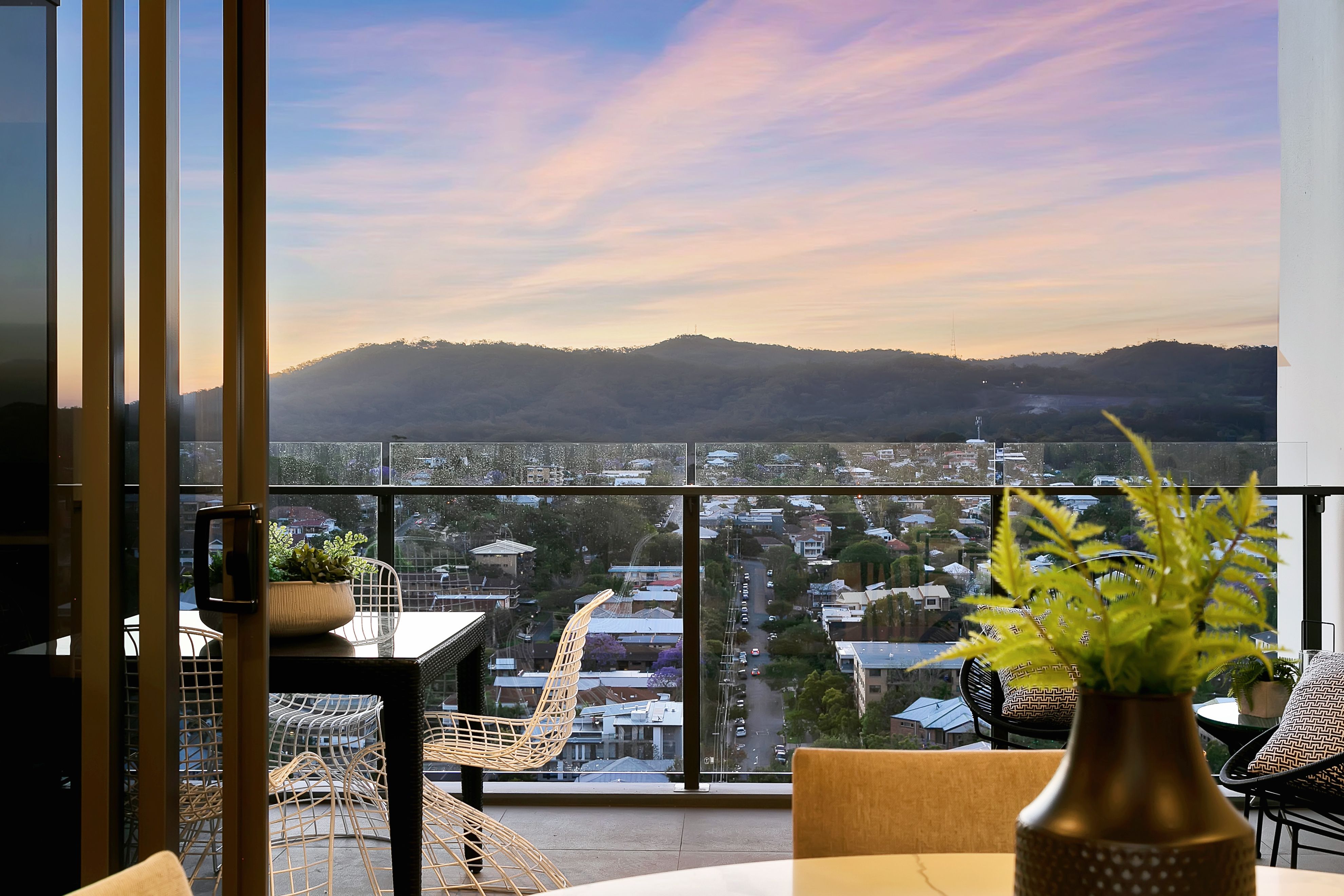 Property Features include: -Spacious three bedrooms each with built-in wardrobes -Two designer bathrooms -Two side-by-side car spaces -Gourmet kitchen with stone bench tops and SMEG appliances -Study area with ample storage -Tasmanian Oak flooring throughout -Ducted air conditioning throughout -Stunning views out across to Mt Cootha -Large dining and living area opening onto the balcony -Total area 127sqm -Brand new opportunity