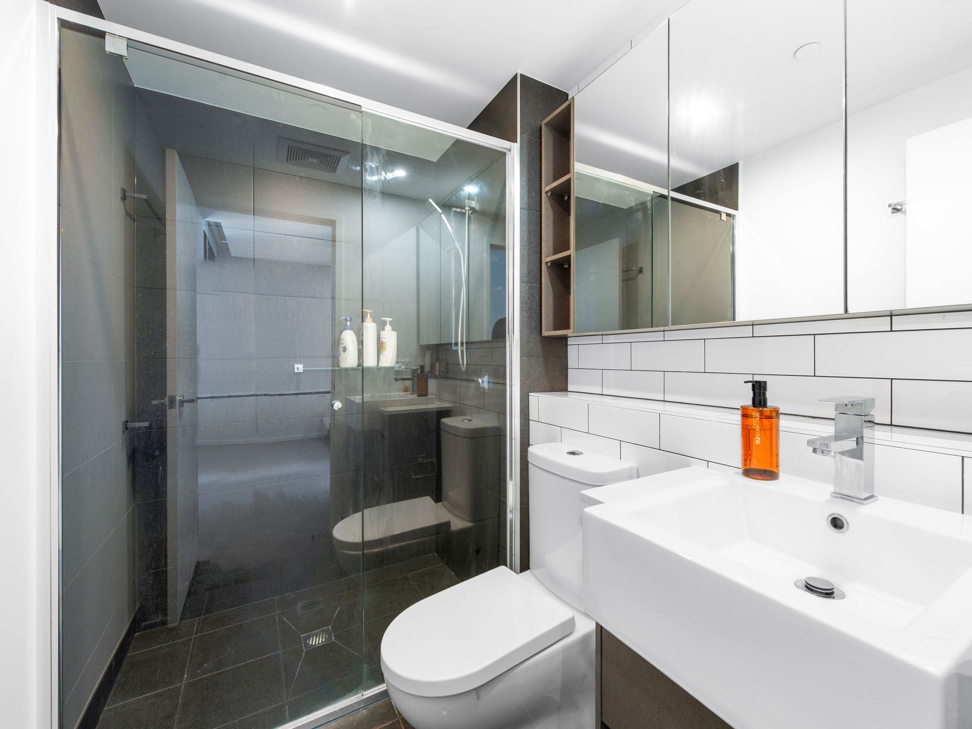 Two built-in bedrooms each offer great private retreat, direct alfresco access and built-in storage. The master includes a private ensuite complete with glass shower, subway tiling and streamlined vanity with a well-appointed second bathroom matching in style and provision. Additional features include ducted air-conditioning, lift access, intercom security, secure vehicle accommodation and secure building complex with onsite manager.