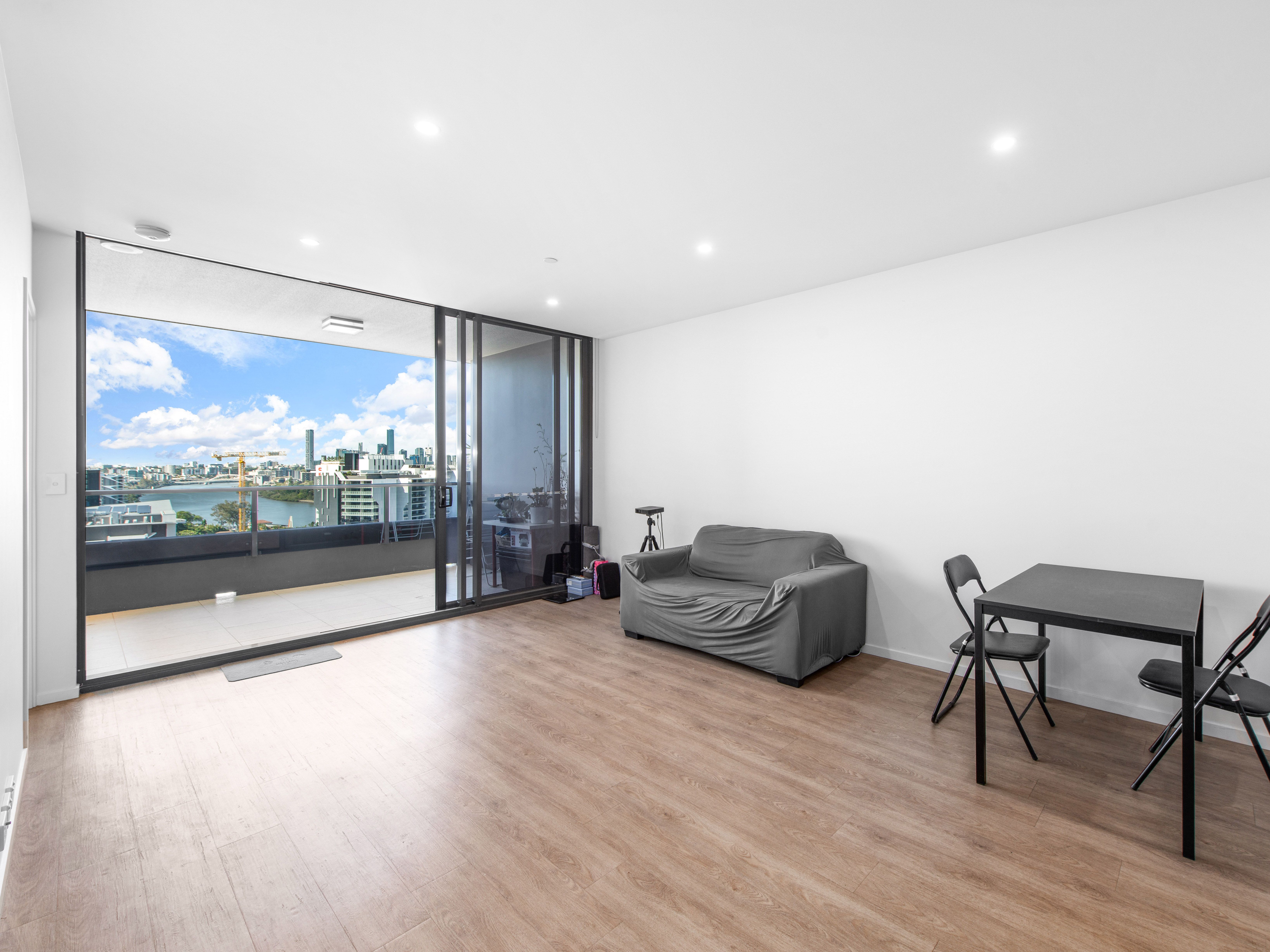 Embracing a sleek contemporary mood, the light-filled interior invites immediate relaxation within a spacious open-plan layout that includes dining and living in air-conditioned comfort; timber-styled floors stretching throughout. Floor to ceiling glass doors bring an amazing city view and excellent natural light; brilliant indoor/outdoor flow leading to a large covered balcony. Brilliantly sized for private entertaining or alfresco relaxation, there is a magnificent backdrop to enjoy taking in the Brisbane River and shining city lights. Framed by stone benches and streamlined joinery, the kitchen is intelligently orientated to capitalise on the views; clean modern lines and a generous footprint include superb storage provision along with stainless appliances and gas cooktop.